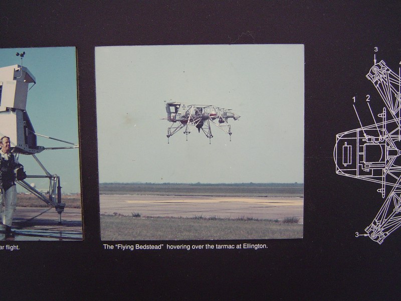 The Lunar Landing Training Vehicle (LLTV) - sometimes called The Flying Bedstead - was an open framework vehicle which, according to Journal contributor Ed Hengeveld, was equipped with a "turbofan engine which could be throttled to support five-sixths of the weight of the vehicle. Lift for the remaining one-sixth of the LLTV's weight was provided by two hydrogen peroxide lift rockets. These engines were operated by the pilot to simulate the engine that the Lunar Module would use during its descent to the Moon." The LLTV was also equipped with a set of maneuvering thrusters similar to those on the LM so that the pilot could get a seat-of-the-pants feel for flying the LM.