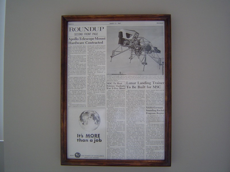 on display in the lobby of Building 2 at the NASA Johnson Space Center.