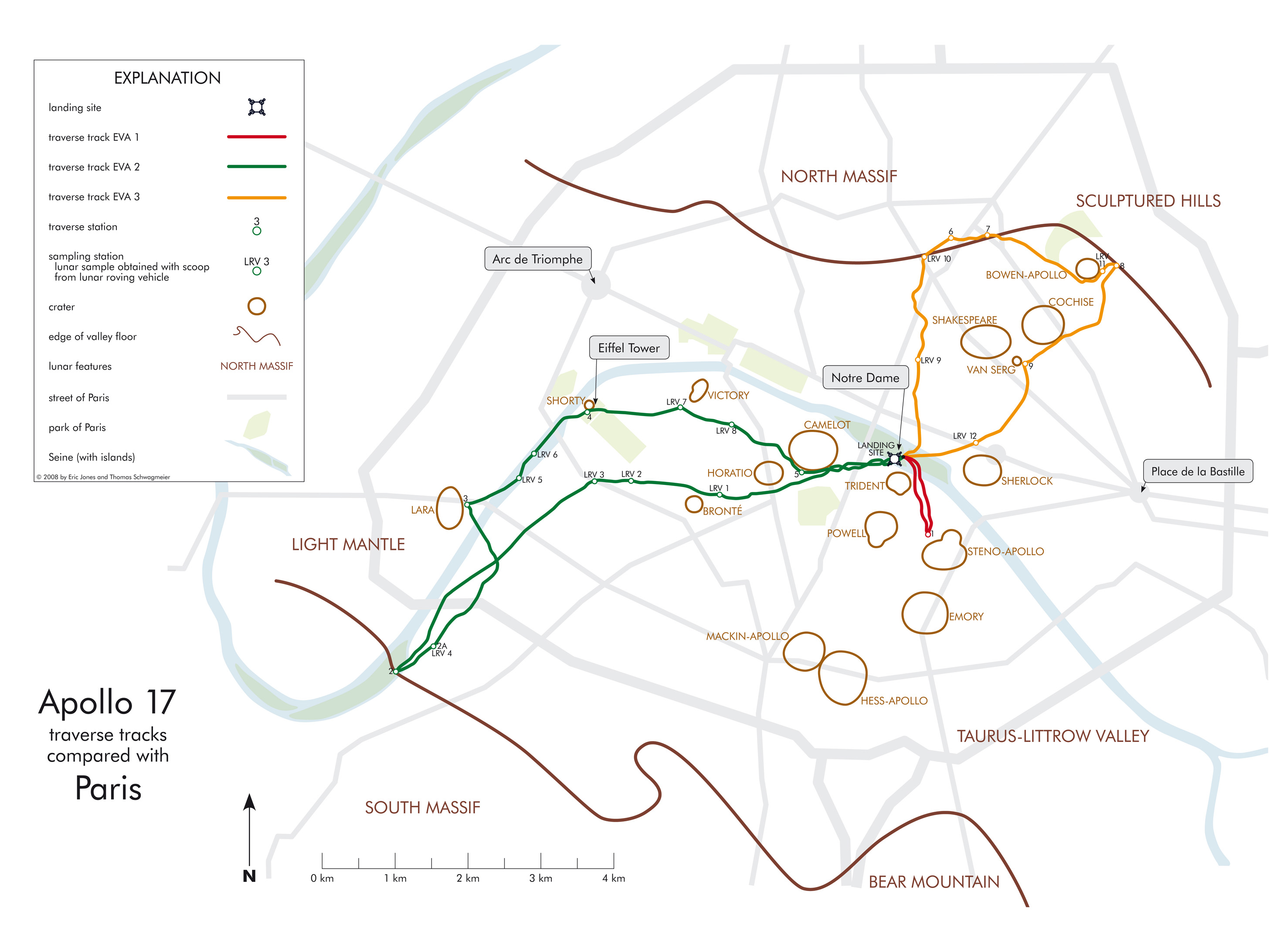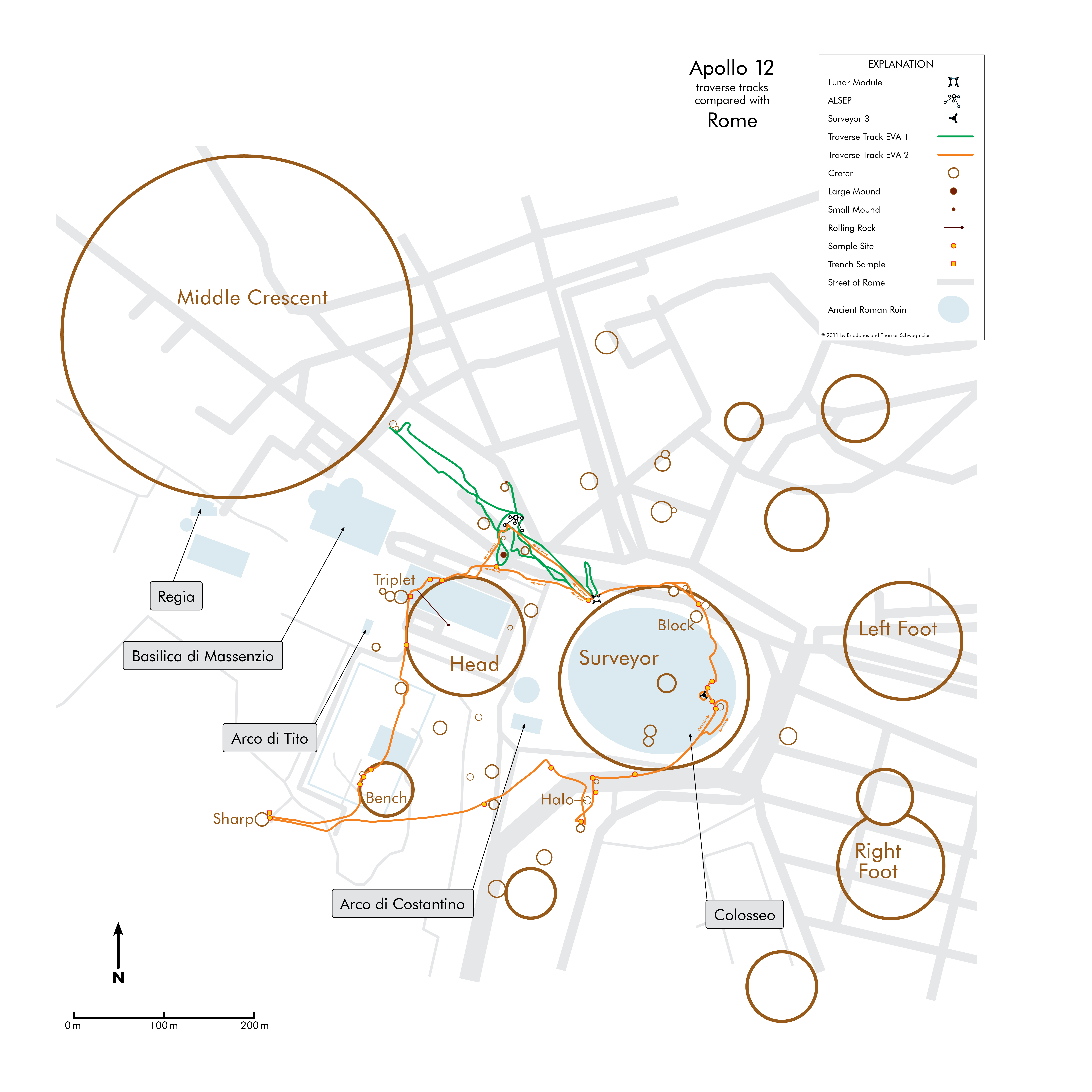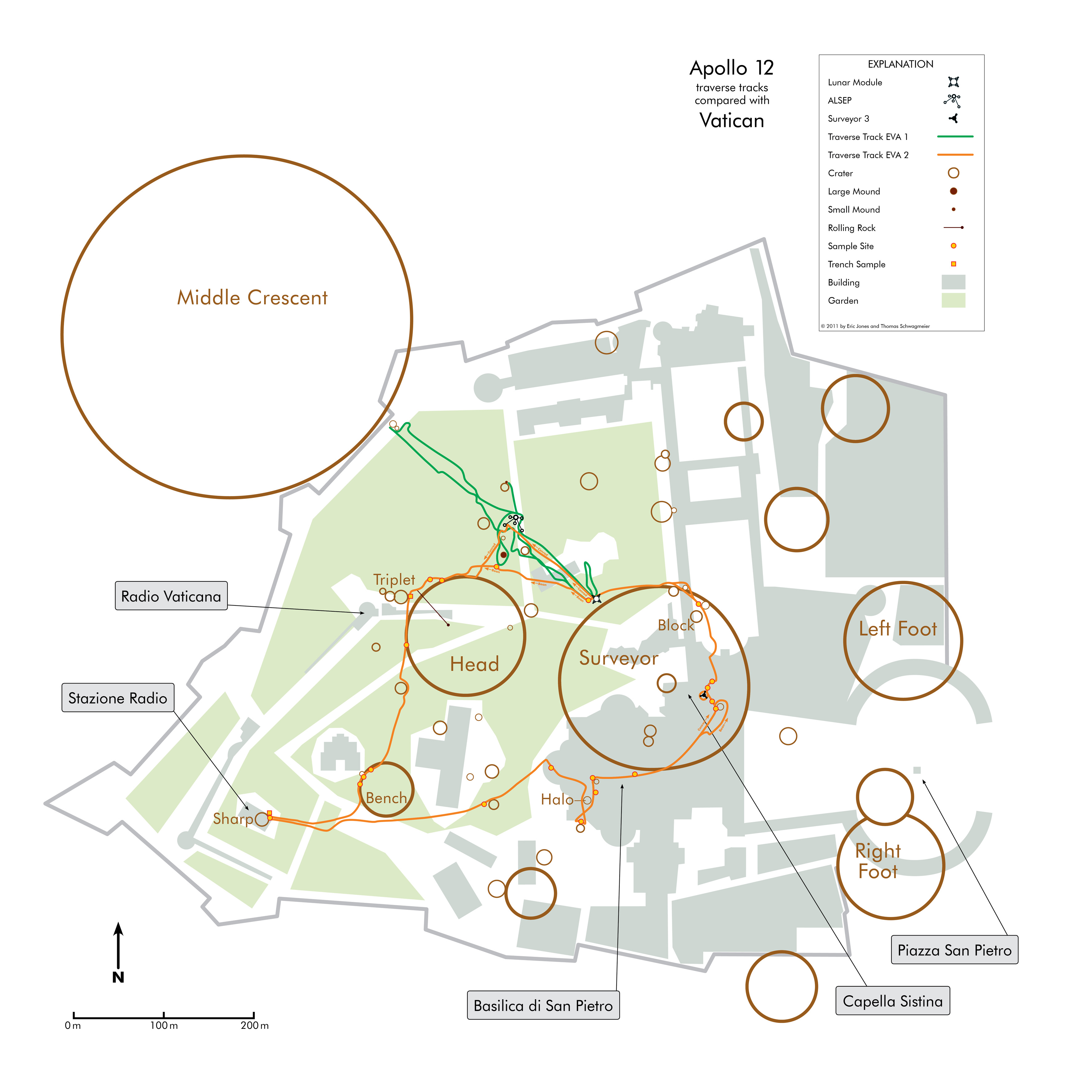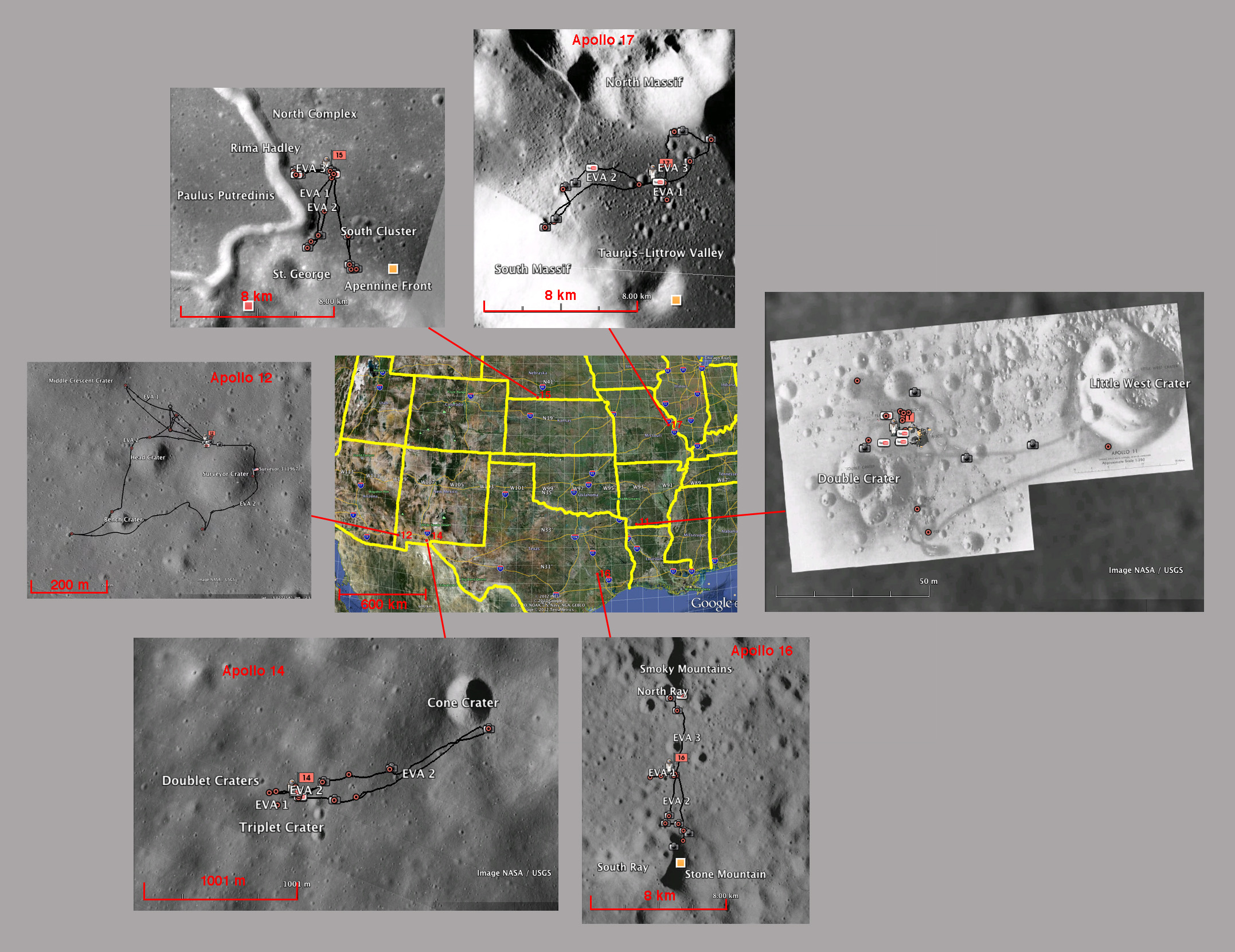 Apollo Traverse Maps Superimposed on Terrestrial Sites