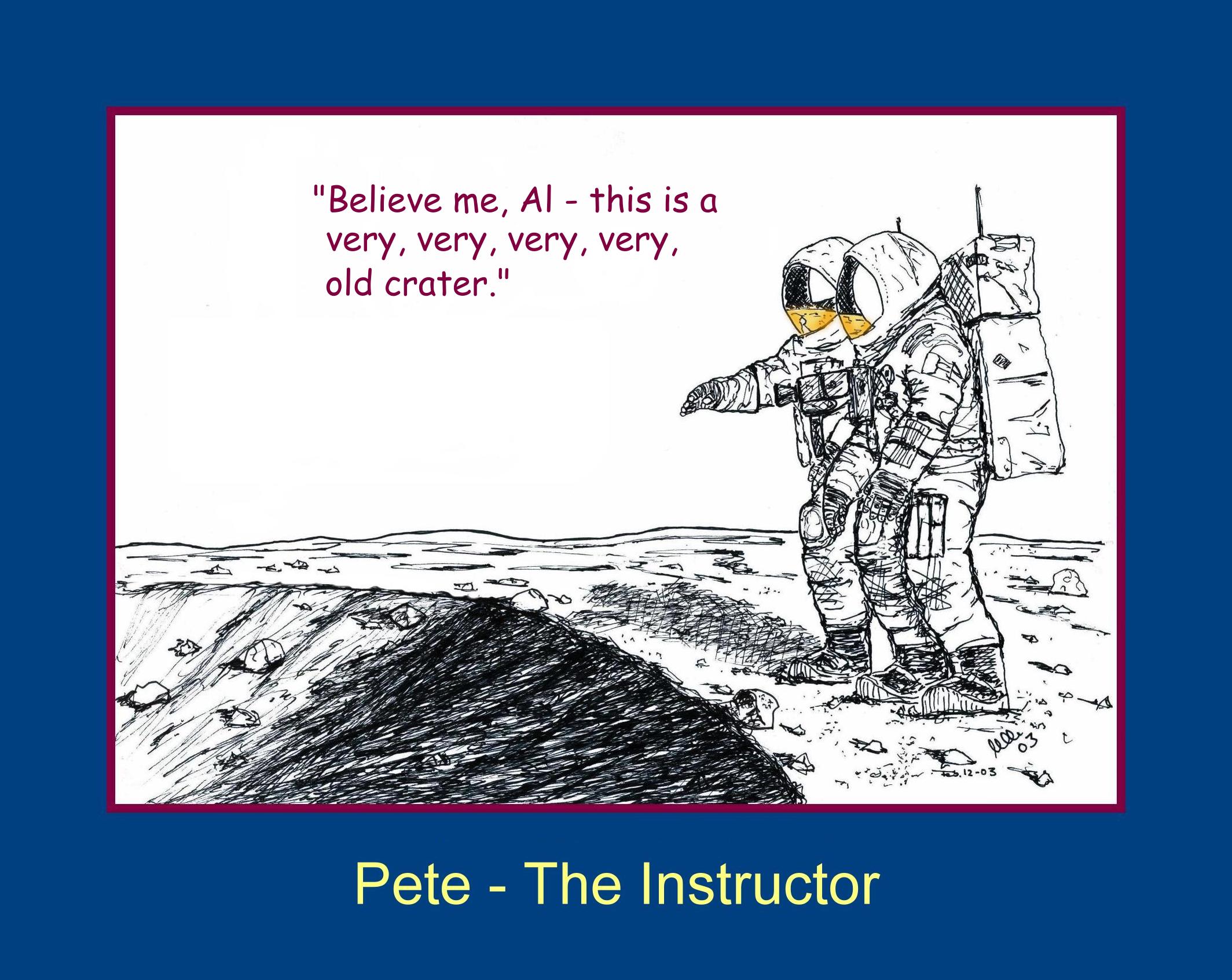 134:40:23 Bean: The original crater (meaning Surveyor Crater) took it down to bedrock and then, I guess, more recently then, this one (meaning Block Crater) came in here and really banged it out. These blocks are a lot more sharp-cornered than any we've seen anywhere else. I guess this must be the most recent one we've been around. 134:40:40 Conrad: Now, I got the idea that the bedrock's not too deep (that is, the bedrock is not covered by much regolith), and that this (Surveyor Crater) was a big crater but it's very, very, very, very old. And then this thing came along and hit it... 134:40:50 Bean: That's right. 134:40:51 Conrad: ...and broke into the side of the bedrock that's been sticking out into this... 134:40:55 Bean: Yeah, and then threw it all out again. 134:40:55 Conrad: ...original crater, and threw it all out again. |