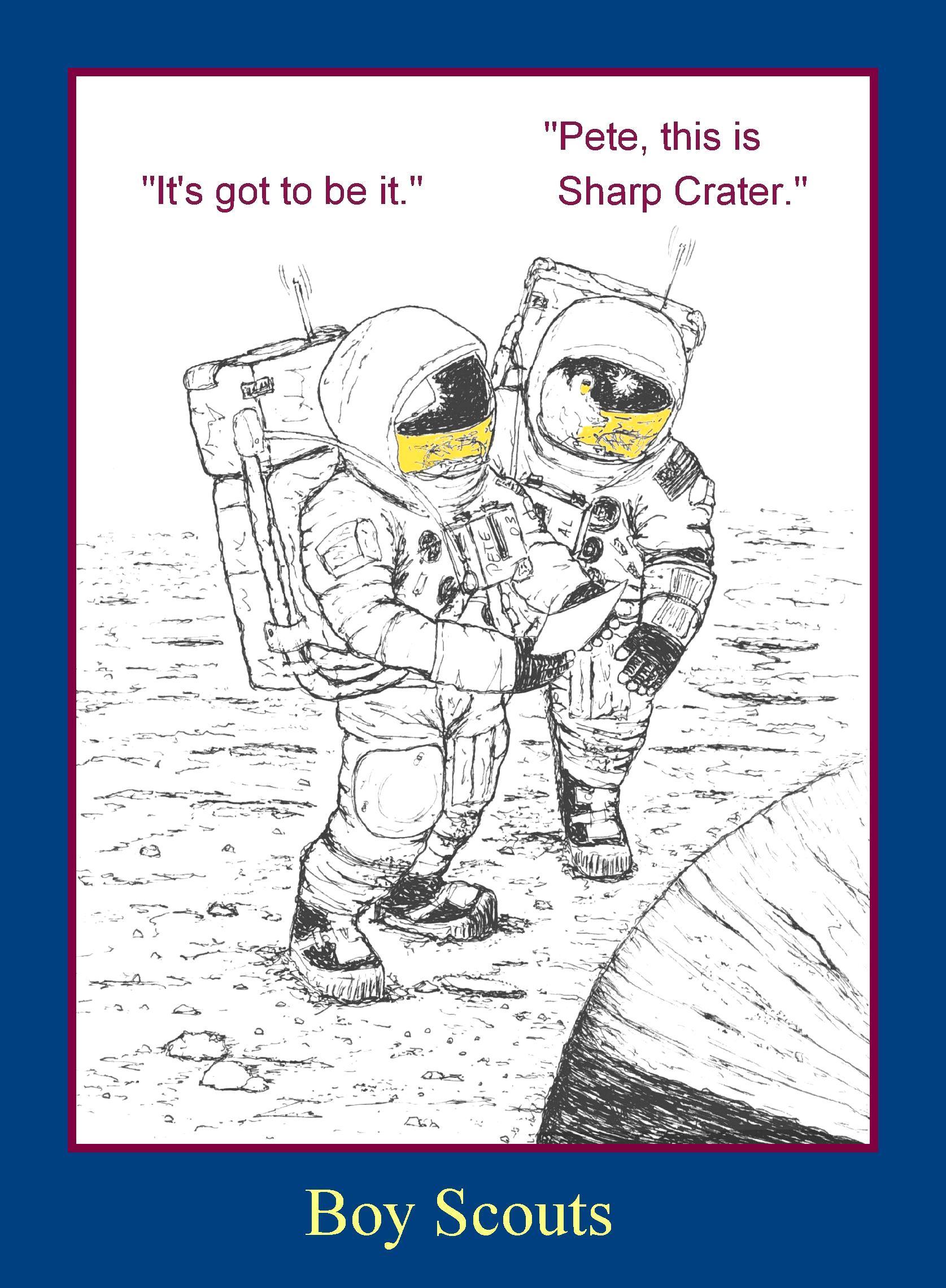 132:52:41 Conrad: We got to find Sharp Crater first. 132:52:42 Bean: Where is it? 132:52:44 Conrad: I don't know. We should be right here. (Pause) How big is Sharp Crater? 132:52:55 Bean: Looks pretty small. It looks to me to be about 30 meters. 132:53:00 Conrad: Okay. I've got it. It's right here in front of me. 132:53:02 Bean: Okay. Yeah. I see it. That's it. (Long Pause) 132:53:22 Conrad: Okay. Got a rock. (Taking a pan) Five pic-a-tures. (f/)8. This has got to be Sharp Crater right here. We'll drive that double core tube in the... 132:53:40 Bean: All right. Yeah. This has a nice white rim on it. In fact, the rim of this looks pretty much like the area we kicked over on the previous craters. [In this case, the very light color of the regolith may be due, primarily, to the fact that Sharp Crater is very fresh and that the regolith broken up.]132:53:47 Conrad: I'm not sure this is Sharp Crater, but it's ... 132:53:49 Bean: Let's use it anyway, because it's the only one out here. 132:53:55 Conrad: I know. There is nothing out here. Darnedest thing I ever saw. 132:54:01 Gibson: We're estimating a diameter of Sharp Crater, Pete, for about 40 feet (12 meters). 132:54:08 Bean: 40 feet, huh?... 132:54:09 Conrad: Al, this may be it! 132:54:10 Bean: This is it. 132:54:11 Conrad: It's got to be it. [Bean - "You never knew if you really had picked the right one."] |