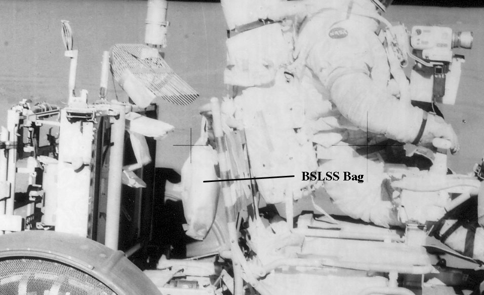 During the Apollo 14 EVAs, the BSLSS bag was stowed on the