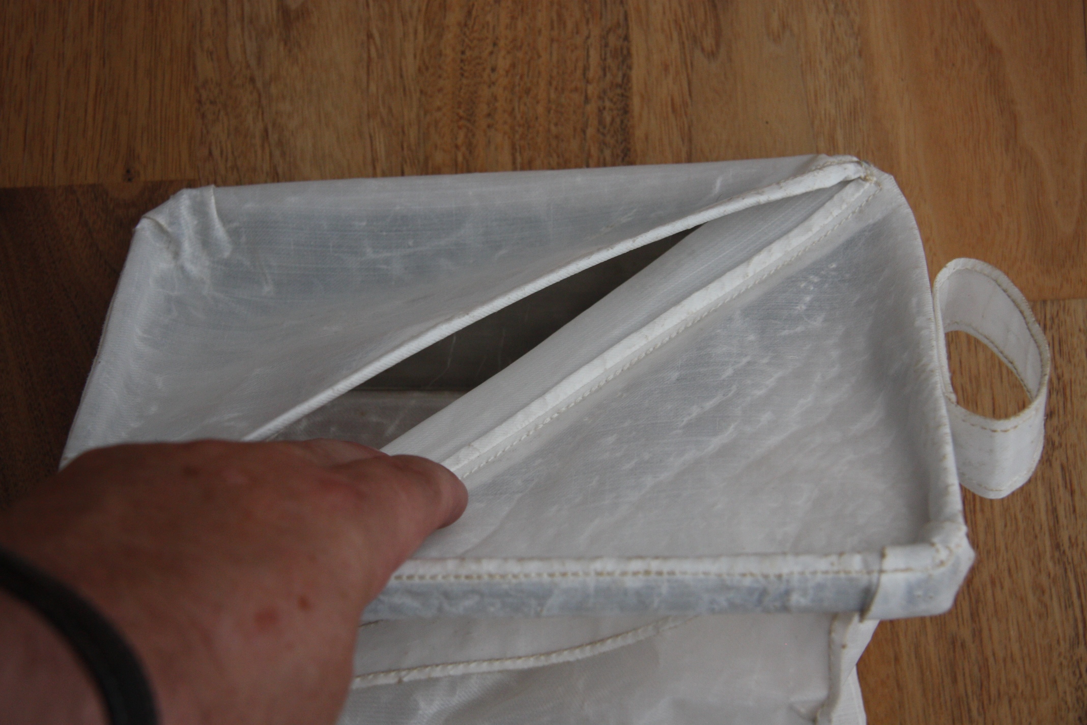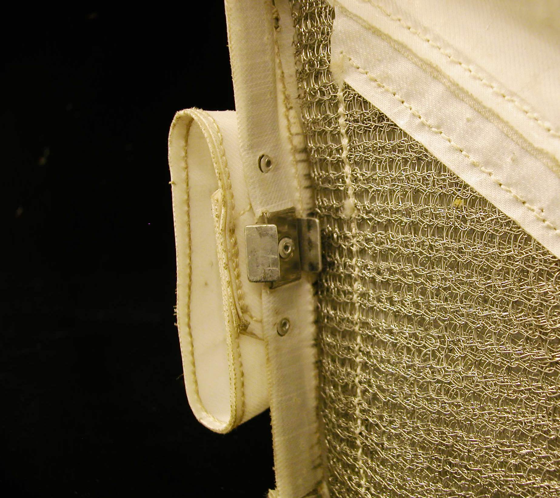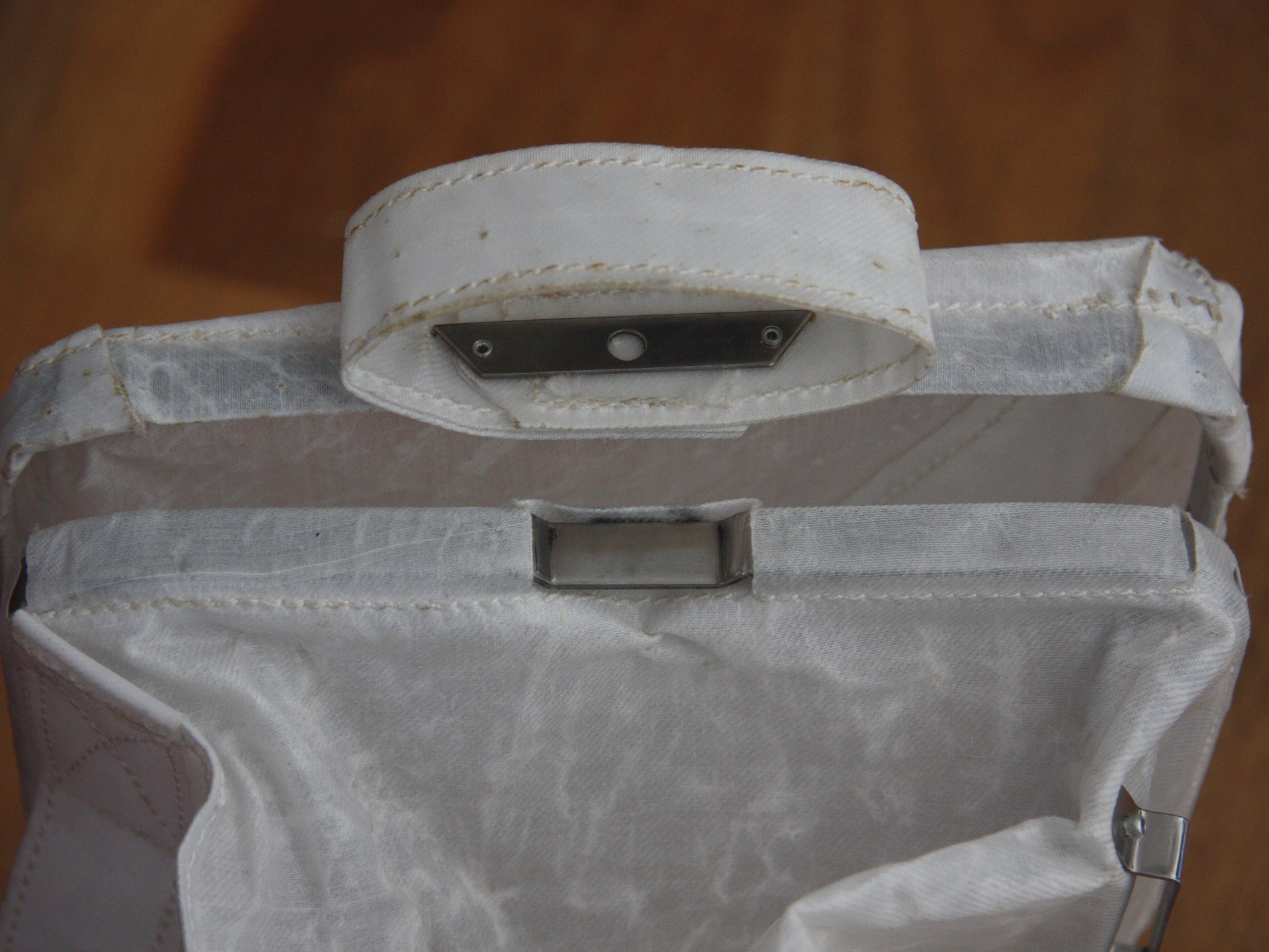 | Cover latch | 1.2 Mb | View of the top of the bag opposite the cover hinge, with the cover slightly open. The back surface of the latch can be seen on the outside surface of the cover, under the beta-cloth loop. |