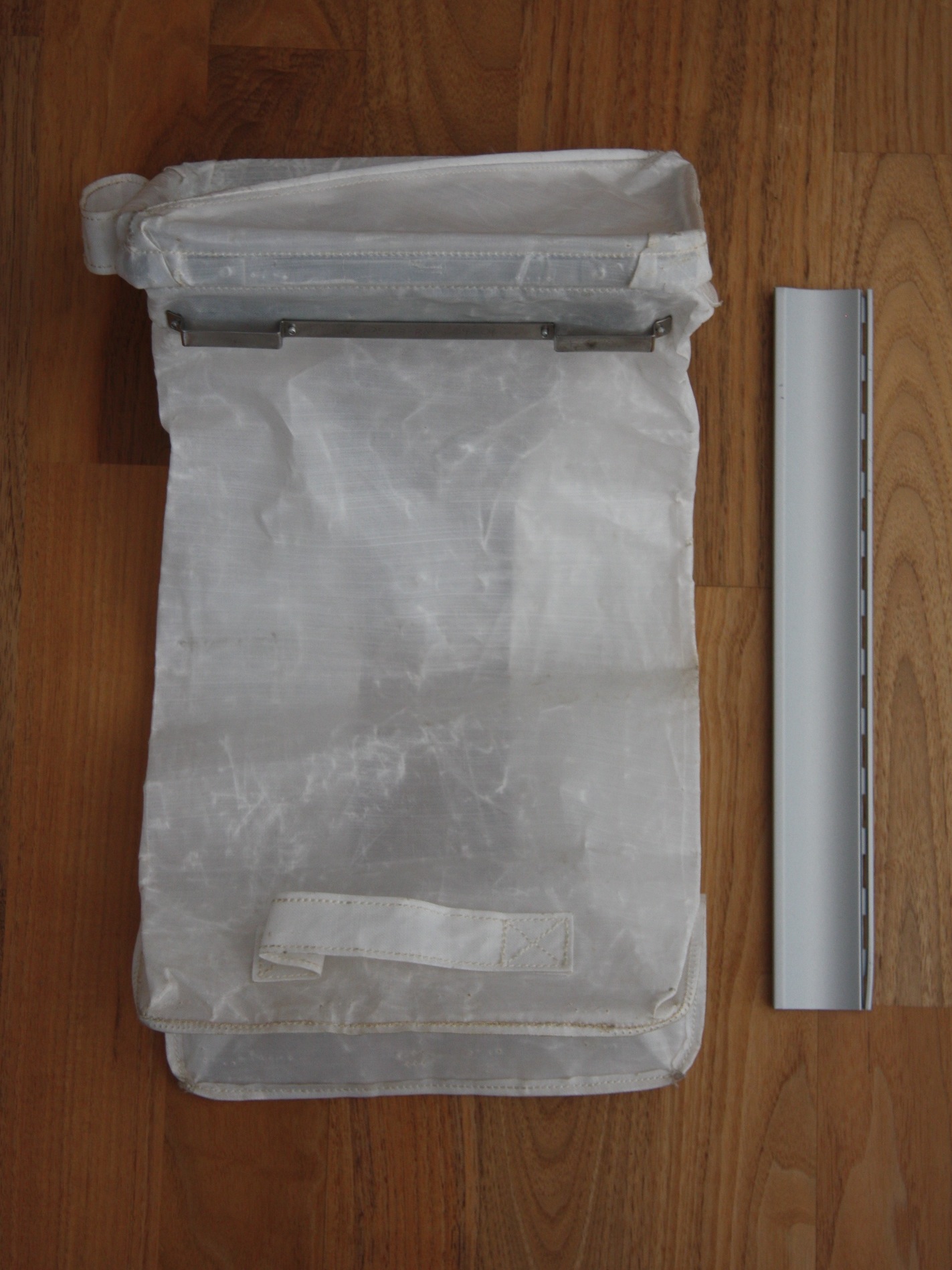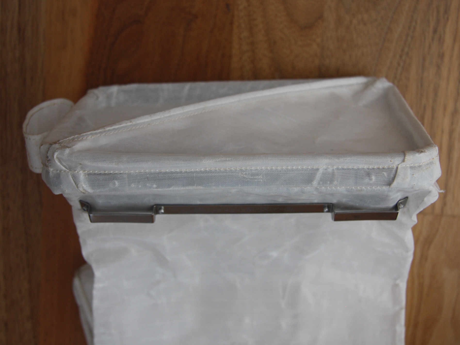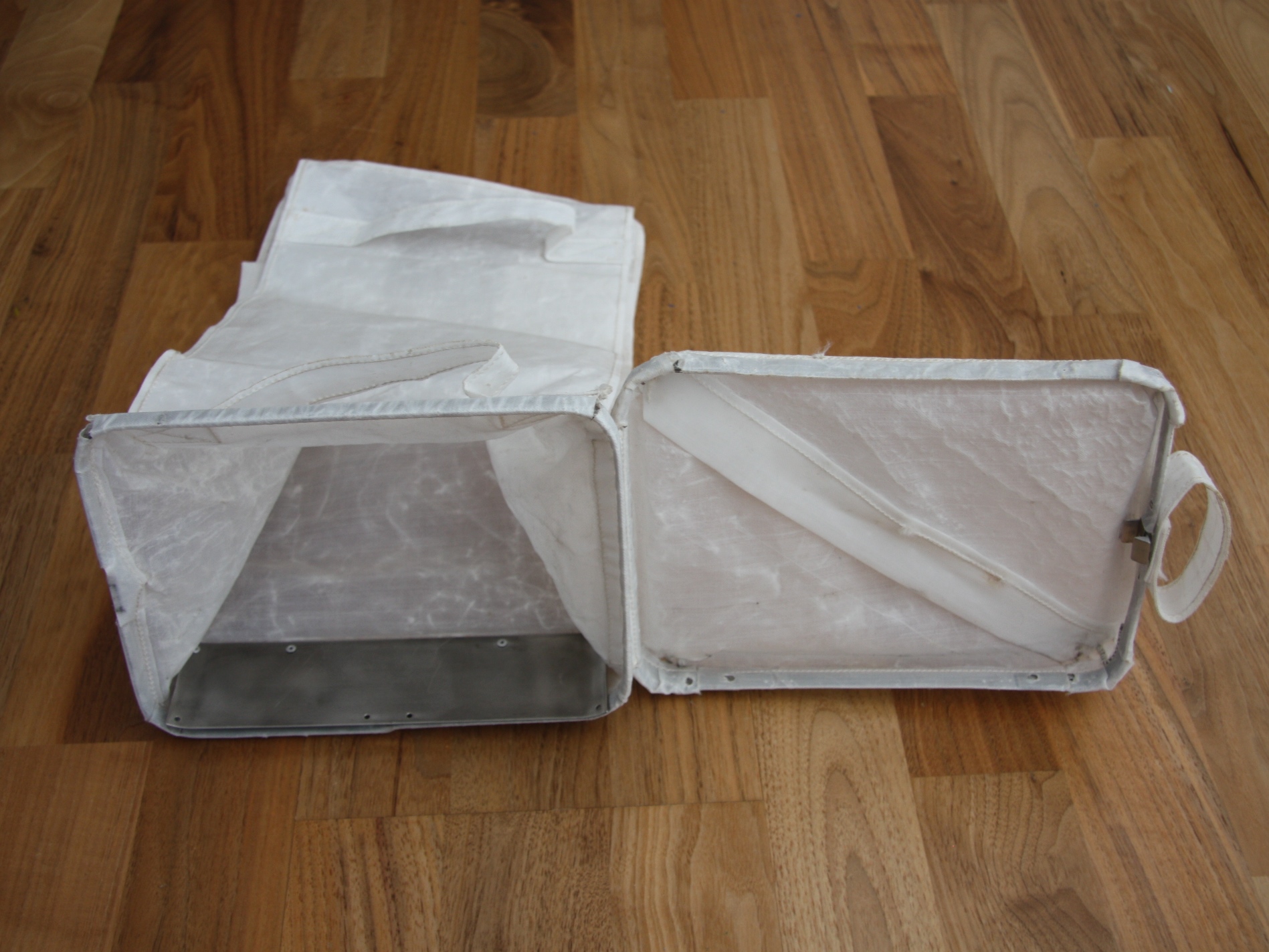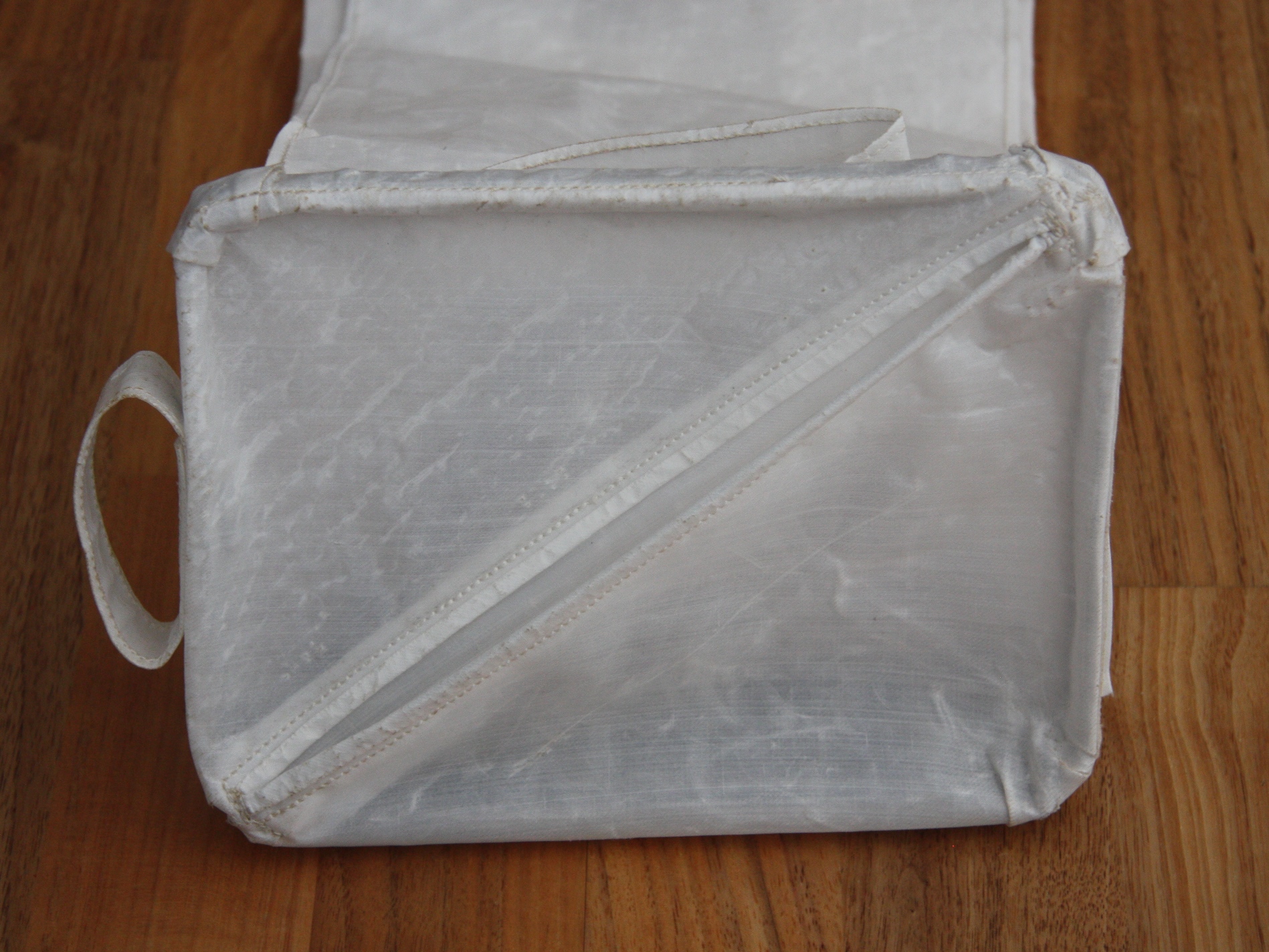 | Cover latch | 1.2 Mb | View of the top of the bag opposite the cover hinge, with the cover slightly open. The back surface of the latch can be seen on the outside surface of the cover, under the beta-cloth loop. |
