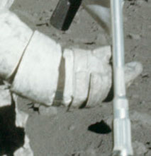 131:36:30 | During EVA-2 Egress, Pete Conrad comments that an unidentified piece of Velcro "doesn't hold worth a hoot". Possibly Velcro on a pocket flap on his suit leg is fouled with dust. See the photo essay about Pete's flown suit. |