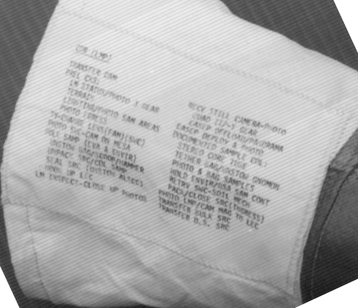 [Aldrin, from the 1969 Technical Debrief - "No matter how many times you run through an EVA Prep, to the best of the instructor's ability to put things in a logical sequence, when you're faced with doing these things, there is a natural tendency to deviate somewhat from the printed sequence that you have. It's a rather complex operation. Nobody writes a checklist to tell you in the morning when you get up all the sequences you go through to put your clothes on, brush your teeth, shave, and all that.
