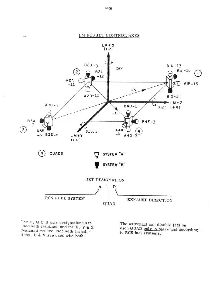 [Aldrin - "If the burn had been perfect, the computer would have displayed residuals in the three body-axes of 0, 0, 0. If there was some deviation, it was displayed to a tenth of a foot (per second). Apparently, we were supposed to null X and Z (the vertical and fore/aft axes, respectively). They didn't care about Y (left to right). The way they were nulled was (by firing the RCS) with the handcontroller. Neil was looking at them, and I was looking at them and I recorded them."]