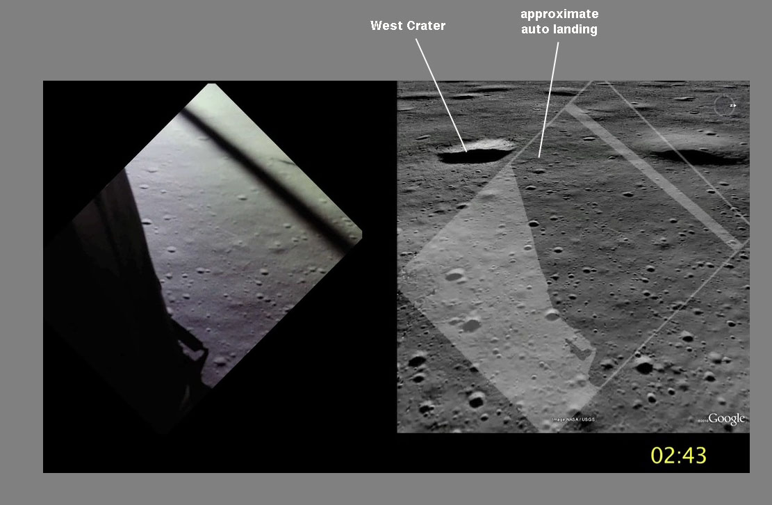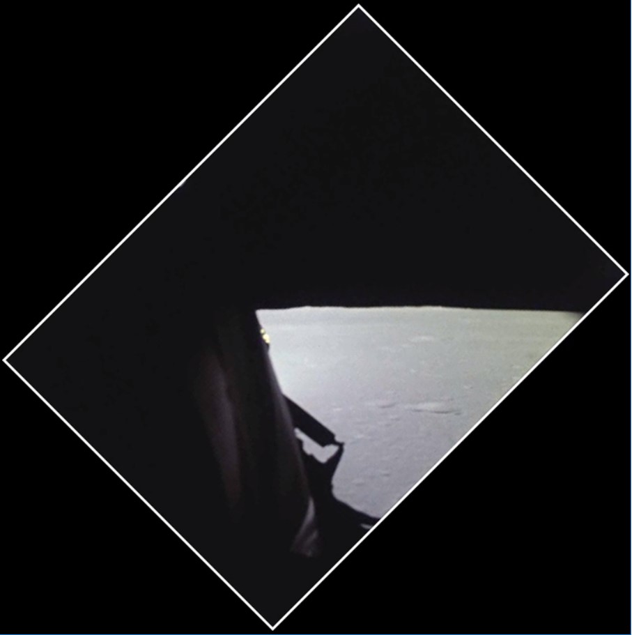 [The fact that the right and forward footpads hit first indicates that Neil was still trying to correct his left translation and to impart a little forward motion.]