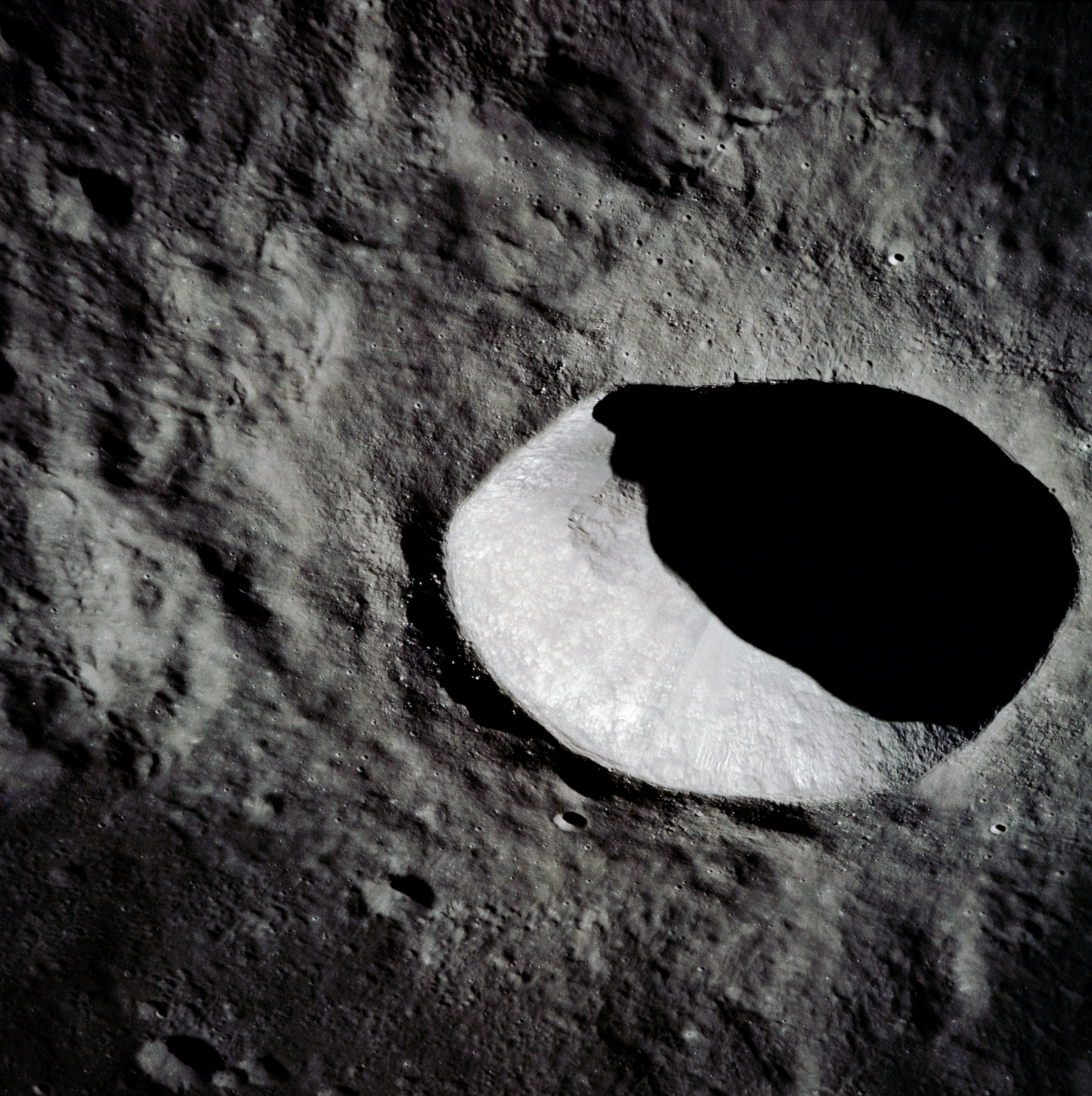 [John Young used this crater for tracking purposes during Apollo 10.]121:07:50 Collins: Fine. Okay. You've given up looking for the LM.