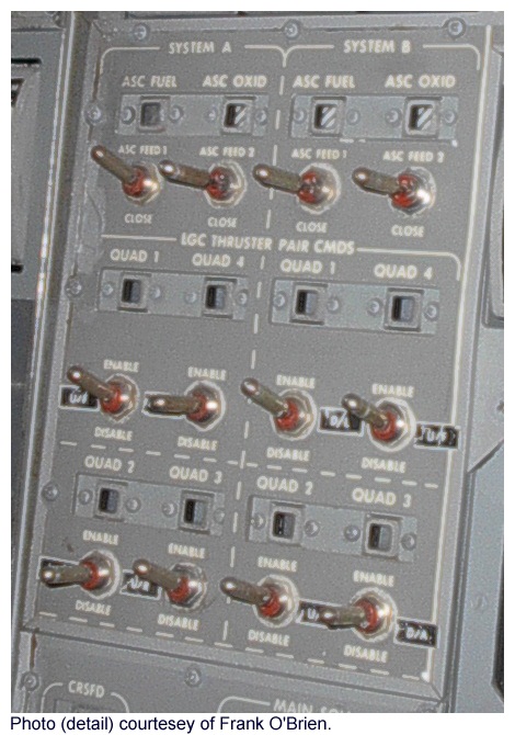 [Aldrin - "And, in retrospect, there are a lot of valves for which the switch (setting) is 'closed' or 'open'. It seems to me there are not too many that are 'in' and 'out'. So, a nomenclature of 'In' and 'Out' on circuit breakers might have been a little better description (than 'Open' or 'Closed'). Less confusion."]