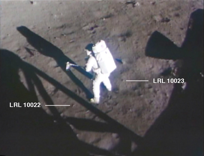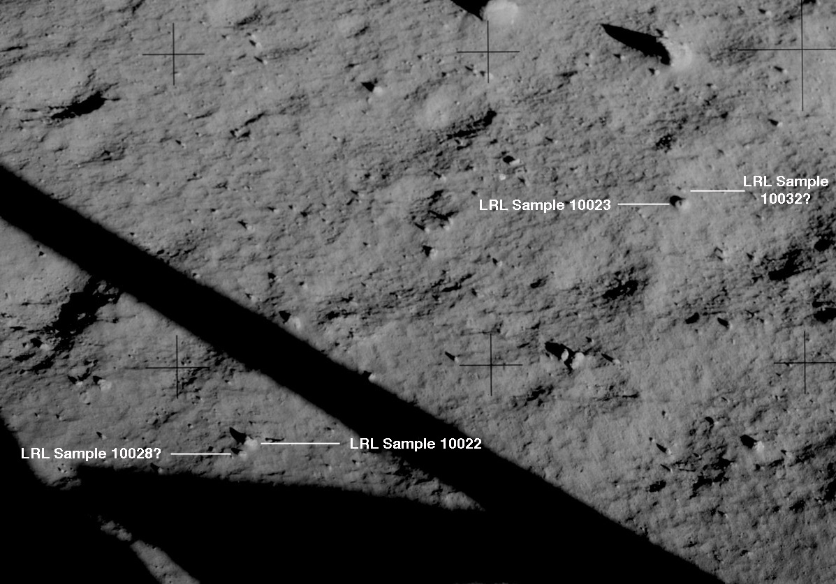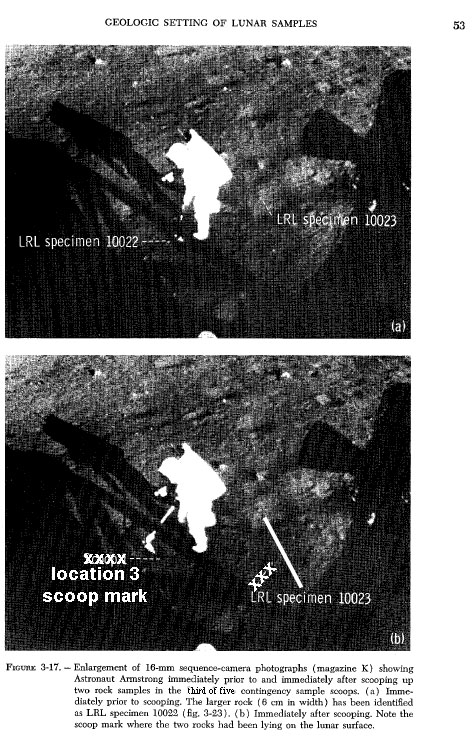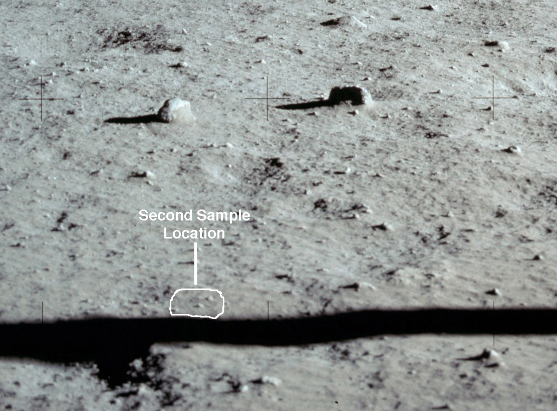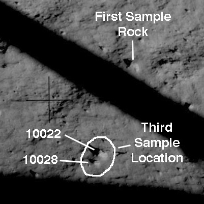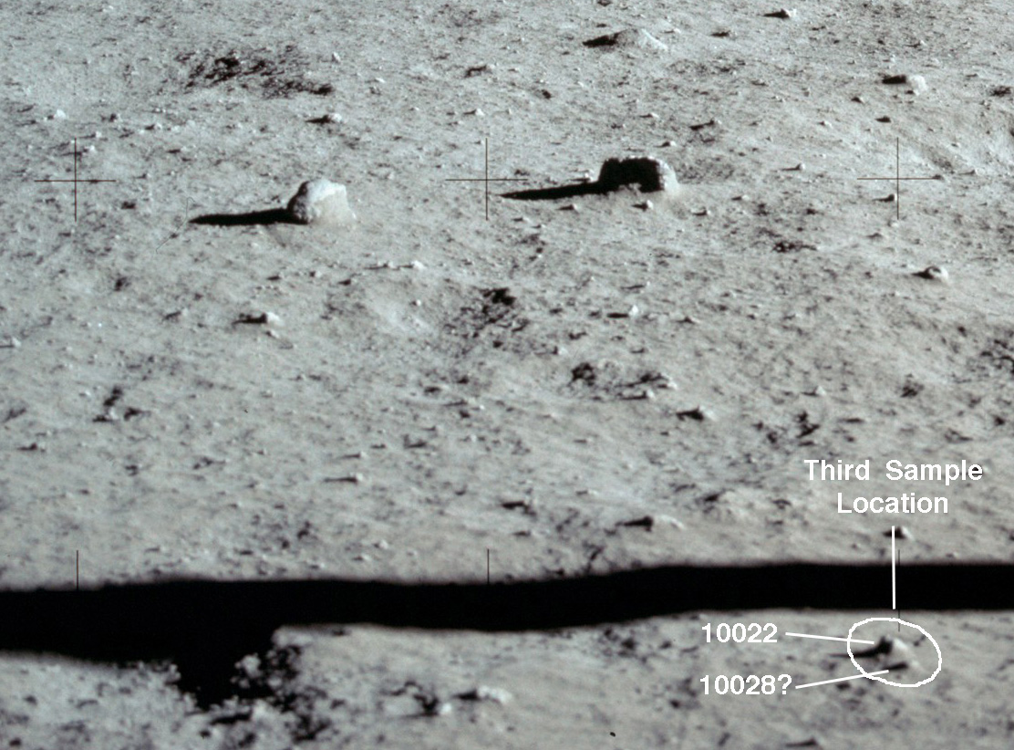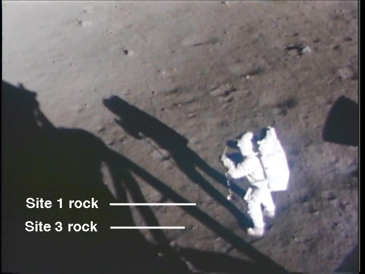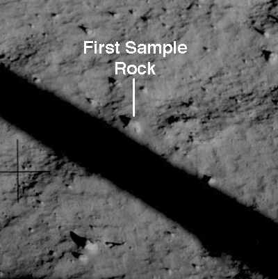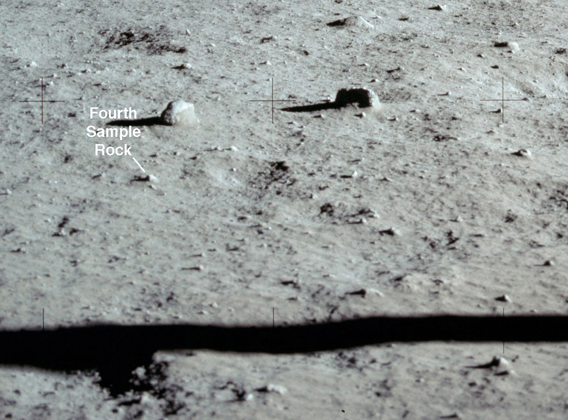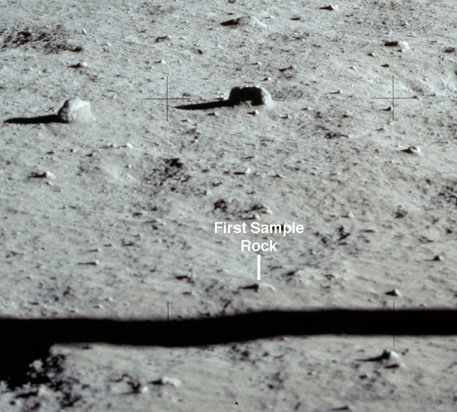 is facing Neil's left boot. The rock is labeled in a detail from pre-EVA