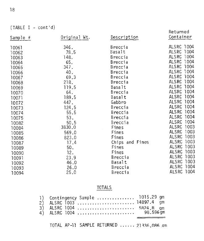 entry in the Apollo Sample Compendium, Meyer tells us "10021 is a