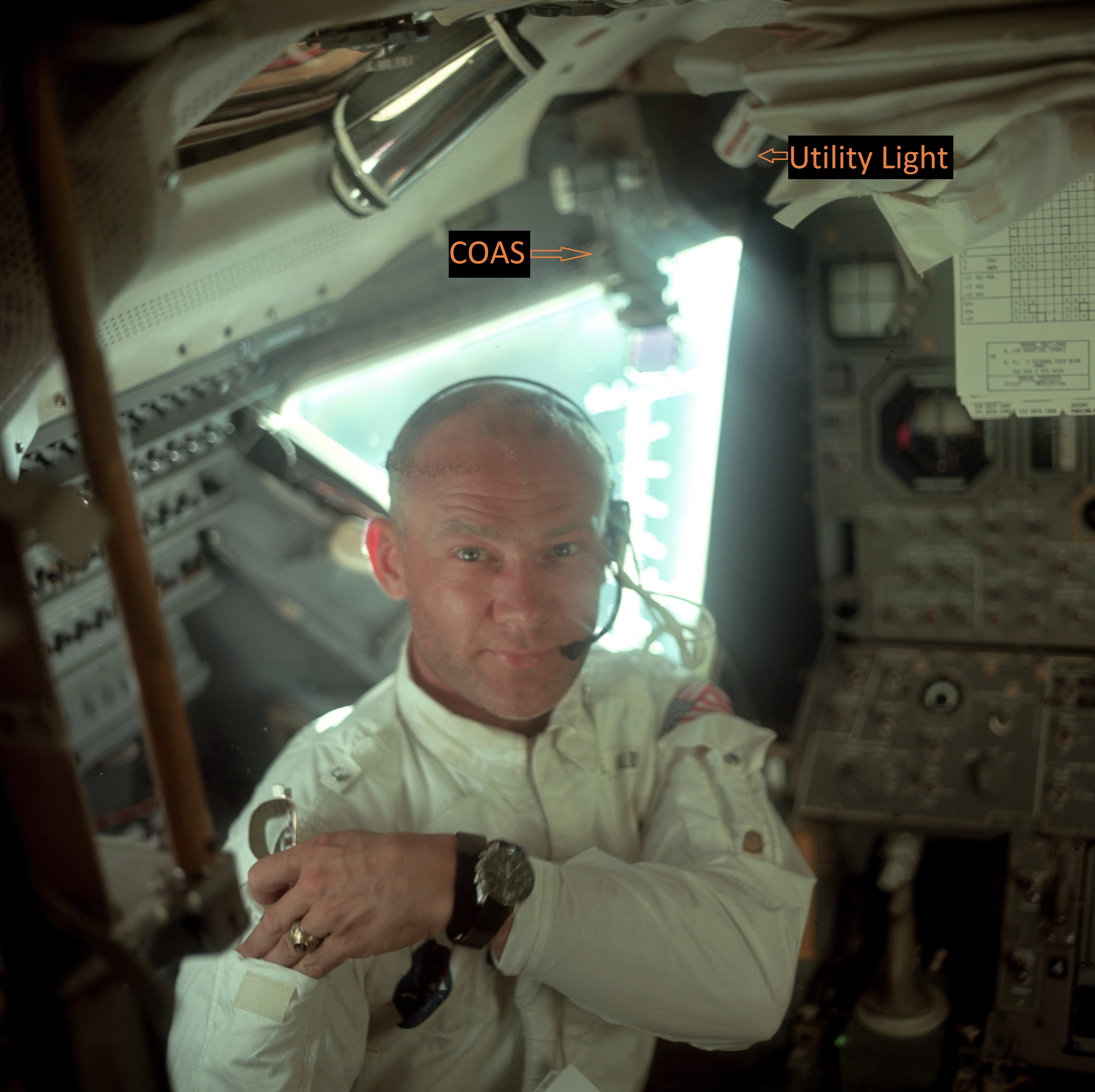 behind the CDR station. The photo inset shows the Apollo