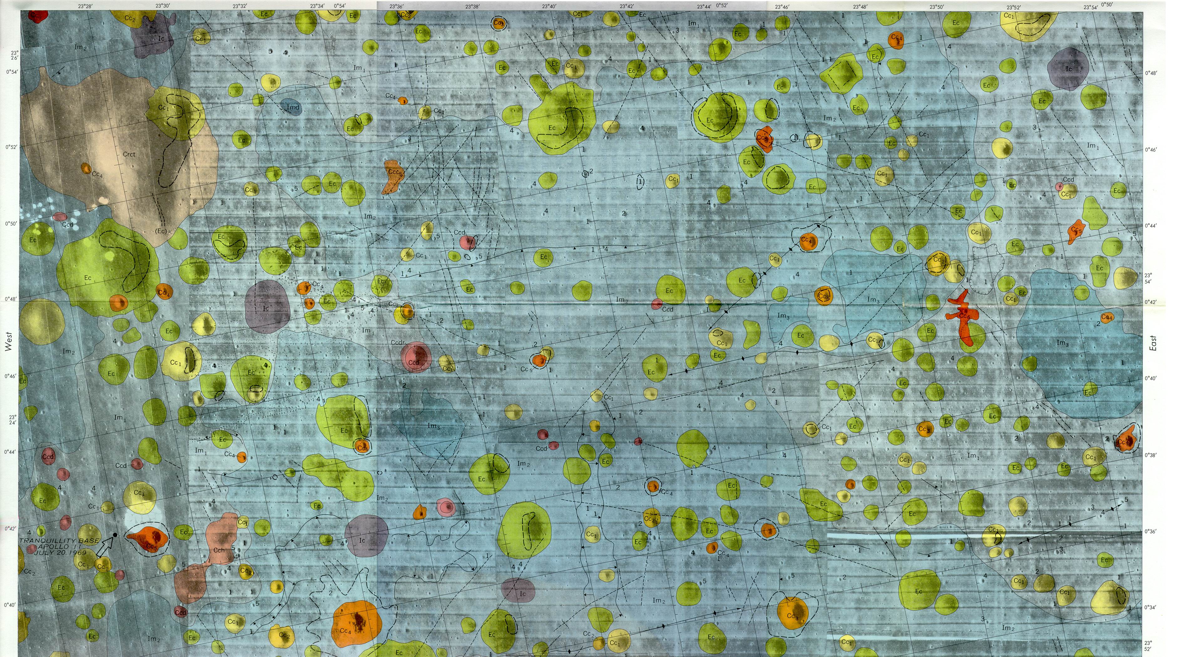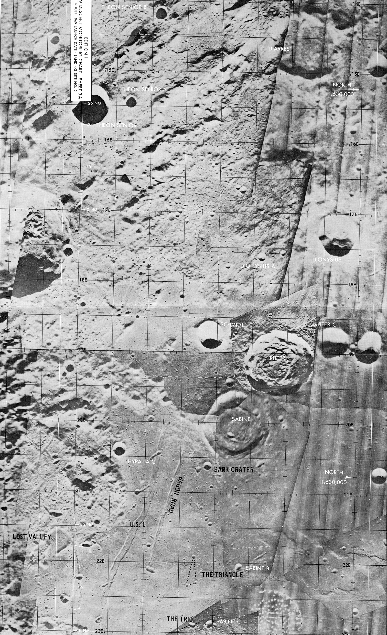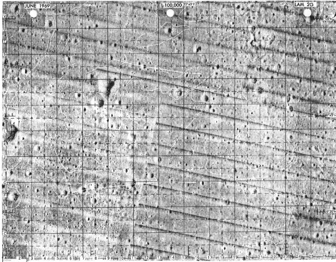 Brian McInall has combined LROC17512493R with triangulation data derived from the Hasselblad images to produce a map similar in scale to Vlad Pustynski's. Because Brian's triangulation method lacks the detail and precision of Vlad's photogrammetric analysis, location errors are larger, but not enough so to keep the map from capturing the essential features of the EVA. Brian's method lends itself to improved mapping of the individual geology stops made by later crews.Apollo 11 Planimetric Map, Preliminary Science Report Figure 3-15 (0.1 Mb)