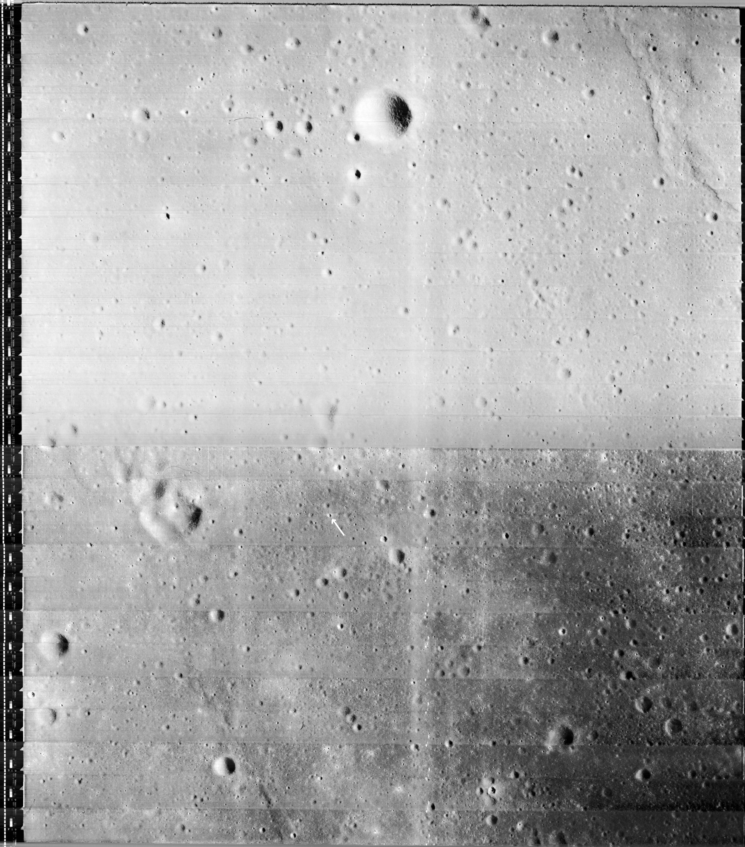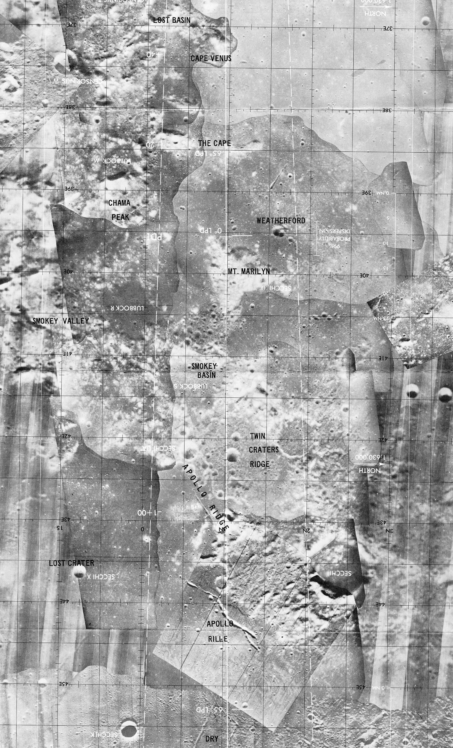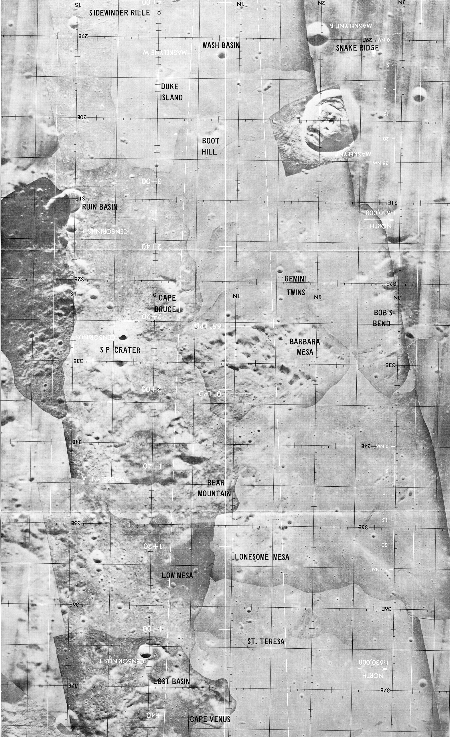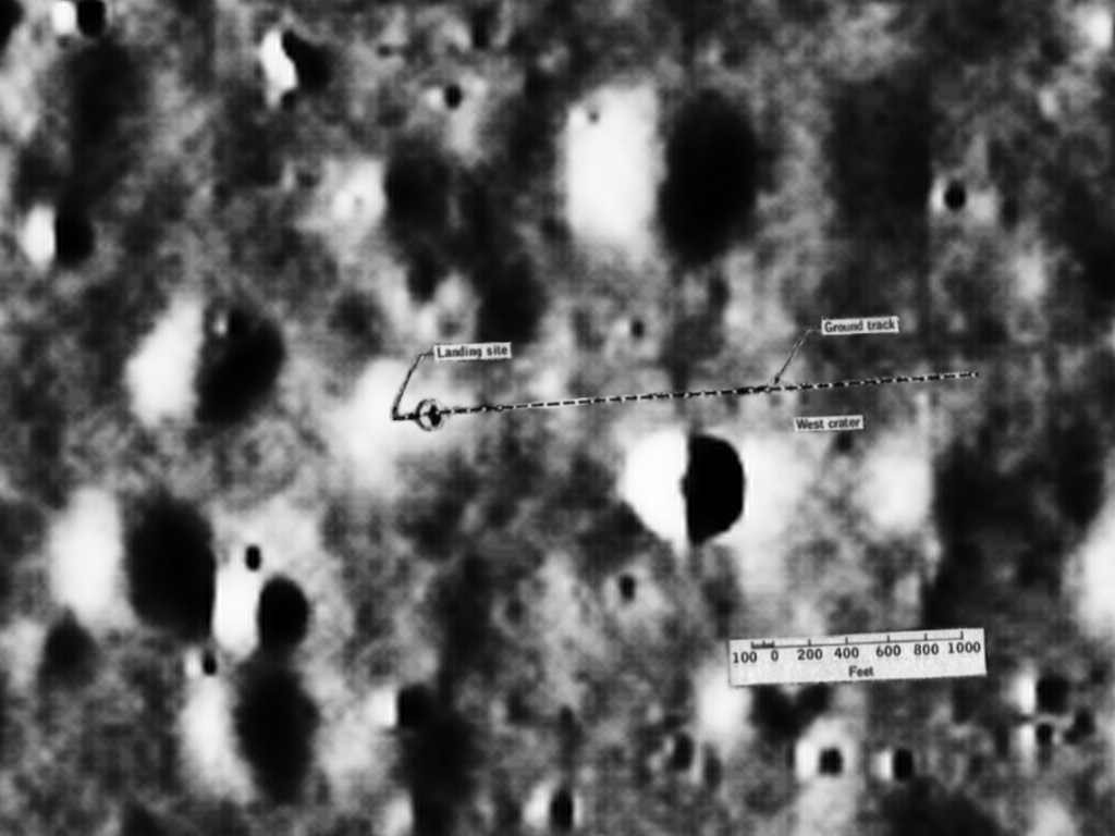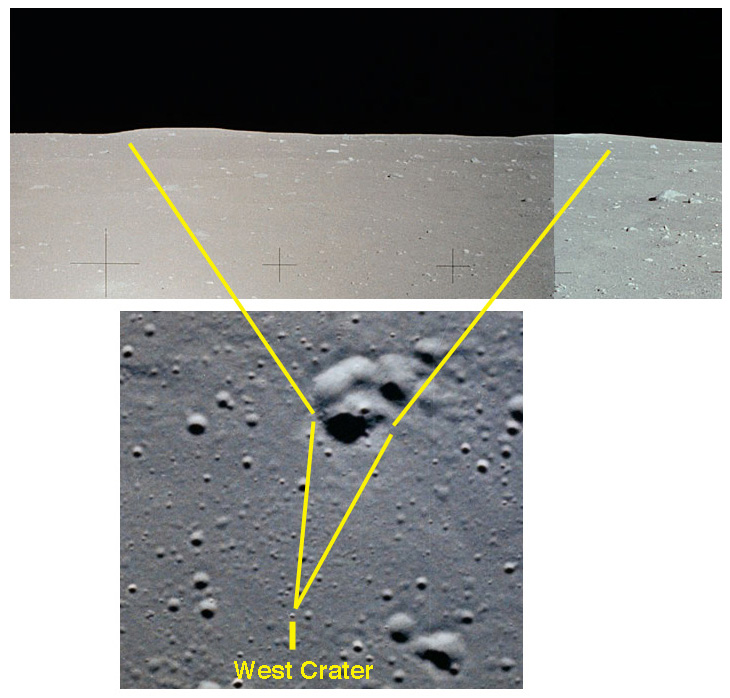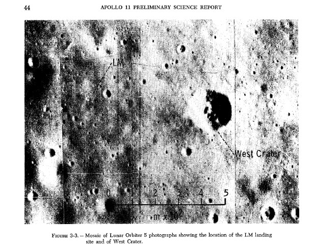 Lunar Orbiter 5 Mosaic showing the LM location and West Crater.Figure 3-15 ( 280k )