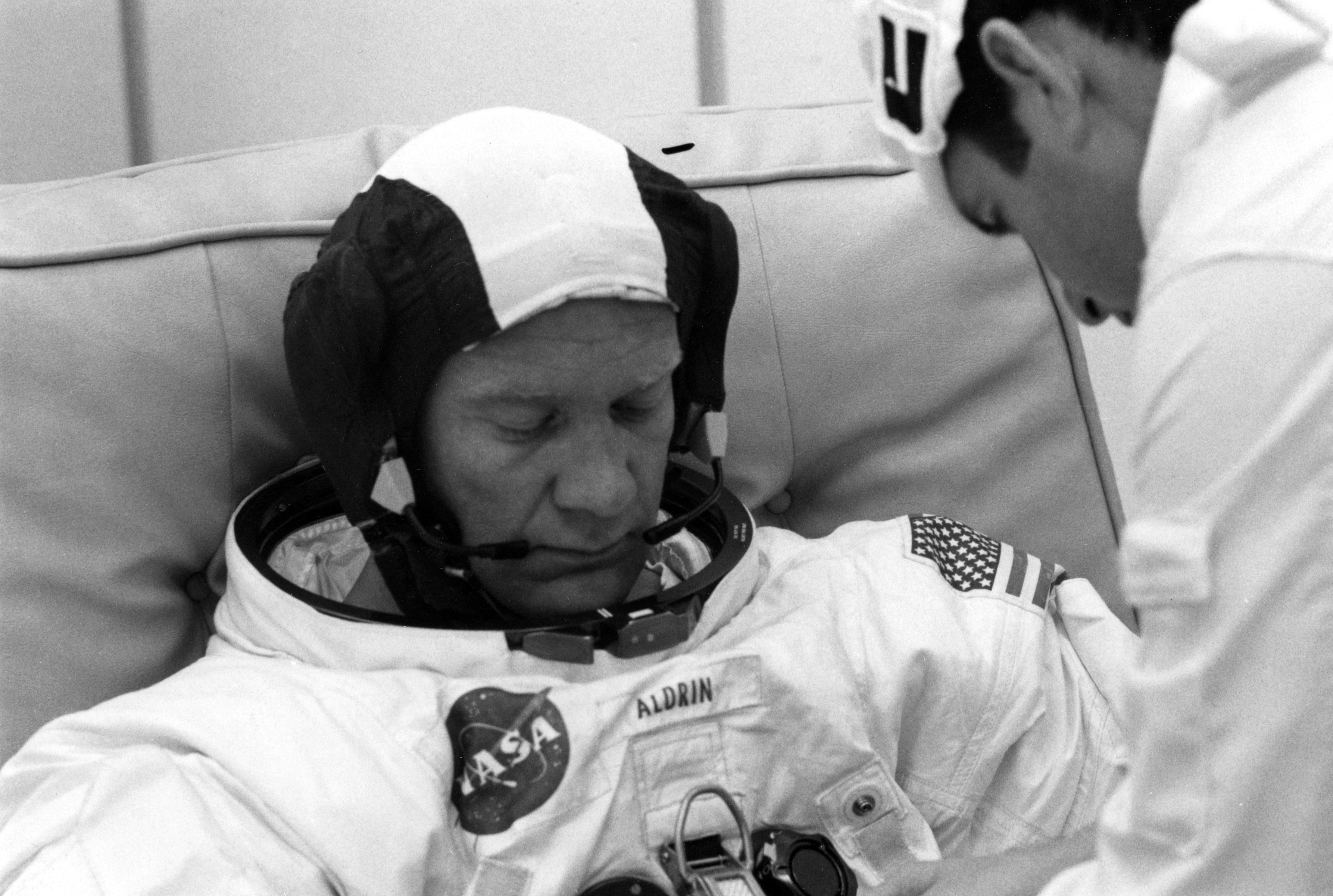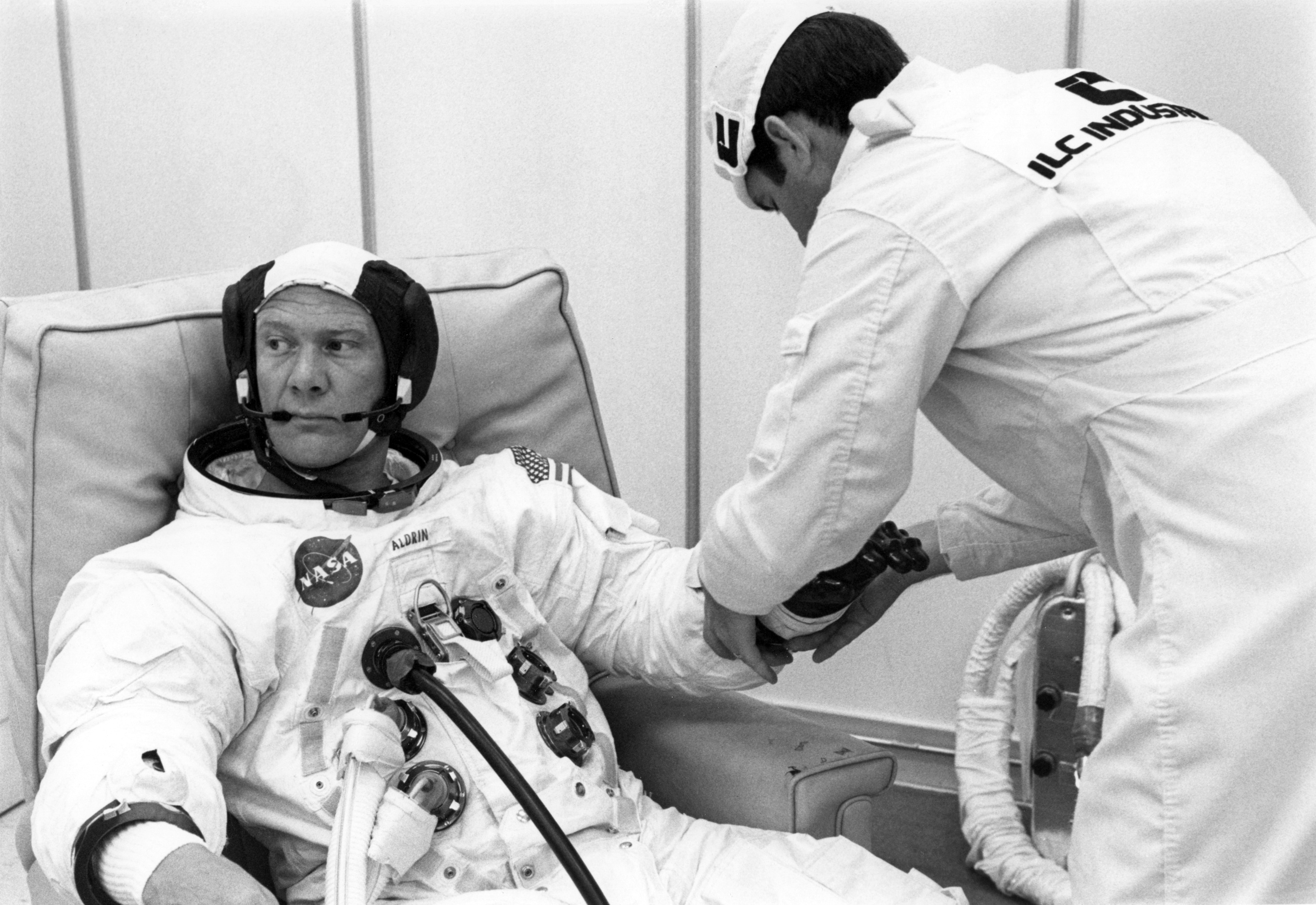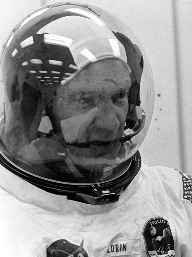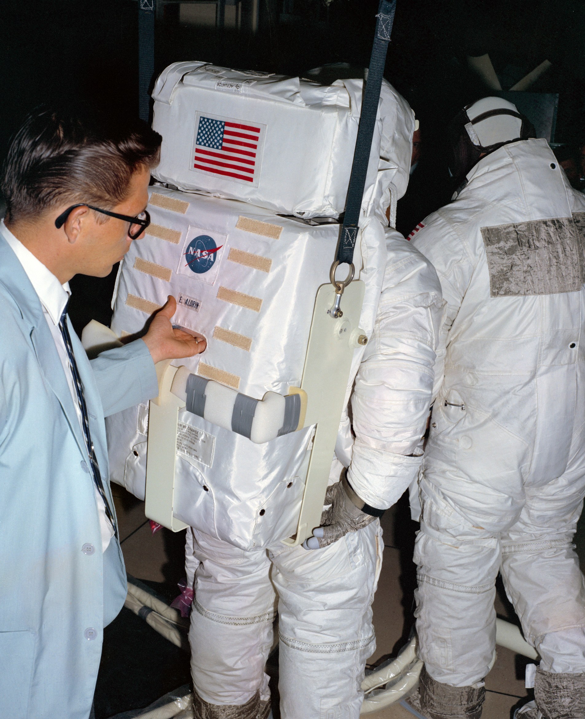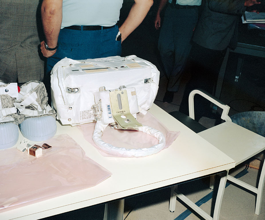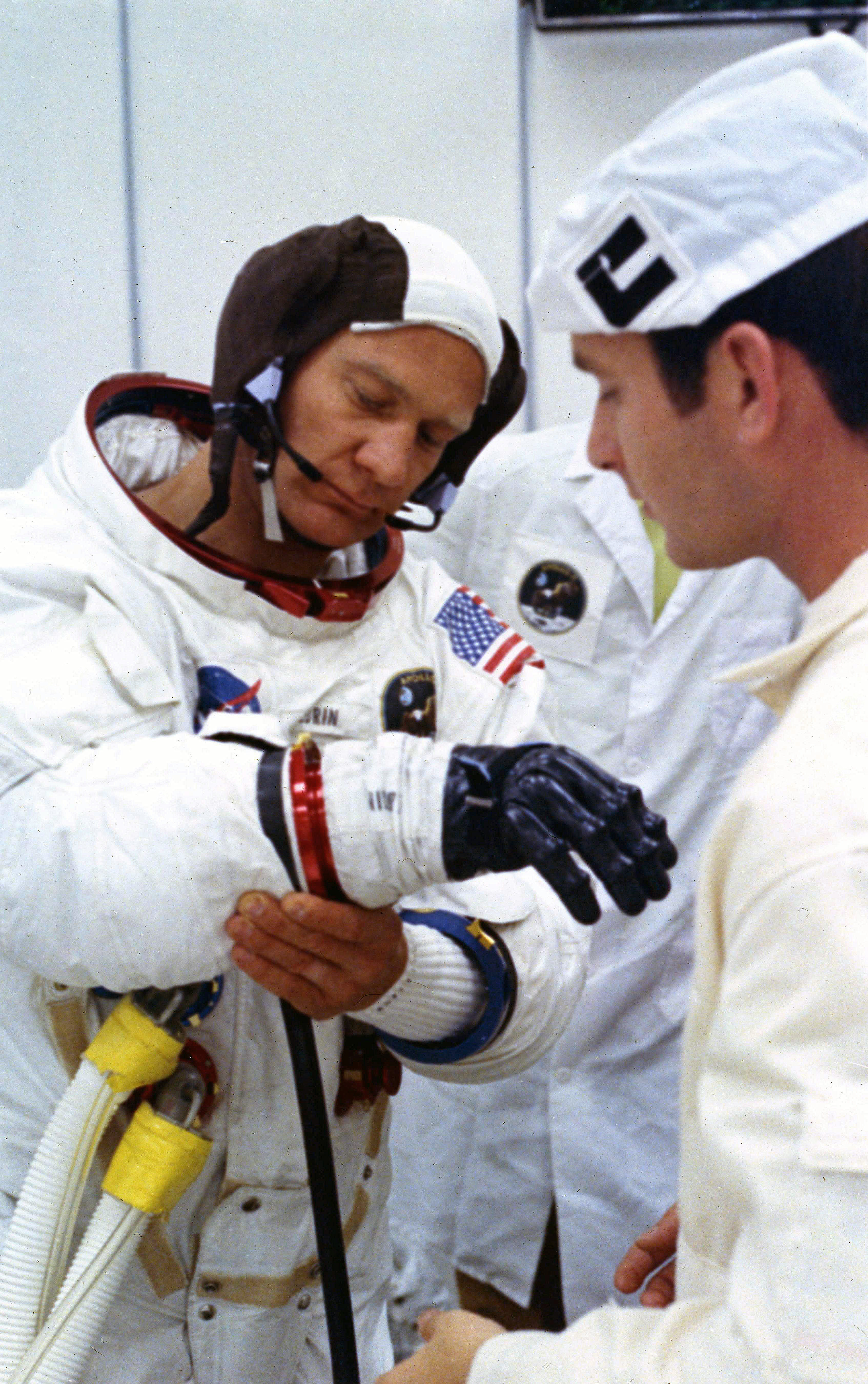 Ulli Lotzmann with Buzz's flown suit at the National Air and Space Museum's Garber Facility. August 2005. Photo by Bill Ayrey.Flown Star Charts ( HTML link )