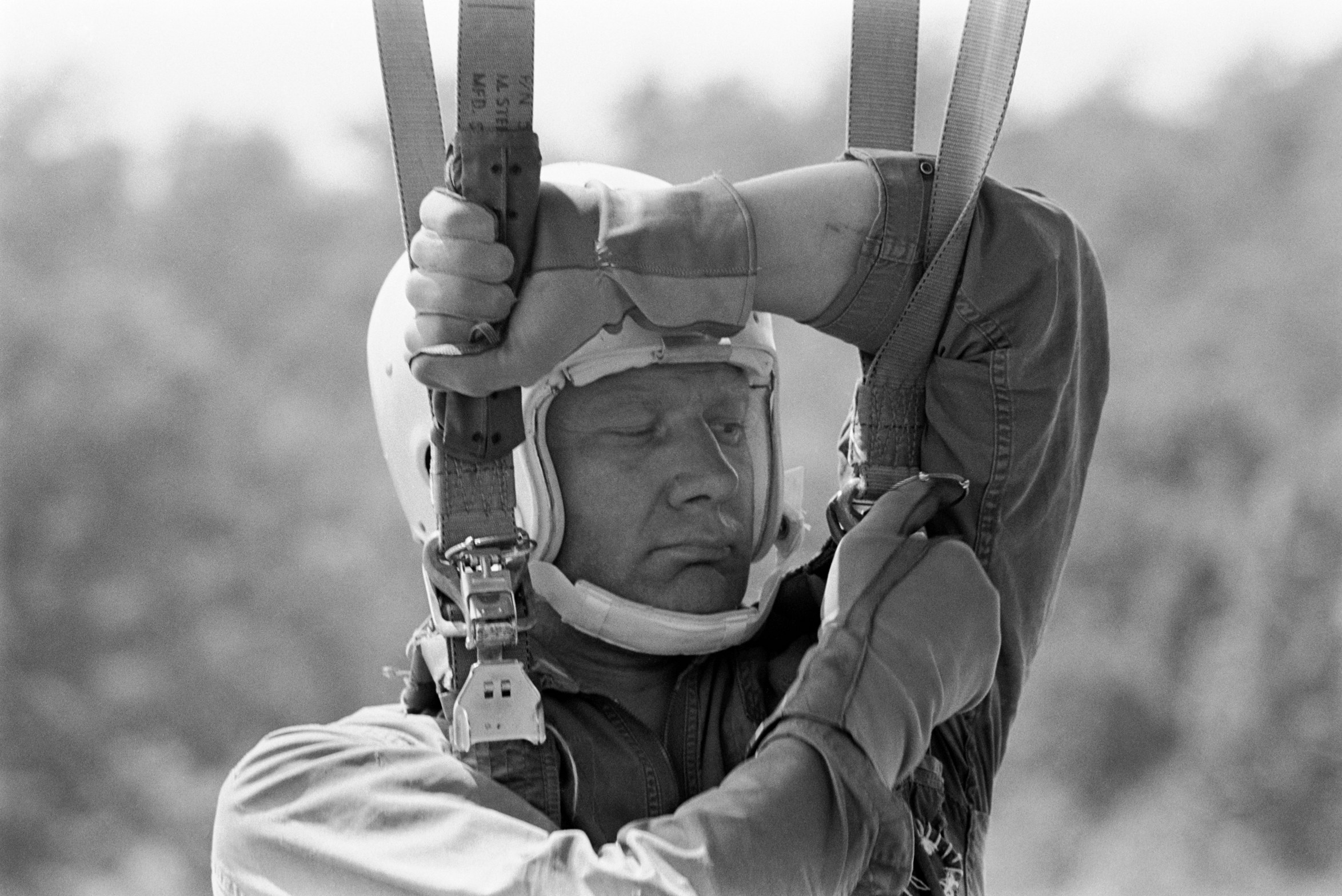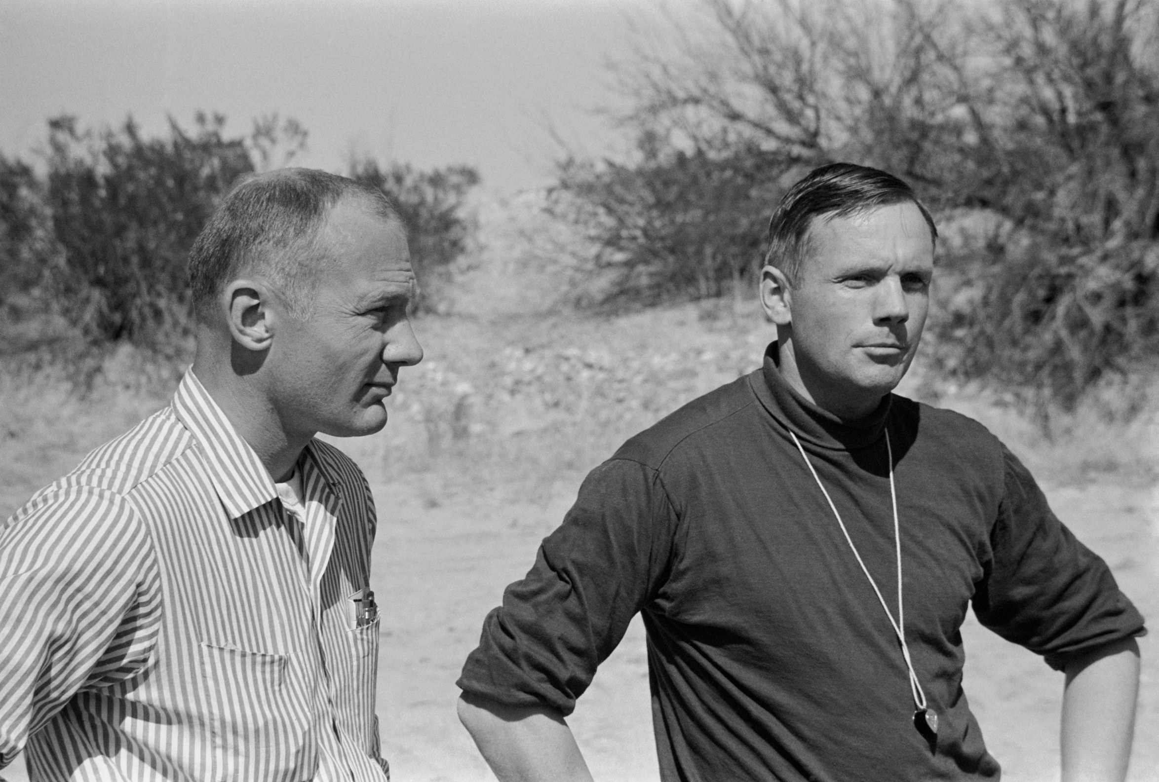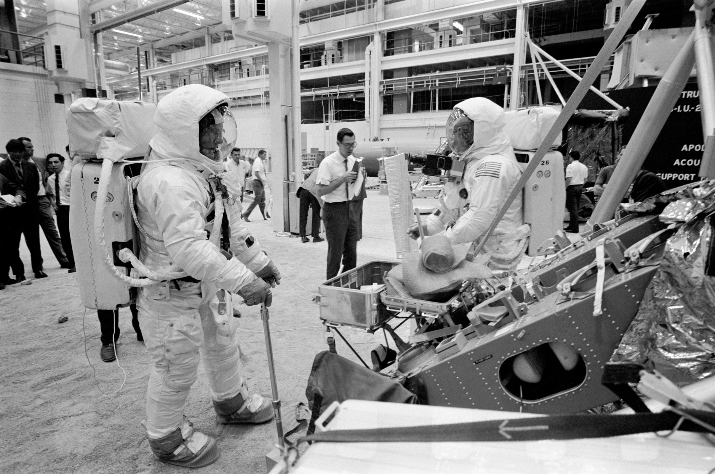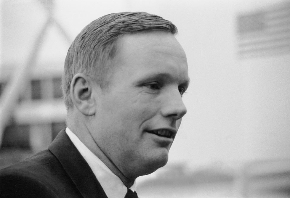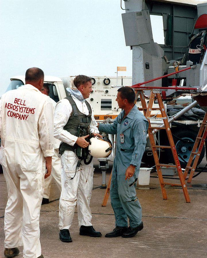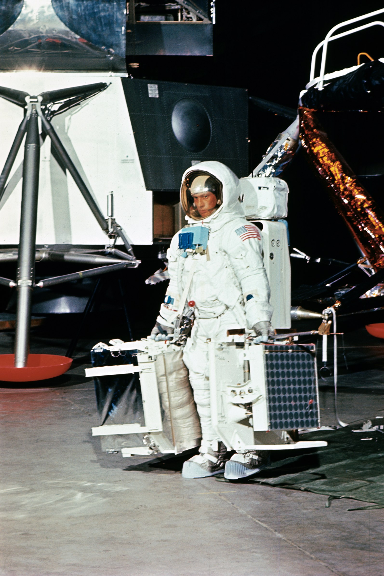 The fact that Neil is wearing his "Hornet Plus Three" badge suggests that this photo was taken on-board the recovery ship. Unknown photographer. Scan courtsey Connie Moore/NASA HQ.S69-40210 ( 1.1 Mb )