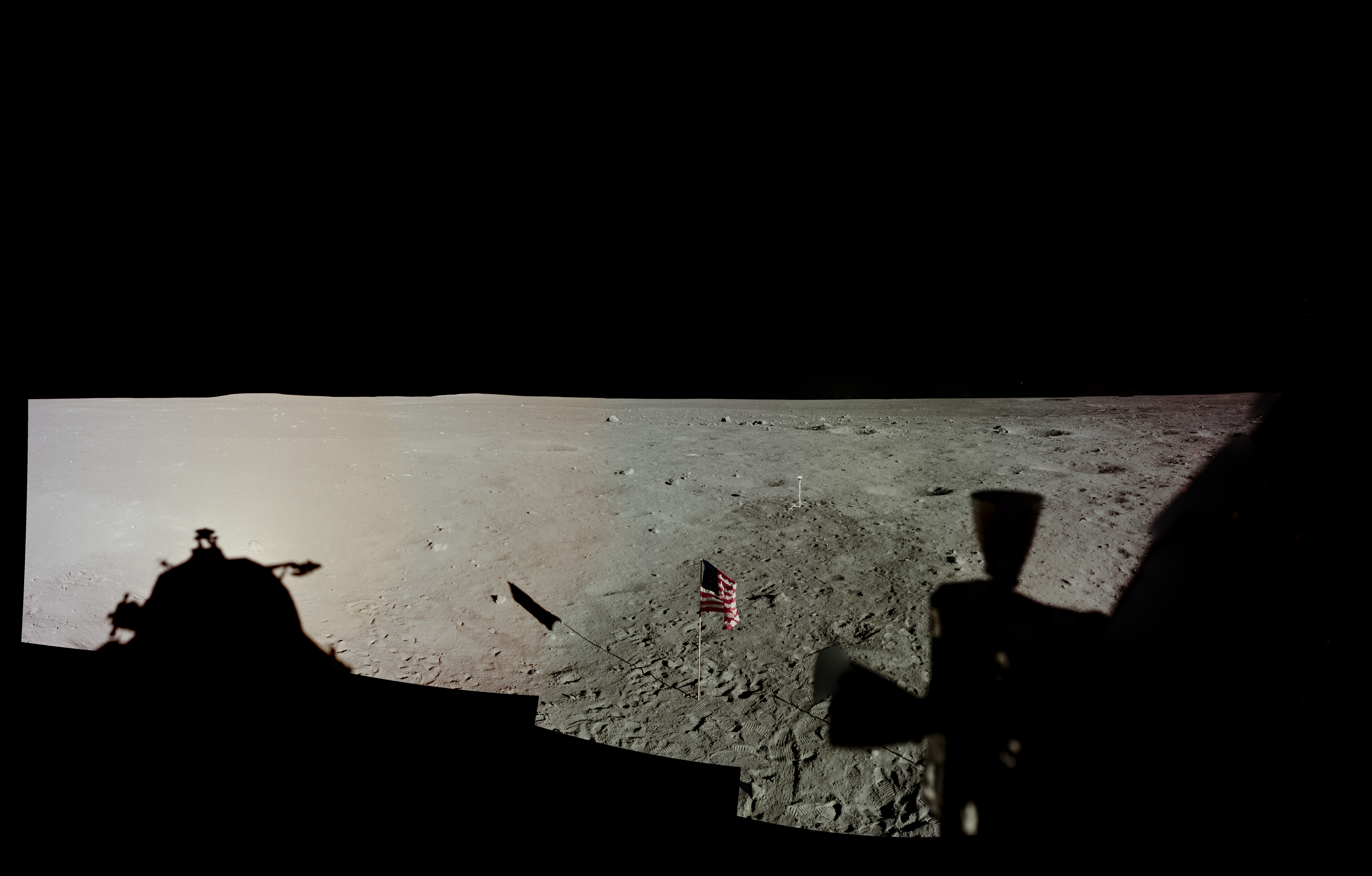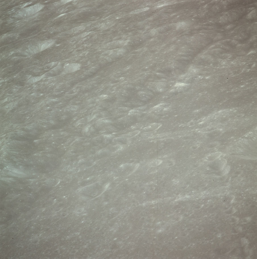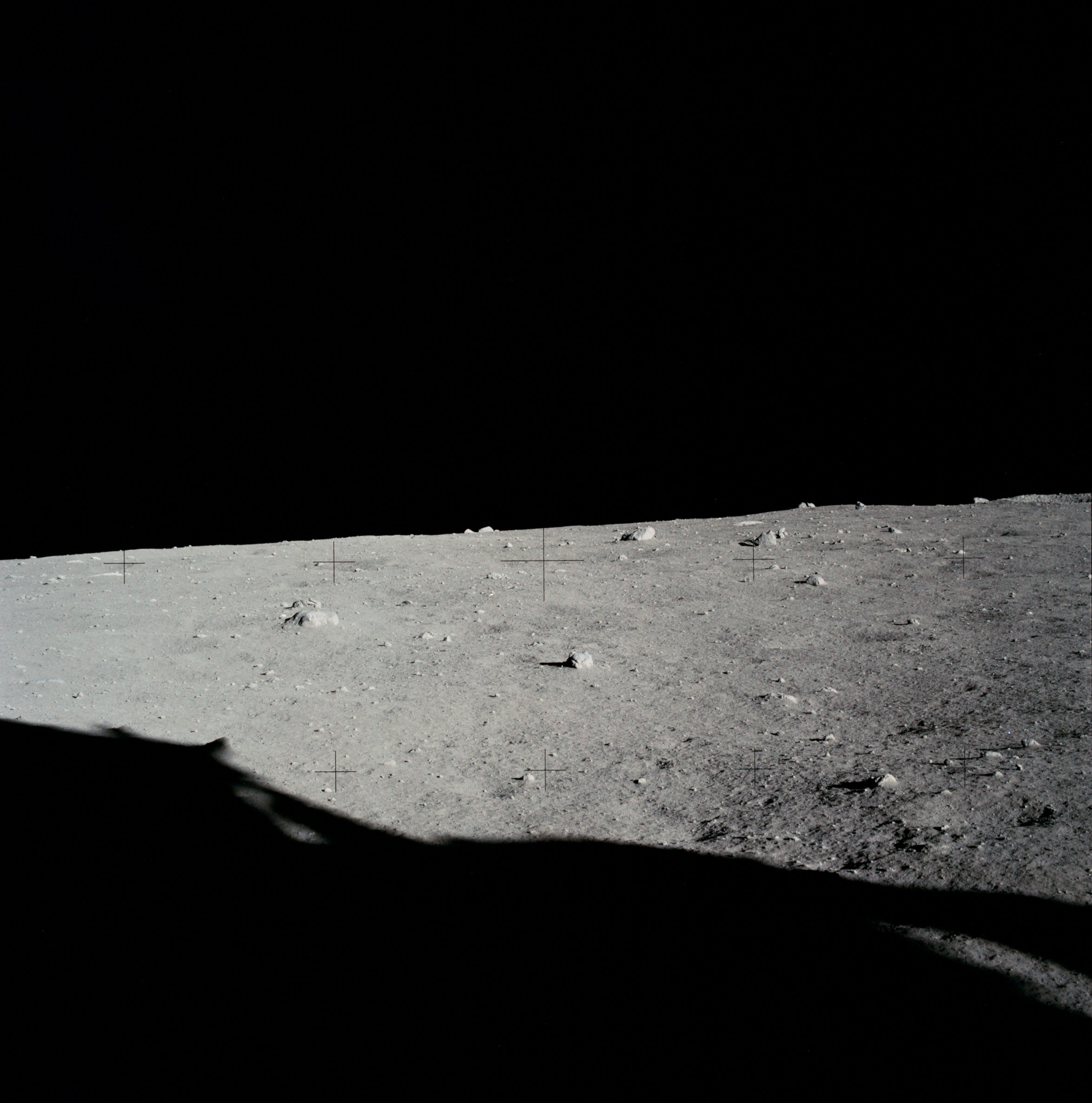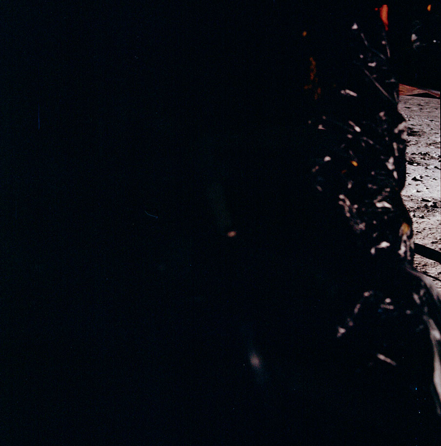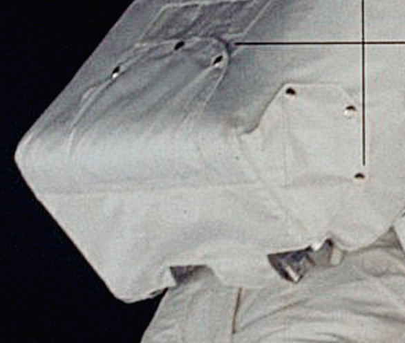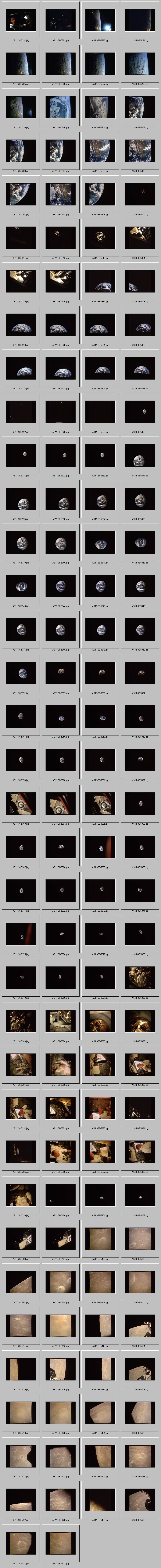 Many of the scans of photos taken during the missions were done from the original film. These scans are being done by NASA Johnson, with some post-processing by Kipp Teague. The film is scanned at 4096 x 4096 pixels per image. (See a discussion from Arizona State University about the scanning process.) Kipp reduced each digital image to approximately 2350 x 2350 pixels (equivalent to 300 dpi) and did minor adjustments of levels to ensure that (1) brightly lit areas of lunar soil were neutral grey, (2) objects with known colors (such as the CDR stripes or the LCRU blankets) looked right, and (3) information in bright or dark areas was not lost. These images from original film are indicated by the notation 'OF300' in the image description. In each case, a 900 x 900 pixel version is also provided.