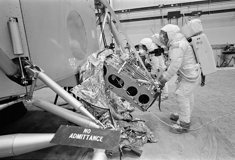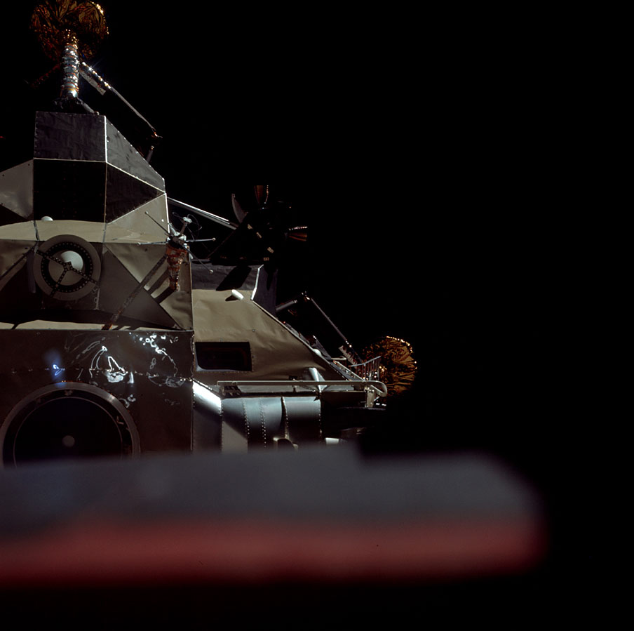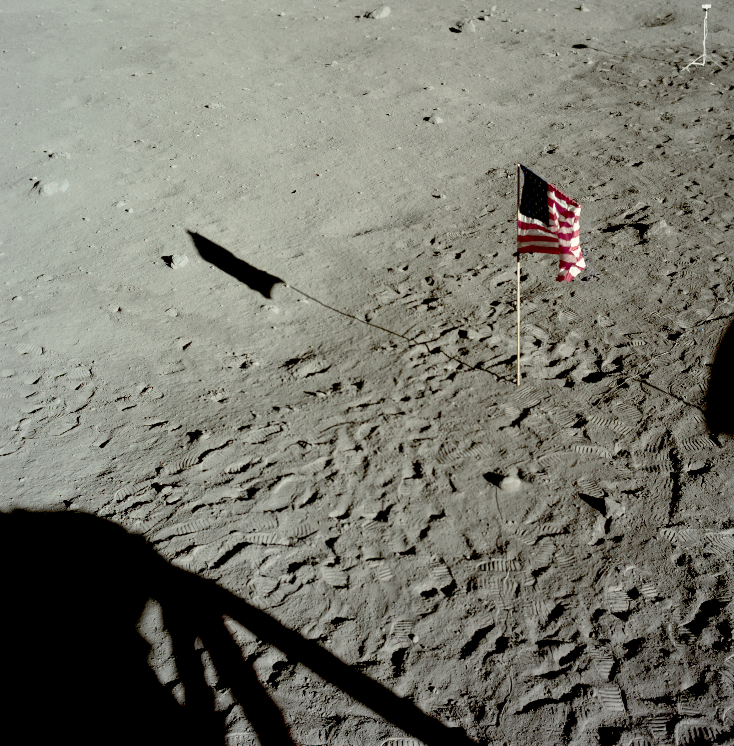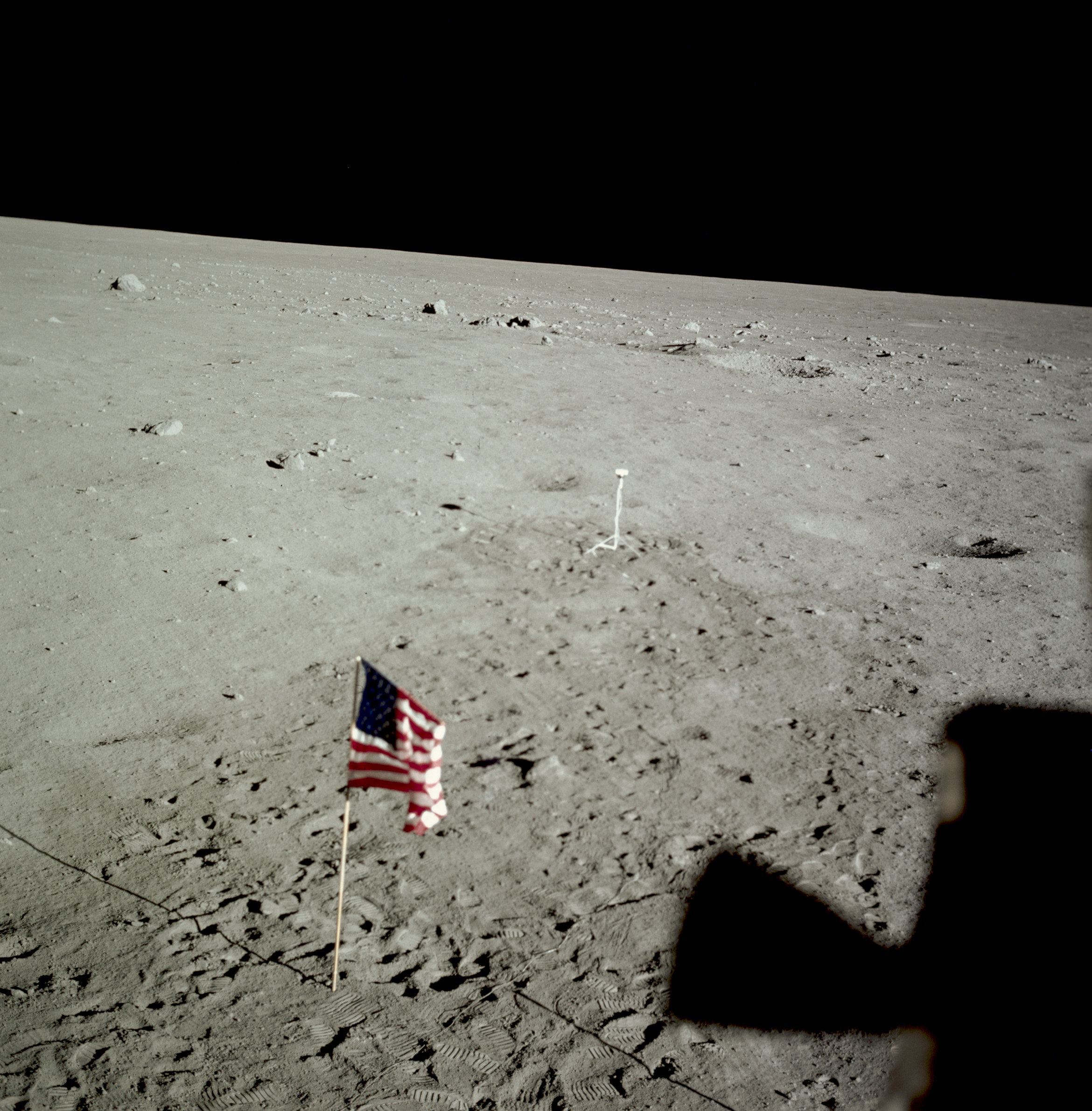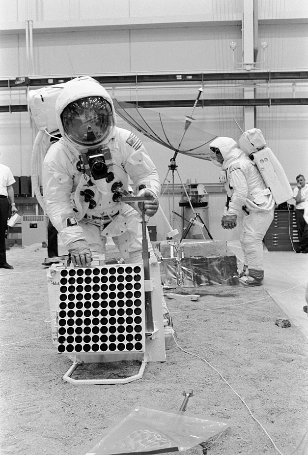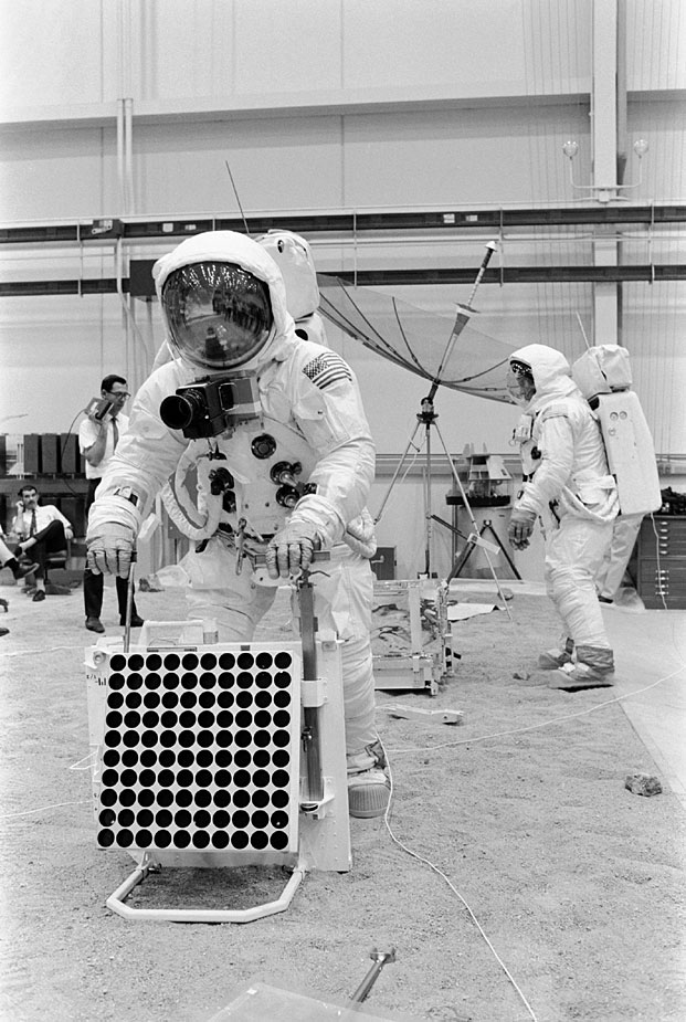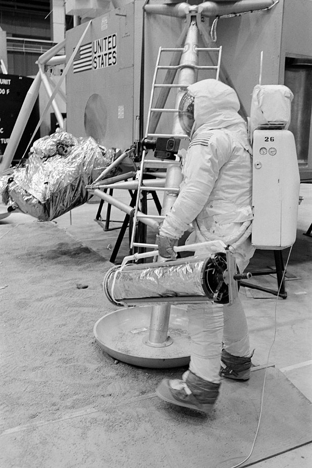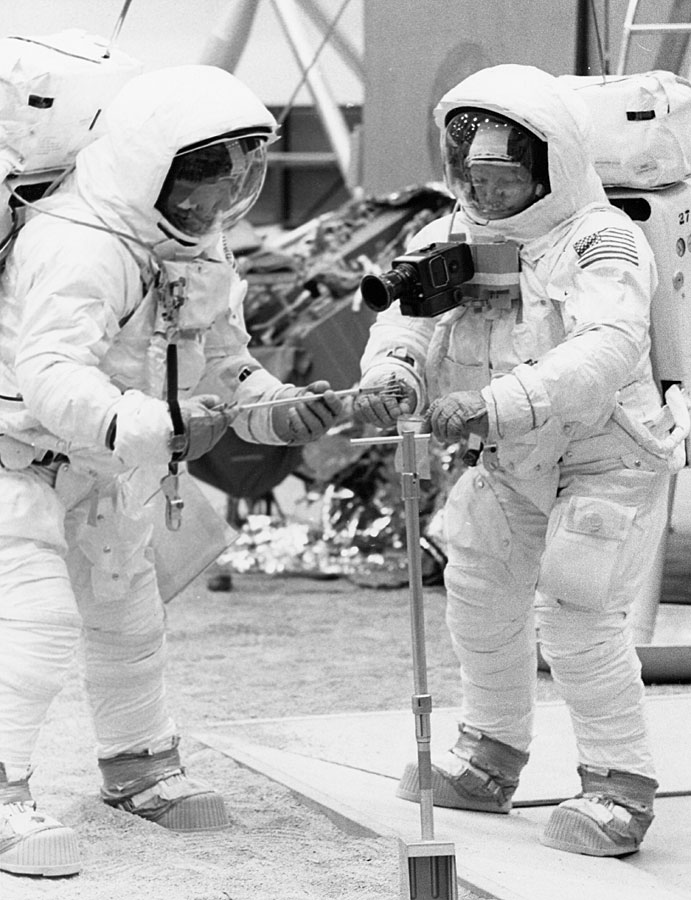 Many of the scans of photos taken during the missions were done from the original film. These scans are being done by NASA Johnson, with some post-processing by Kipp Teague. The film is scanned at 4096 x 4096 pixels per image. (See a discussion from Arizona State University about the scanning process.) Kipp reduced each digital image to approximately 2350 x 2350 pixels (equivalent to 300 dpi) and did minor adjustments of levels to ensure that (1) brightly lit areas of lunar soil were neutral grey, (2) objects with known colors (such as the CDR stripes or the LCRU blankets) looked right, and (3) information in bright or dark areas was not lost. These images from original film are indicated by the notation 'OF300' in the image description. In each case, a 900 x 900 pixel version is also provided.