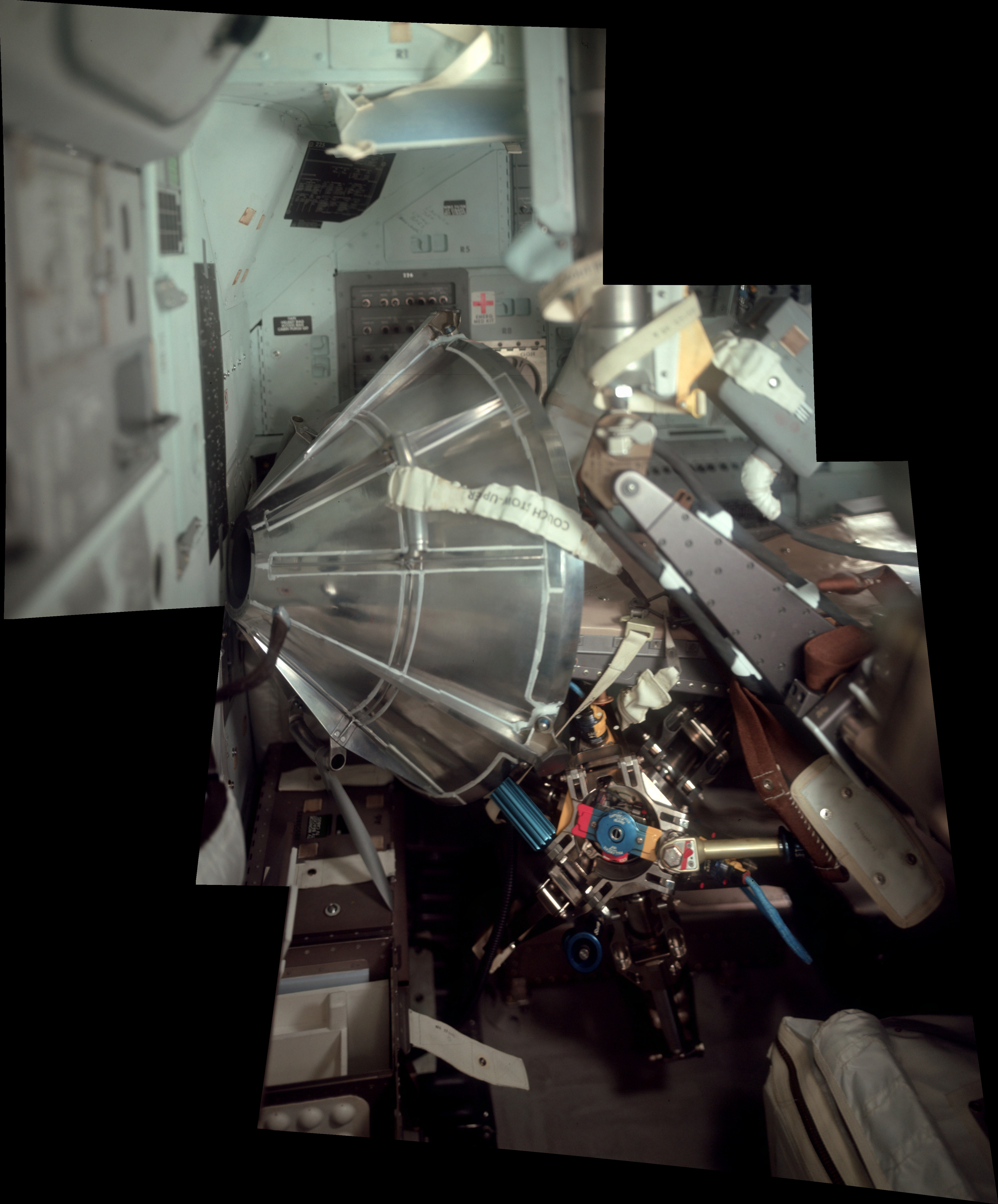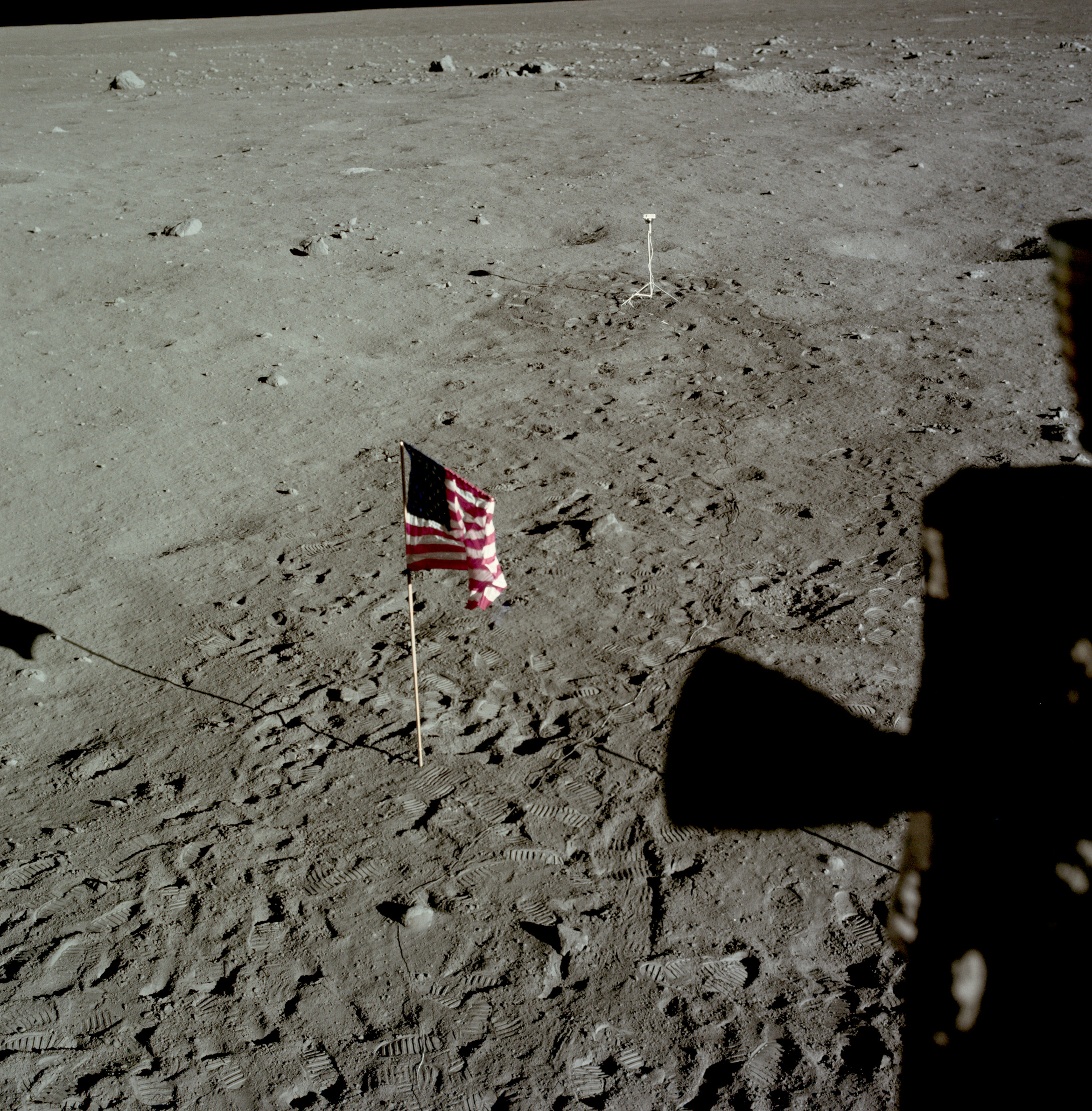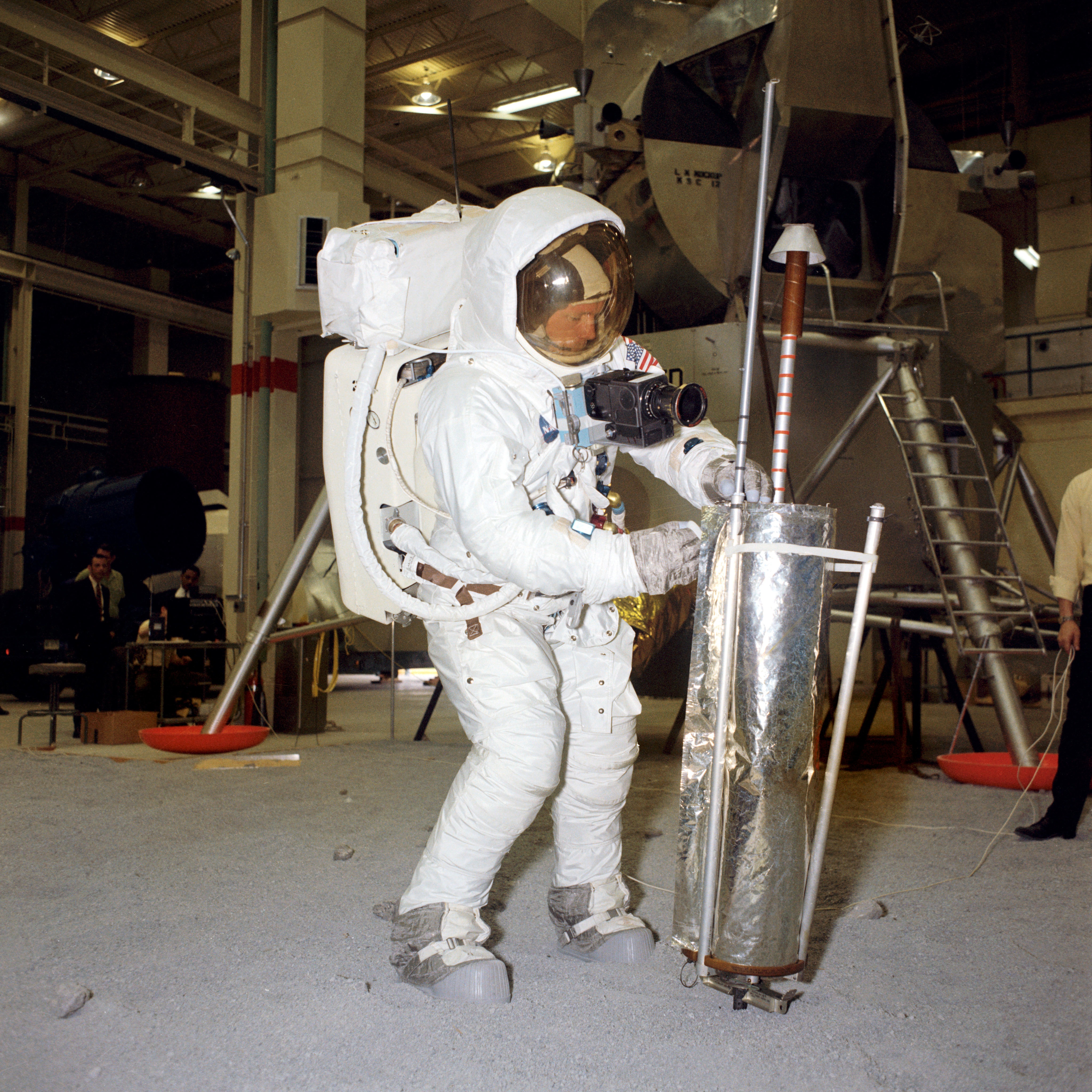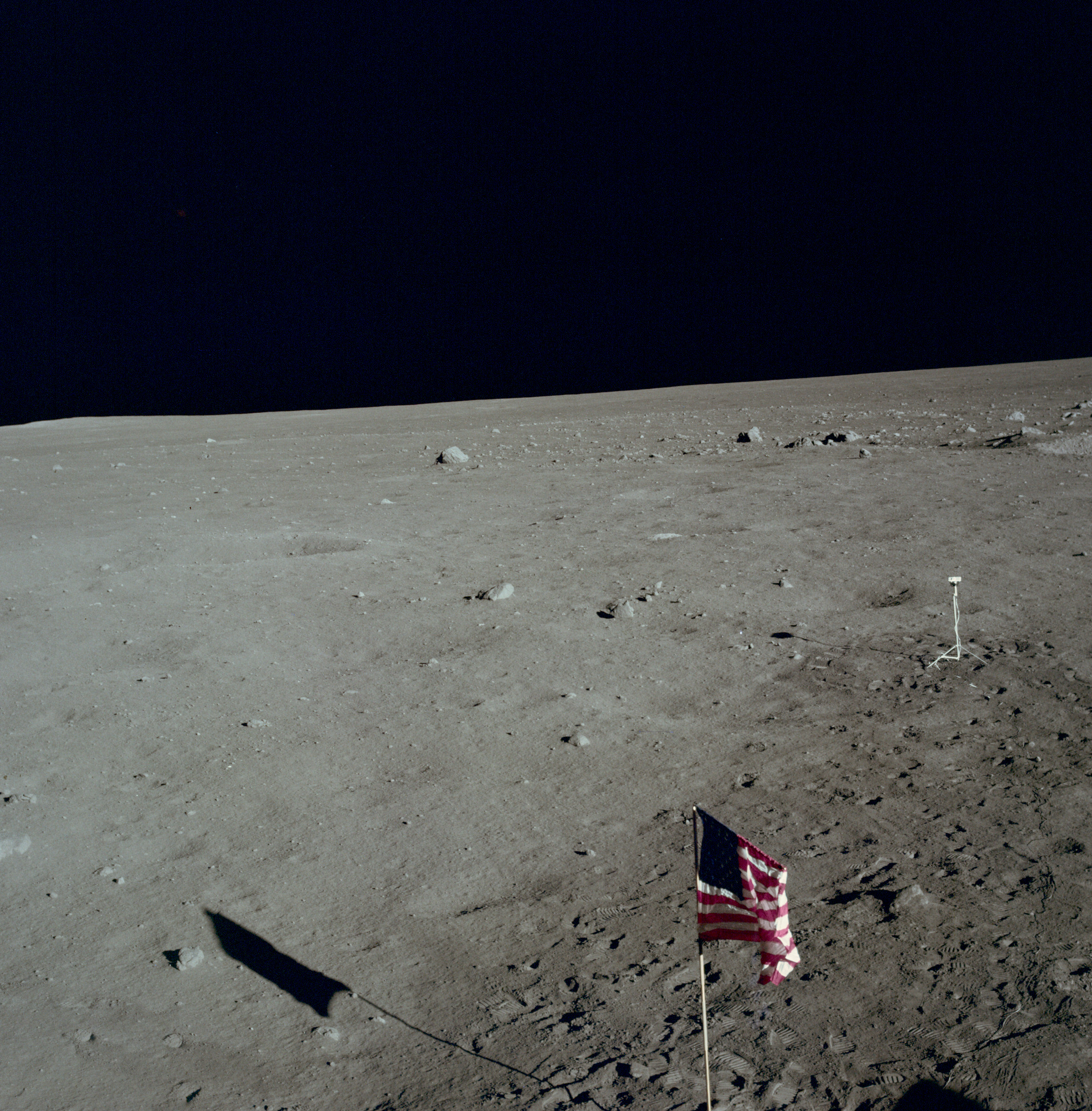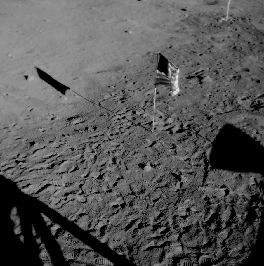 Many of the scans of photos taken during the missions were done from the original film. These scans are being done by NASA Johnson, with some post-processing by Kipp Teague. The film is scanned at 4096 x 4096 pixels per image. (See a discussion from Arizona State University about the scanning process.) Kipp reduced each digital image to approximately 2350 x 2350 pixels (equivalent to 300 dpi) and did minor adjustments of levels to ensure that (1) brightly lit areas of lunar soil were neutral grey, (2) objects with known colors (such as the CDR stripes or the LCRU blankets) looked right, and (3) information in bright or dark areas was not lost. These images from original film are indicated by the notation 'OF300' in the image description. In each case, a 900 x 900 pixel version is also provided.