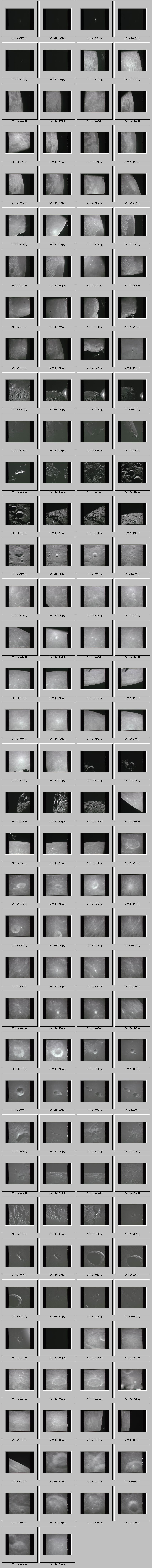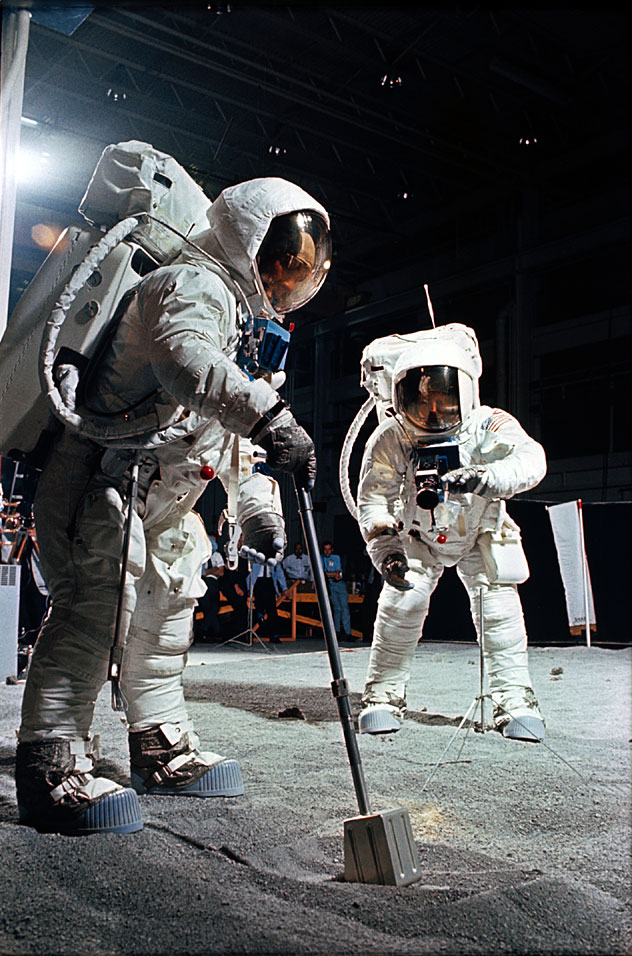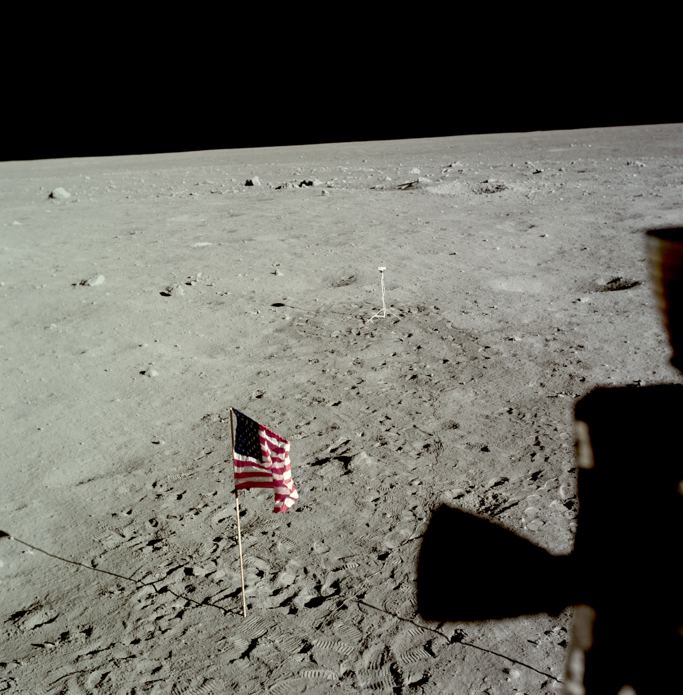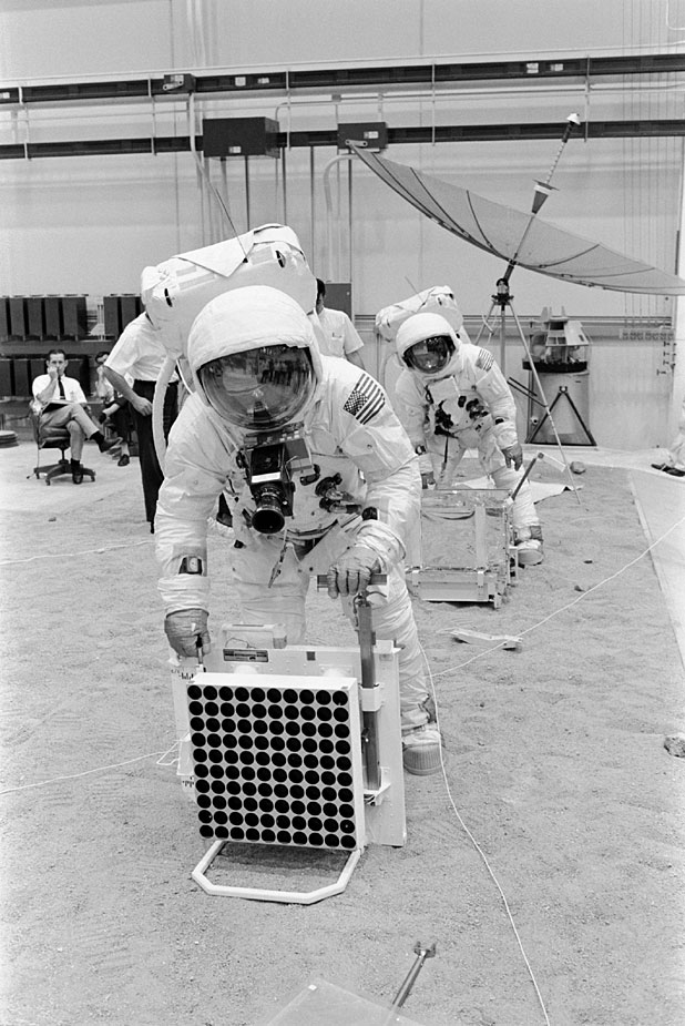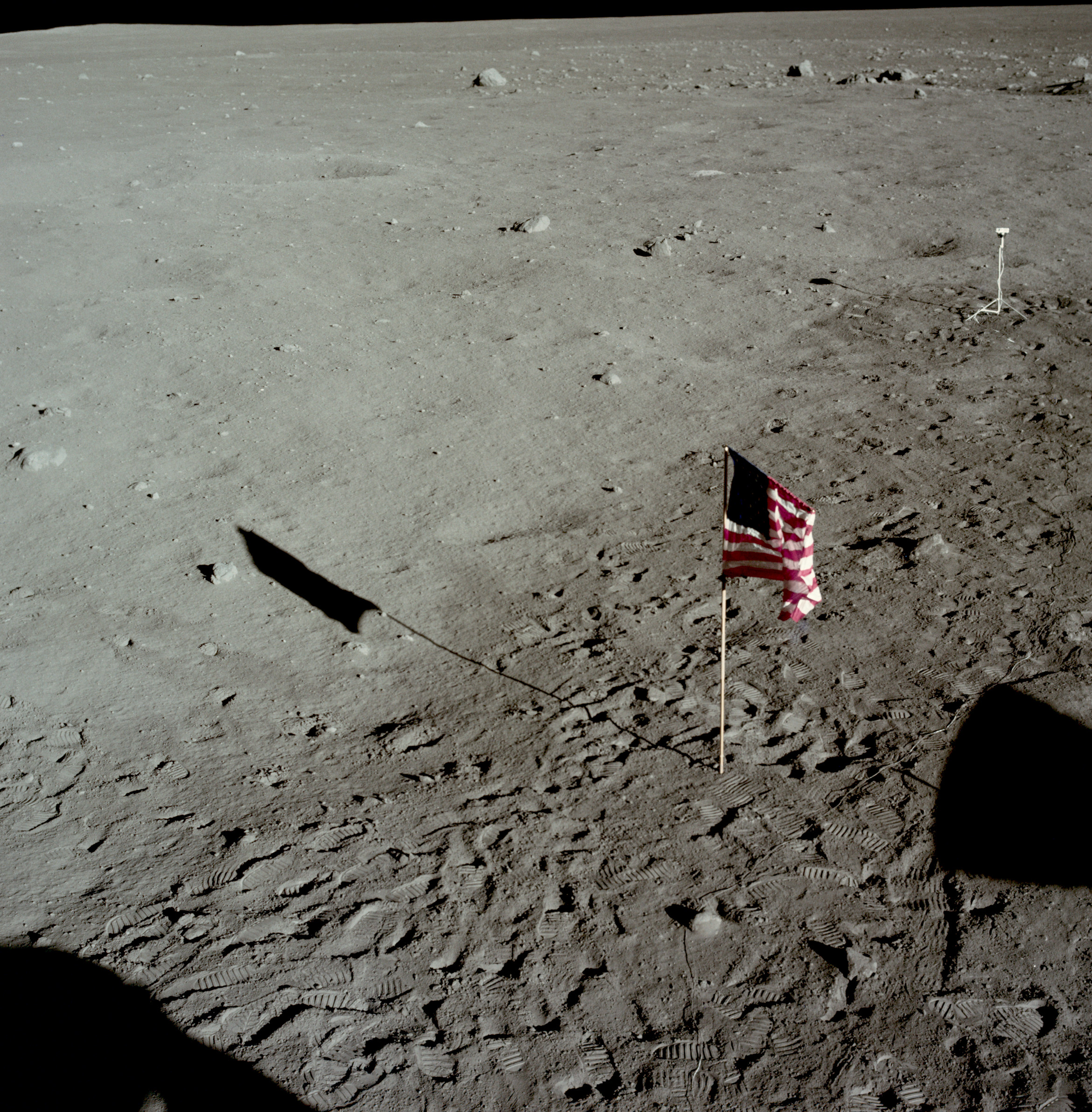 Many of the scans of photos taken during the missions were done from the original film. These scans are being done by NASA Johnson, with some post-processing by Kipp Teague. The film is scanned at 4096 x 4096 pixels per image. (See a discussion from Arizona State University about the scanning process.) Kipp reduced each digital image to approximately 2350 x 2350 pixels (equivalent to 300 dpi) and did minor adjustments of levels to ensure that (1) brightly lit areas of lunar soil were neutral grey, (2) objects with known colors (such as the CDR stripes or the LCRU blankets) looked right, and (3) information in bright or dark areas was not lost. These images from original film are indicated by the notation 'OF300' in the image description. In each case, a 900 x 900 pixel version is also provided.