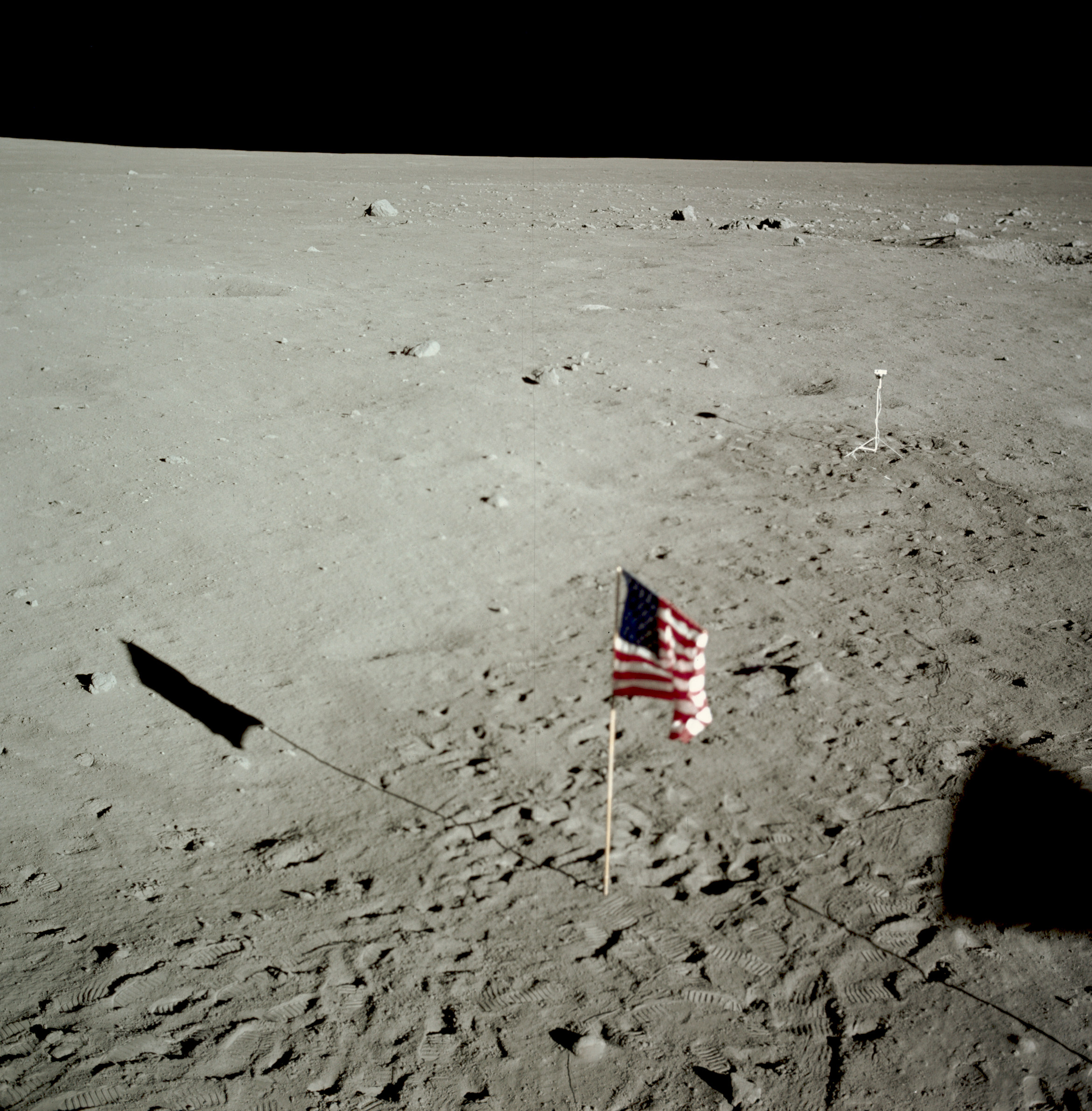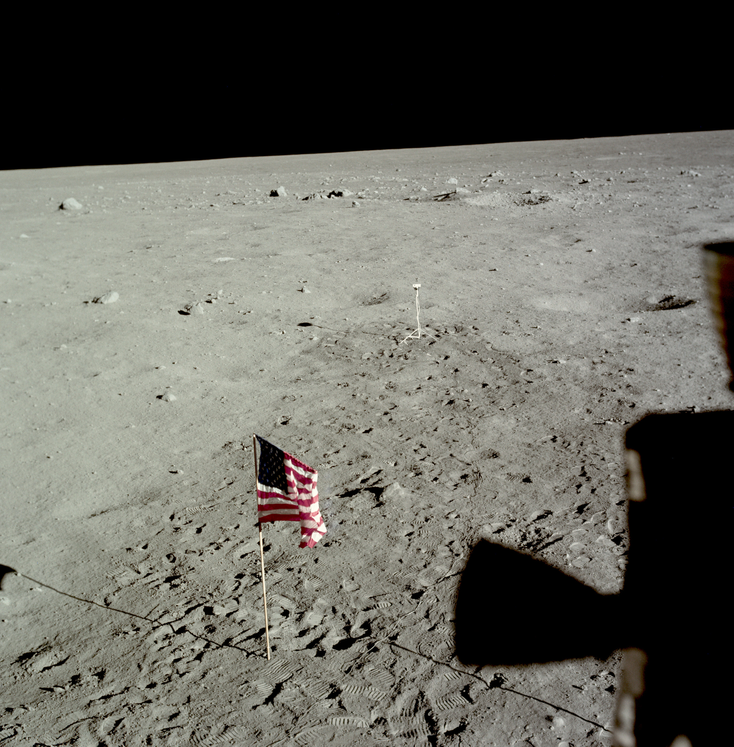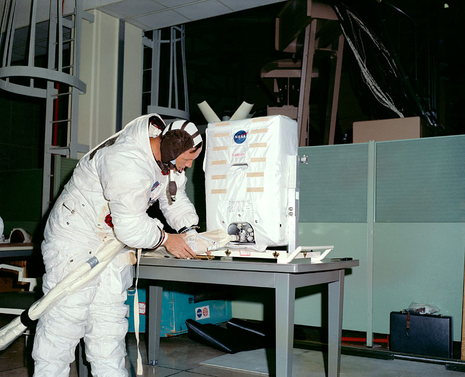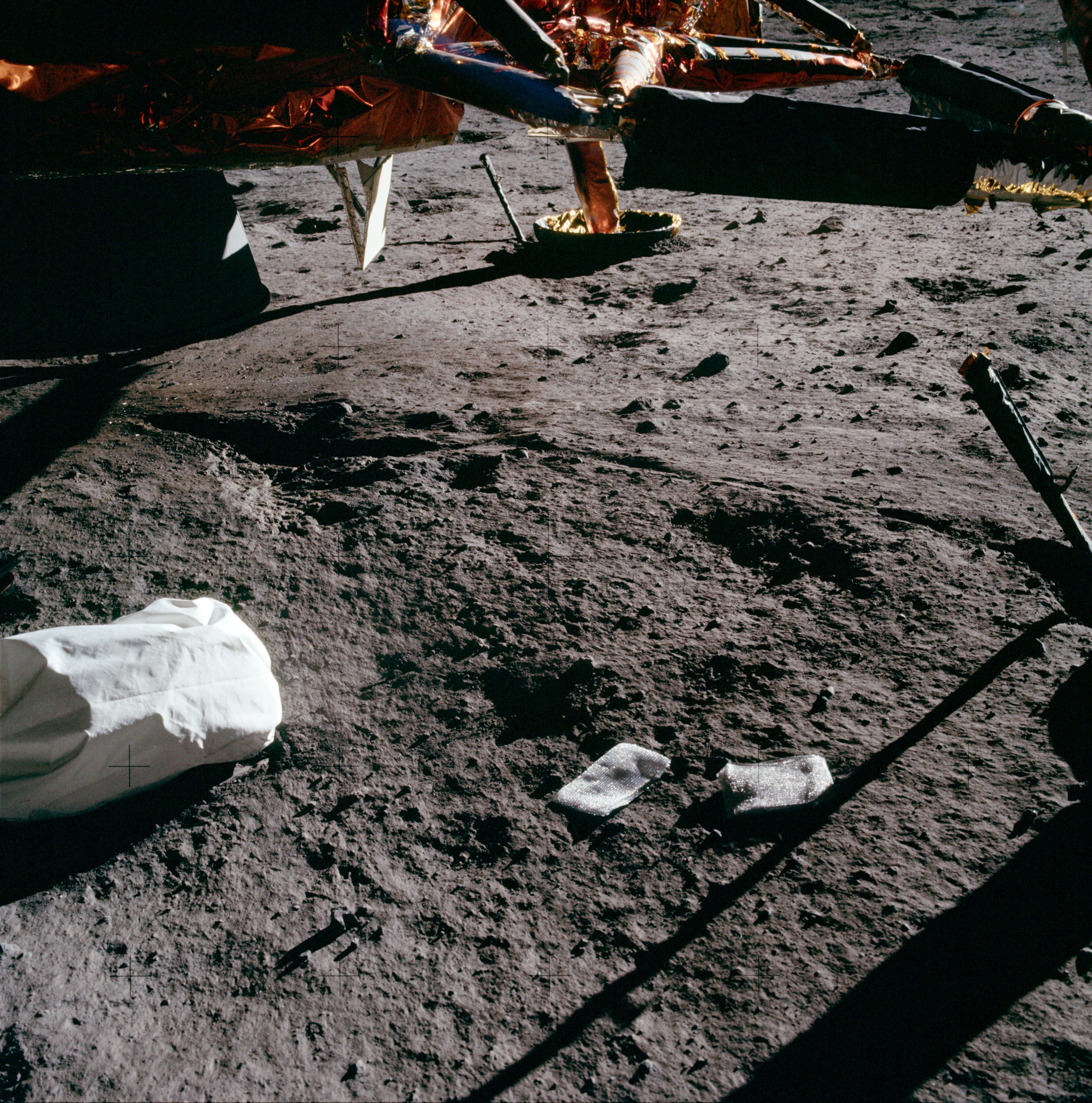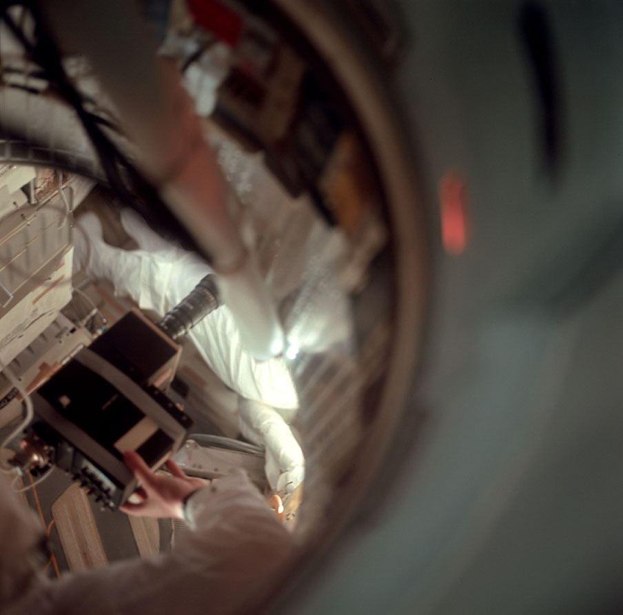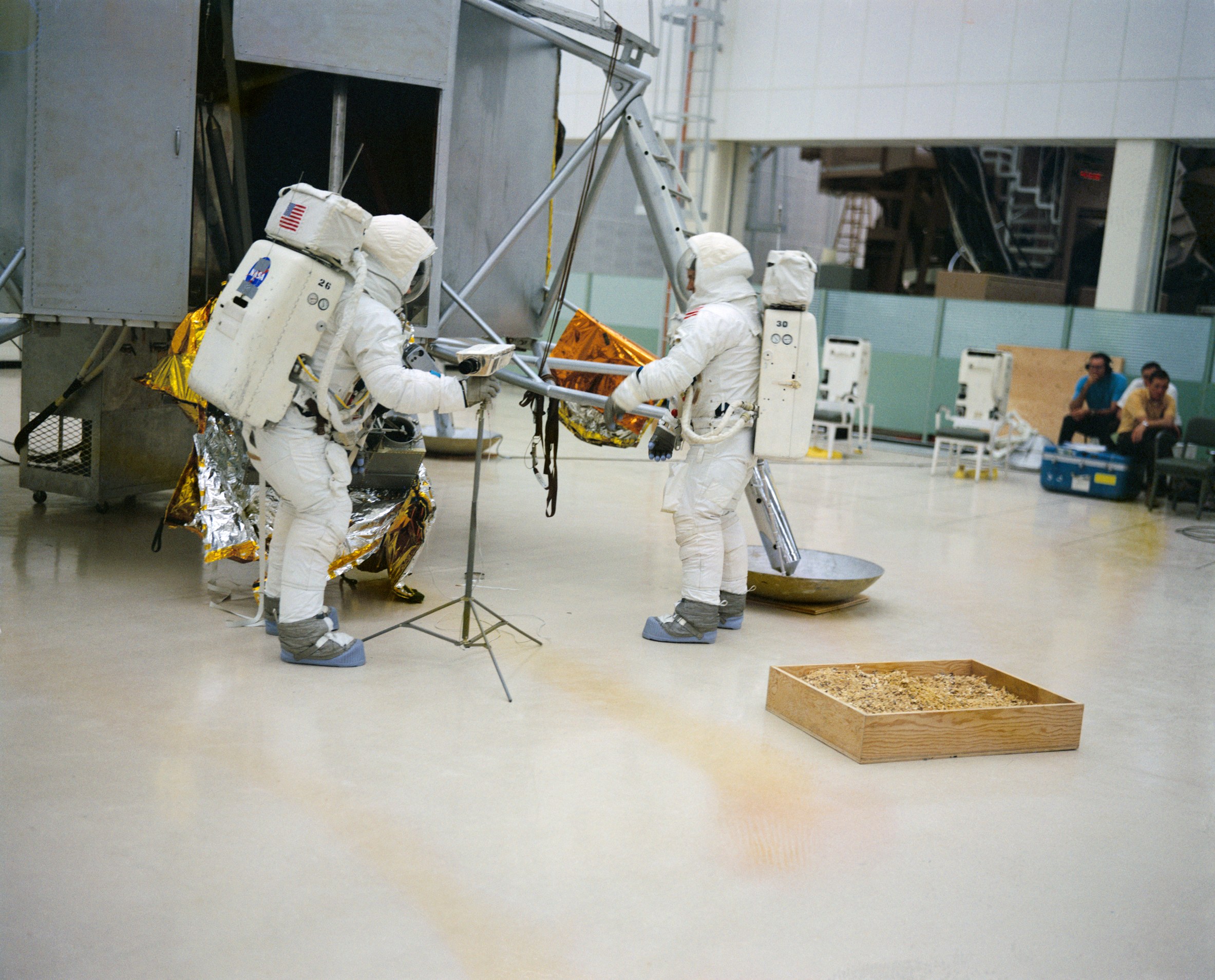 Many of the scans of photos taken during the missions were done from the original film. These scans are being done by NASA Johnson, with some post-processing by Kipp Teague. The film is scanned at 4096 x 4096 pixels per image. (See a discussion from Arizona State University about the scanning process.) Kipp reduced each digital image to approximately 2350 x 2350 pixels (equivalent to 300 dpi) and did minor adjustments of levels to ensure that (1) brightly lit areas of lunar soil were neutral grey, (2) objects with known colors (such as the CDR stripes or the LCRU blankets) looked right, and (3) information in bright or dark areas was not lost. These images from original film are indicated by the notation 'OF300' in the image description. In each case, a 900 x 900 pixel version is also provided.