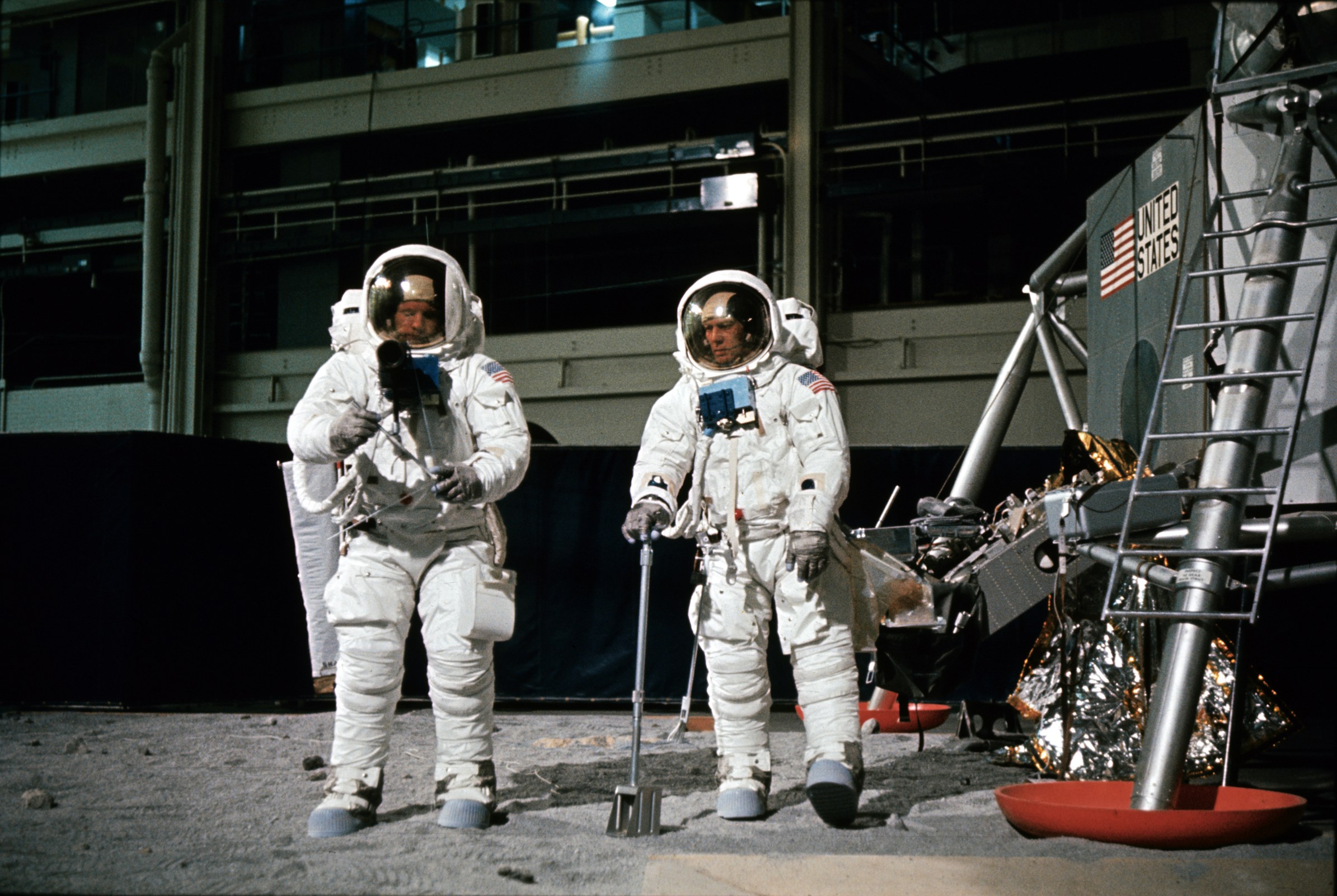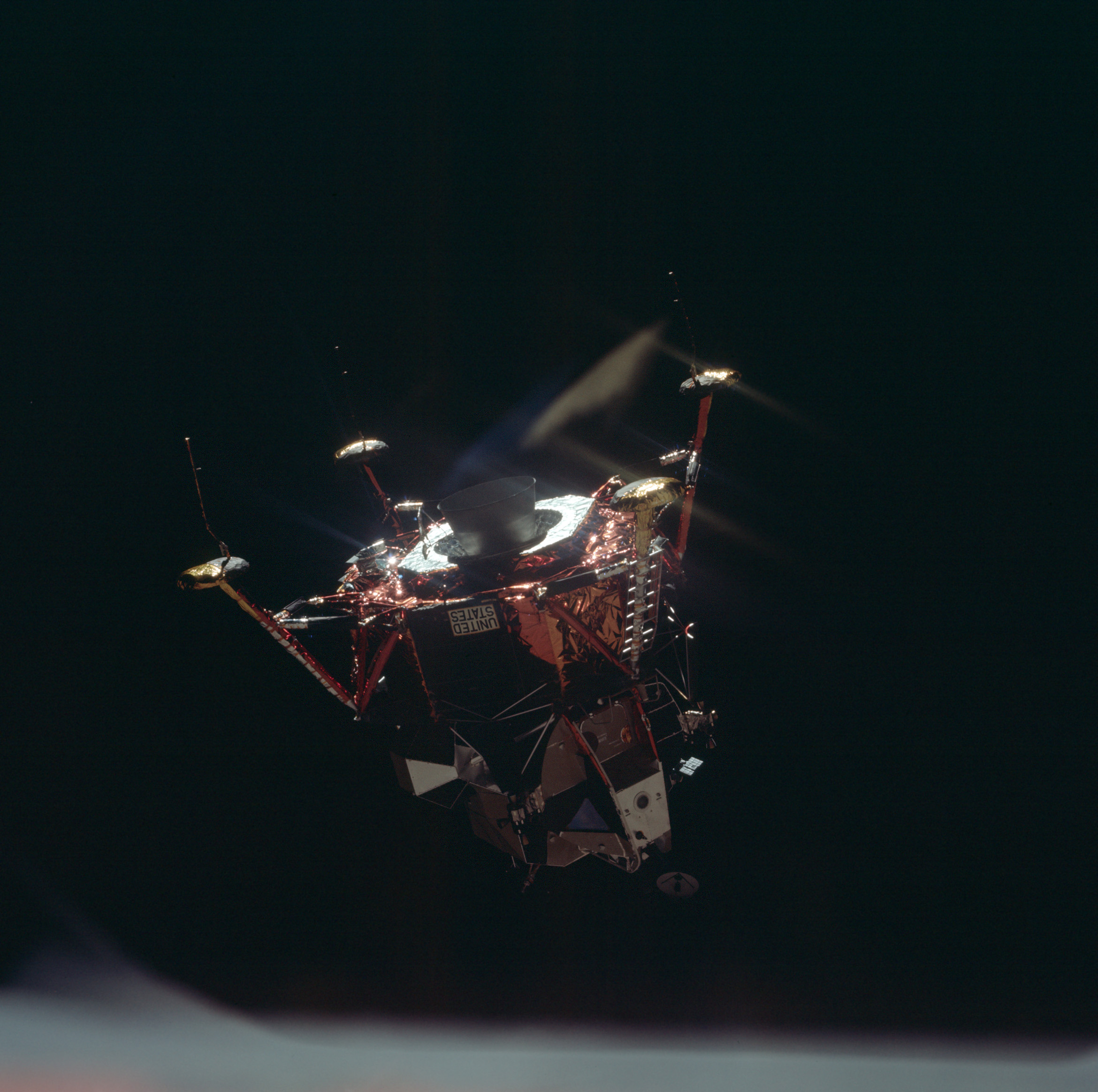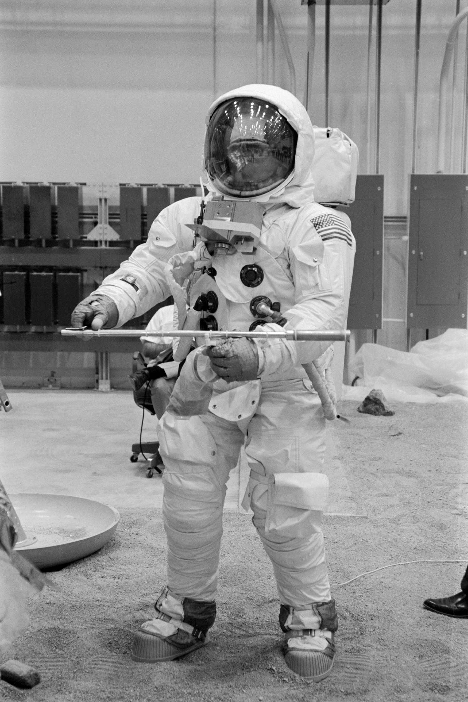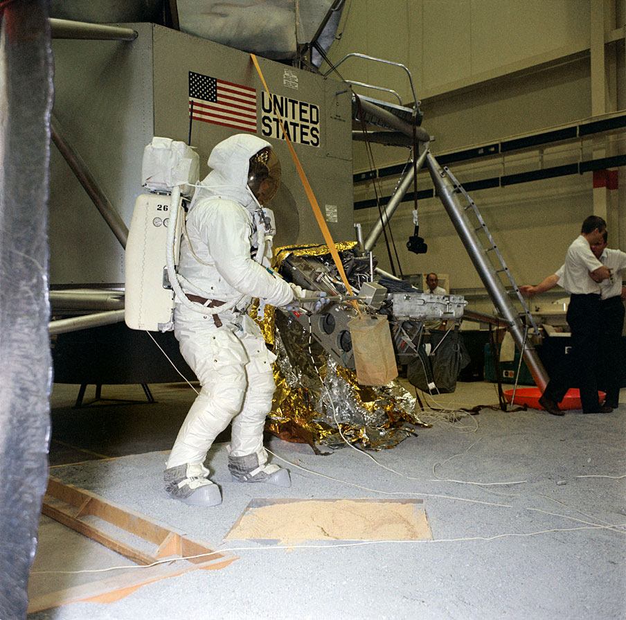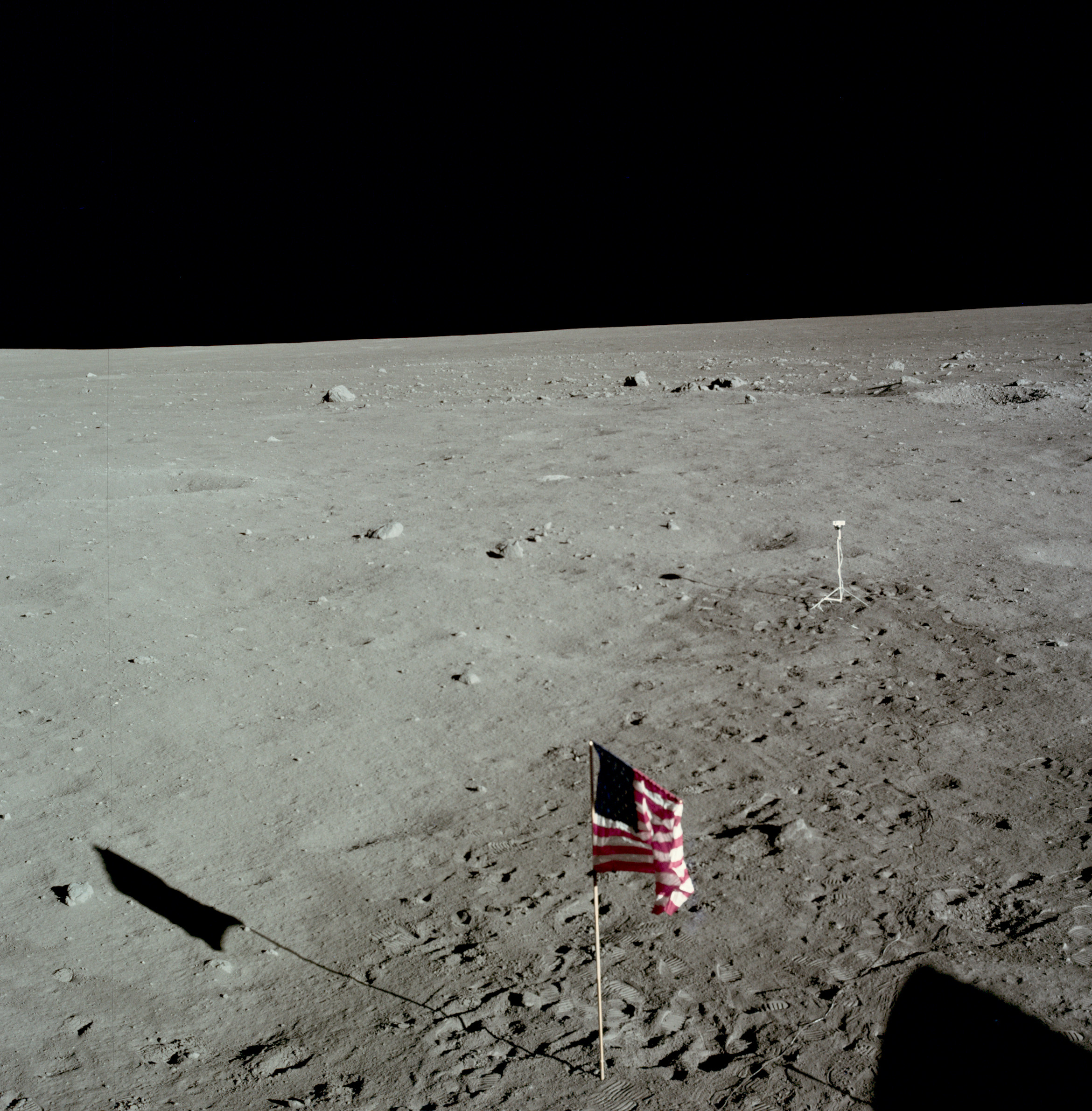 Many of the scans of photos taken during the missions were done from the original film. These scans are being done by NASA Johnson, with some post-processing by Kipp Teague. The film is scanned at 4096 x 4096 pixels per image. (See a discussion from Arizona State University about the scanning process.) Kipp reduced each digital image to approximately 2350 x 2350 pixels (equivalent to 300 dpi) and did minor adjustments of levels to ensure that (1) brightly lit areas of lunar soil were neutral grey, (2) objects with known colors (such as the CDR stripes or the LCRU blankets) looked right, and (3) information in bright or dark areas was not lost. These images from original film are indicated by the notation 'OF300' in the image description. In each case, a 900 x 900 pixel version is also provided.