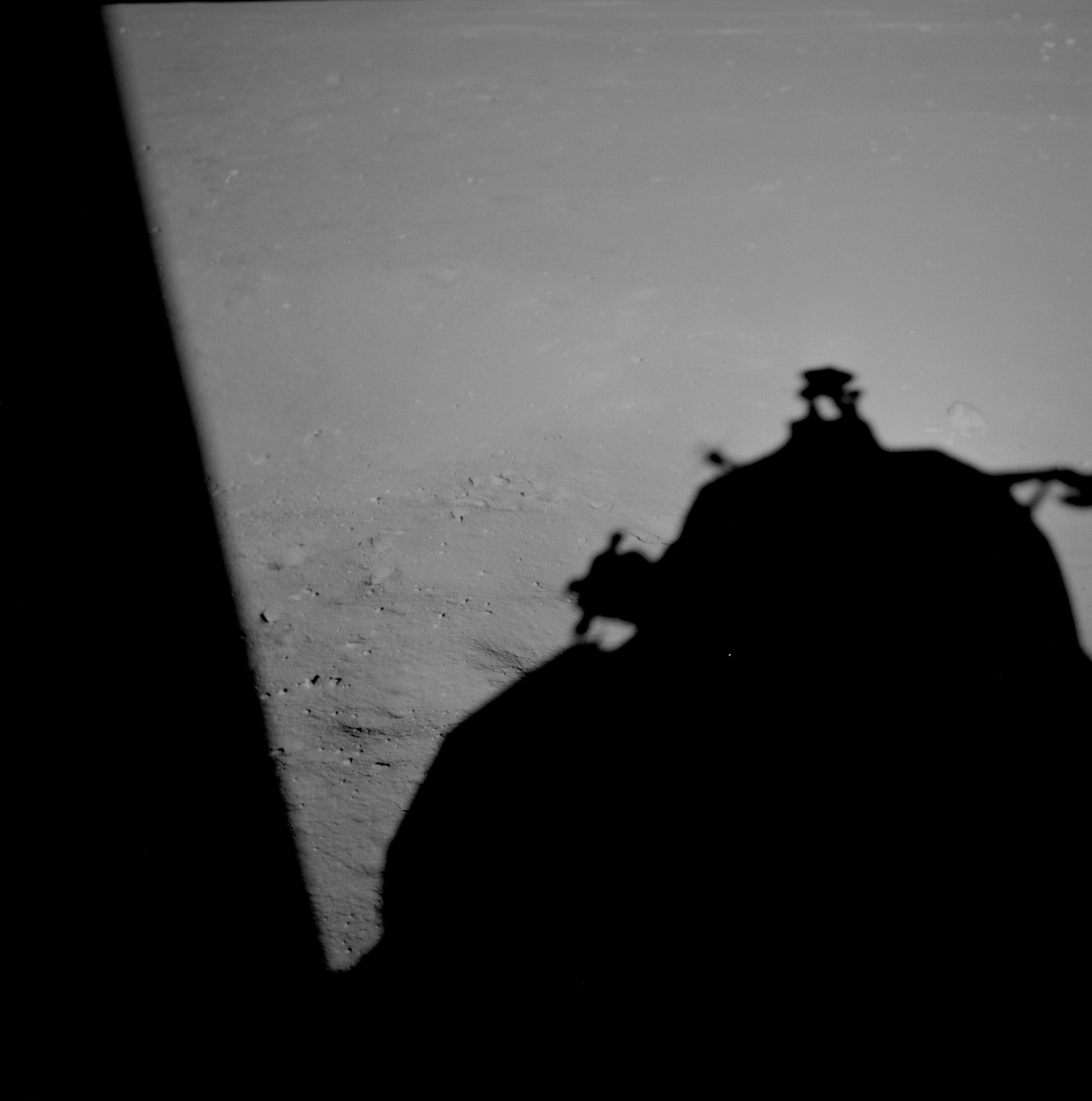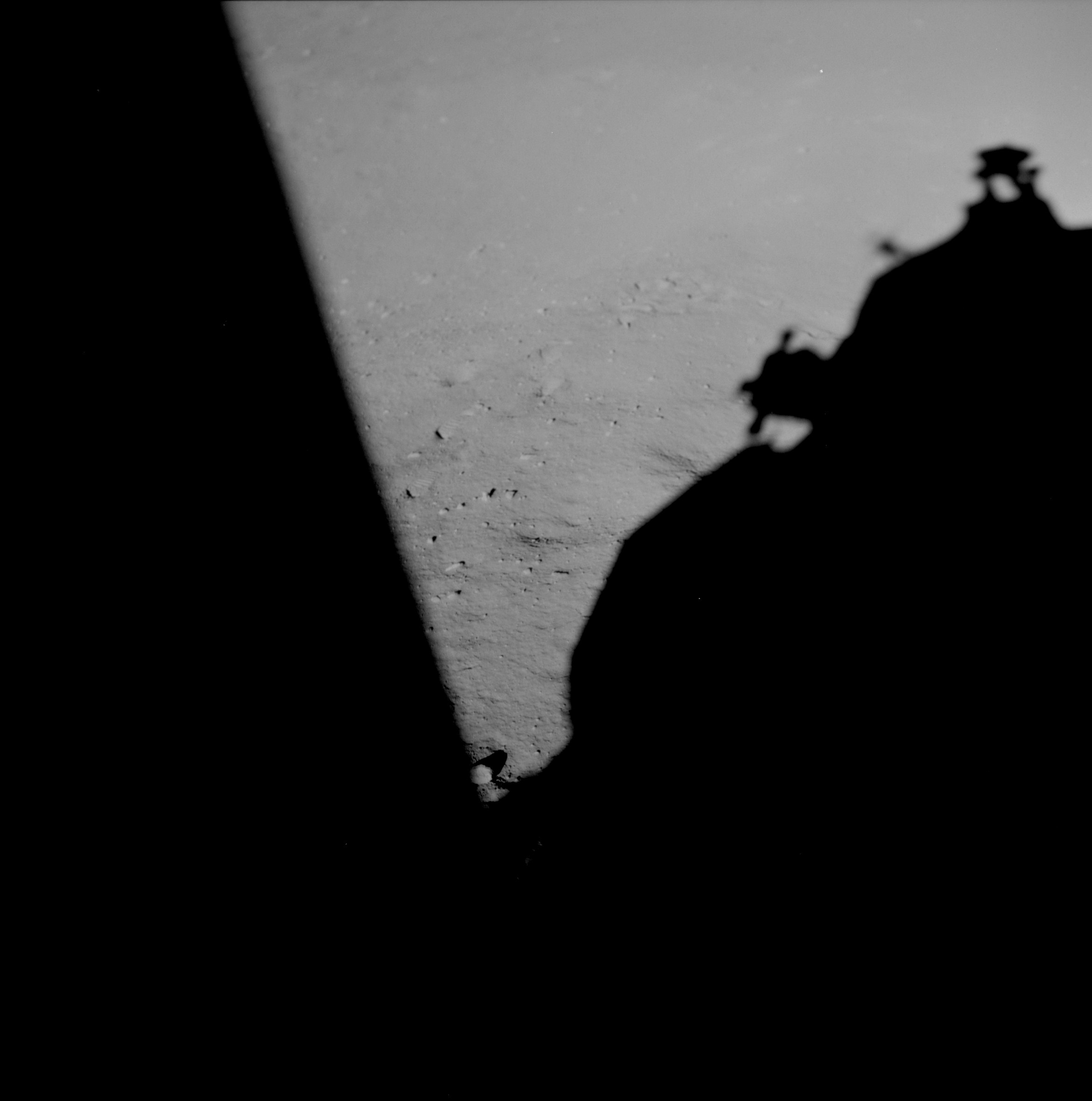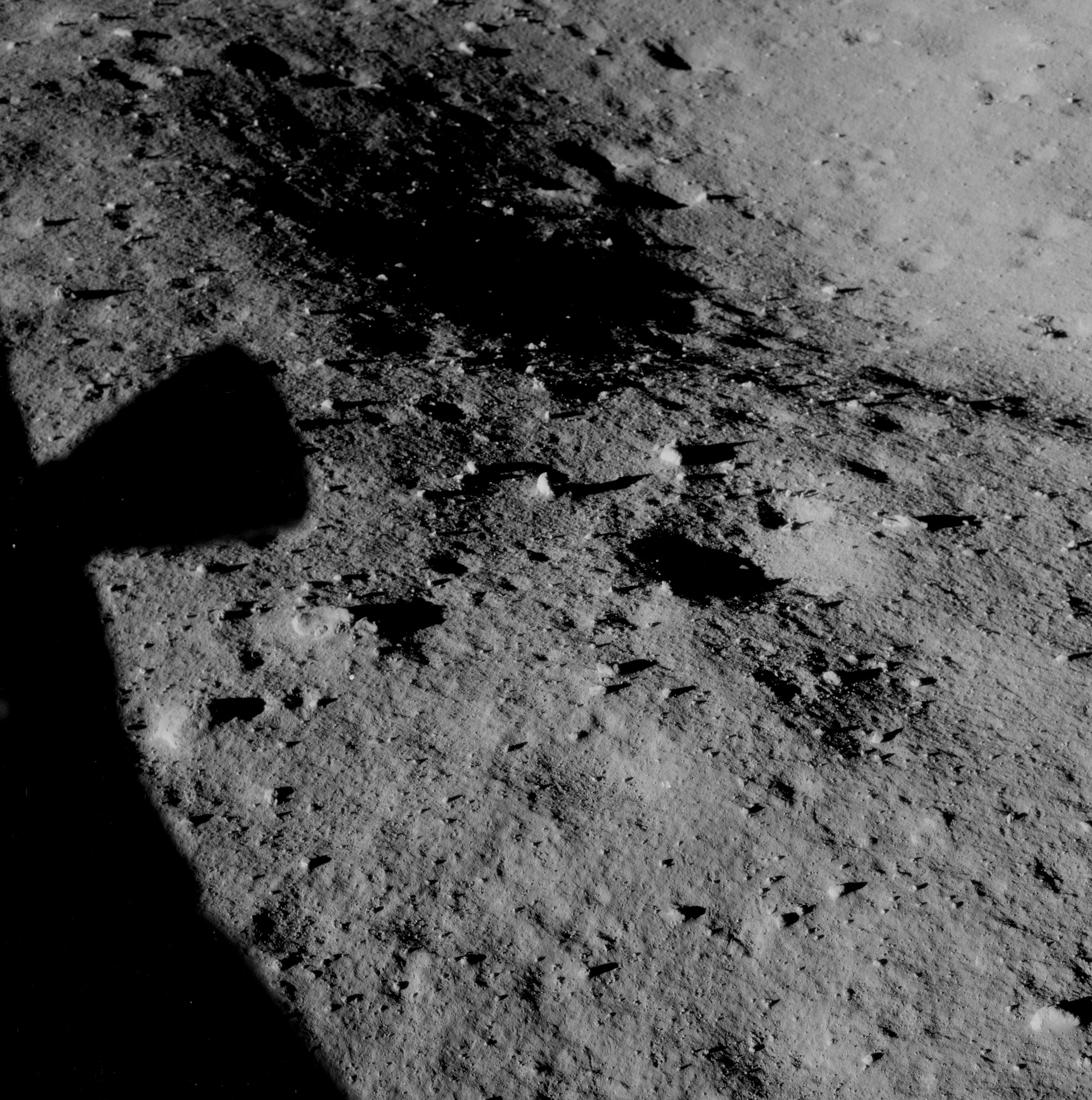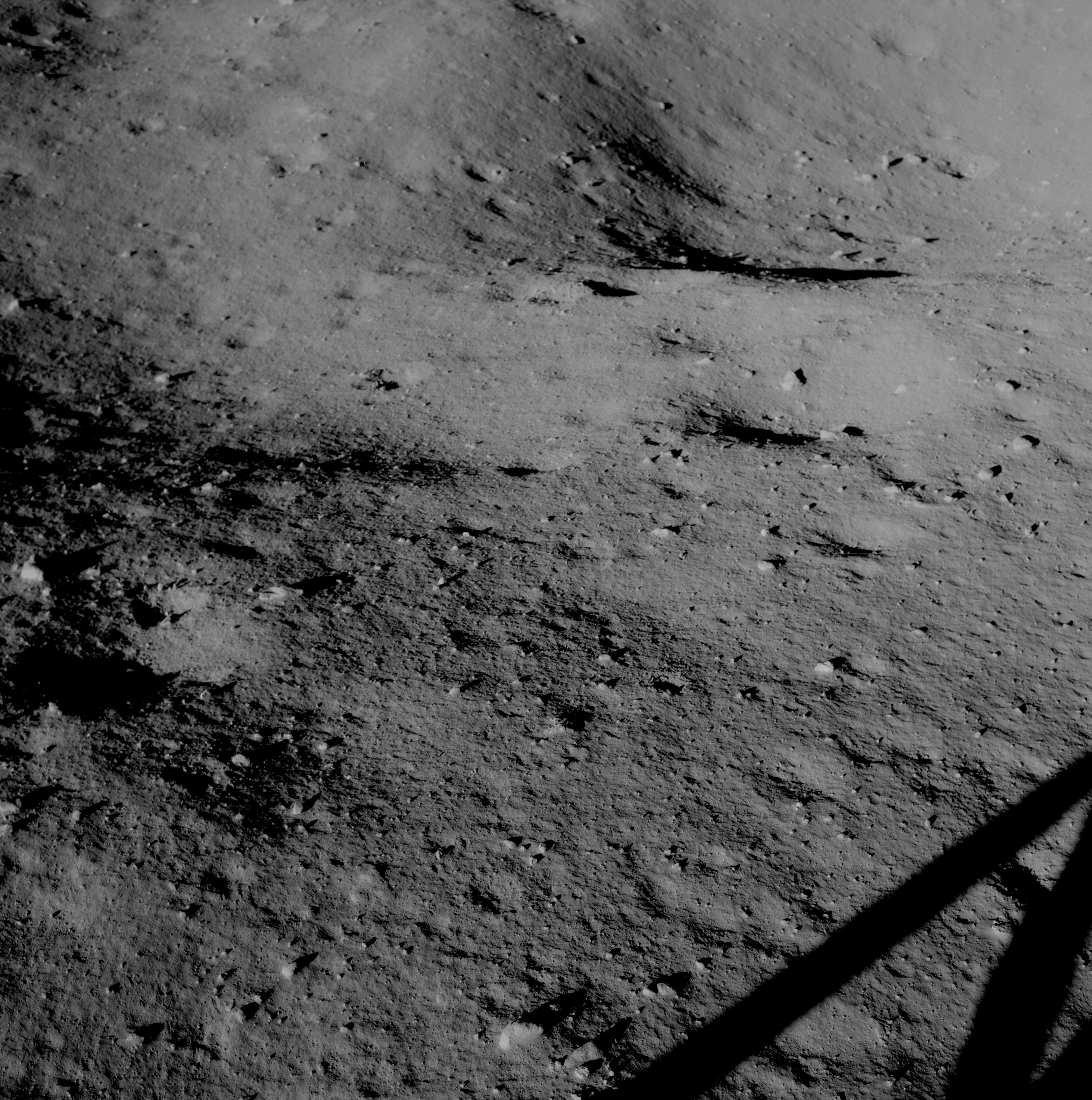 With the sun low in the east, this image is particuarly useful for identifying boulders and terrain features. The raw LROC file is M116161085R. The landing site lat/long is 0.67N/23.47E. The LRO spacecraft was at 0.44N/23.66E.05 January 2010 13:46:07 UTC; Solar El/Az 6.4/269.8; LRO altitude 41 km. (7 Mb)Deconvolved, 0.25 m/pixel (4.7 Mb TIF) and 0.5 m/pixel (5.9 Mb TIF) versions by GoneToPlaid.