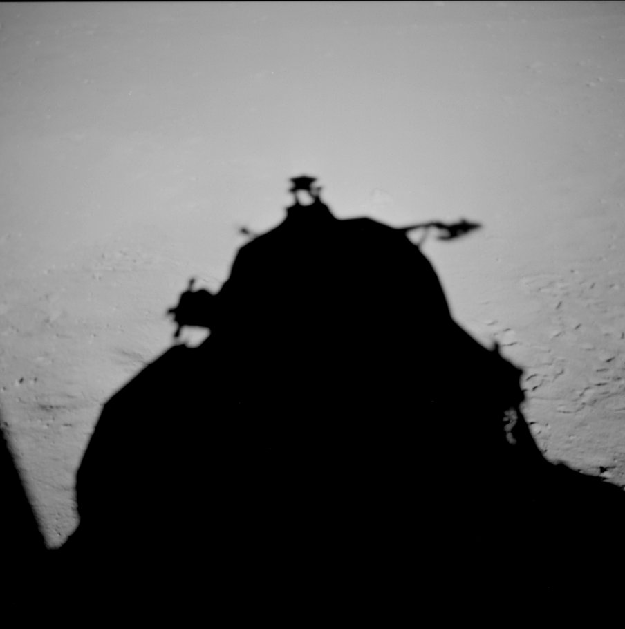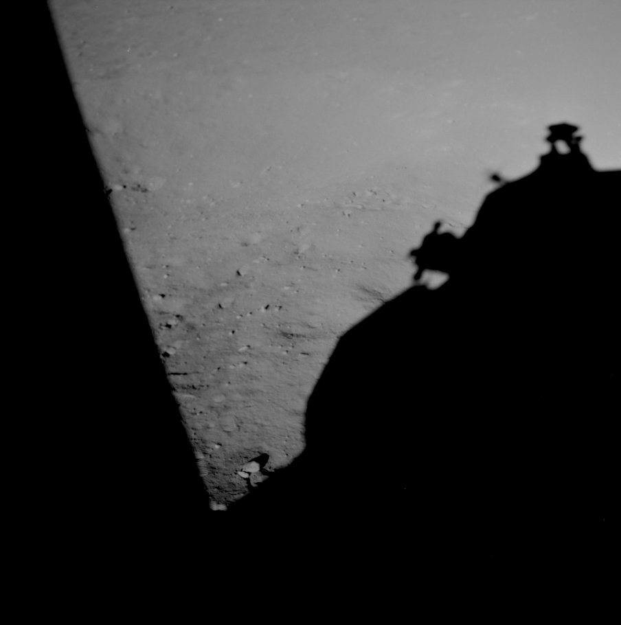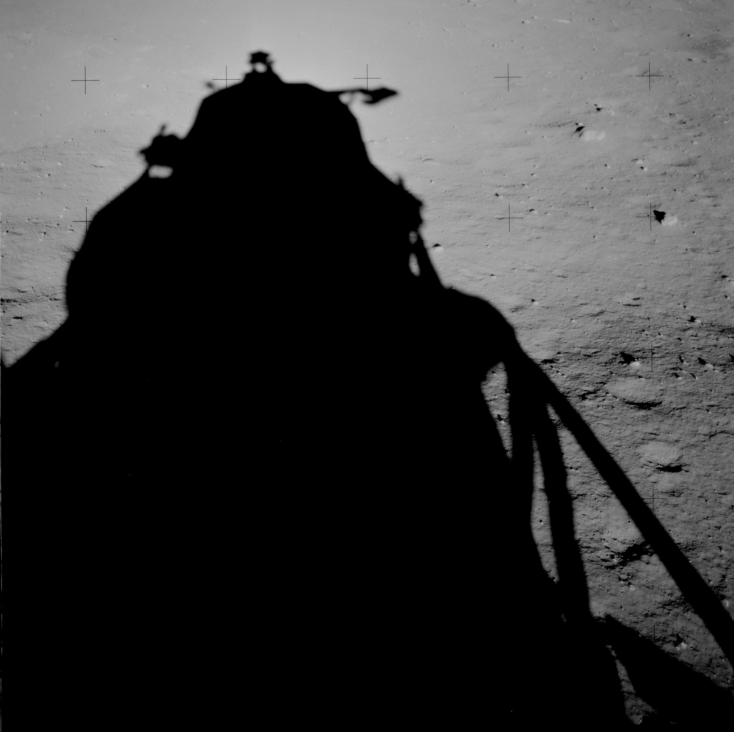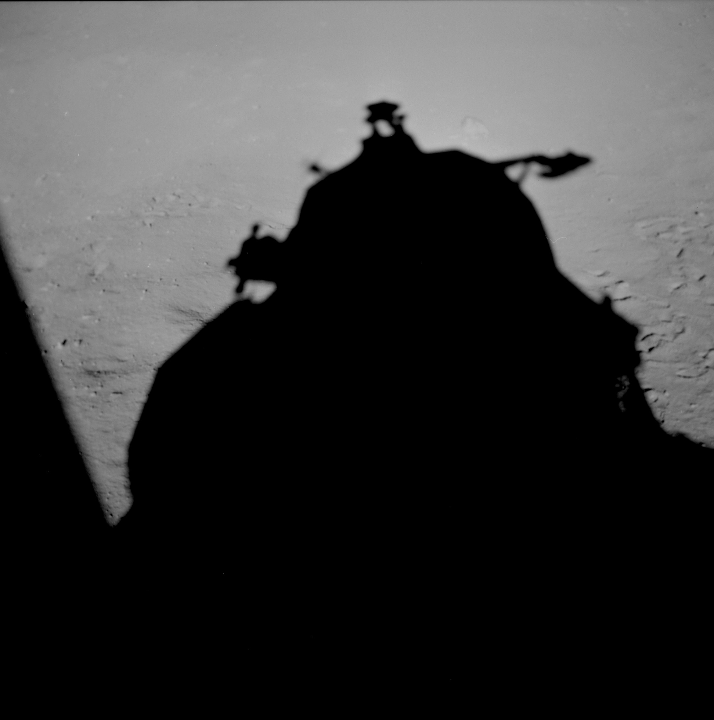 With the sun low in the east, this image is particuarly useful for identifying boulders and terrain features. The raw LROC file is M116161085R. The landing site lat/long is 0.67N/23.47E. The LRO spacecraft was at 0.44N/23.66E.05 January 2010 13:46:07 UTC; Solar El/Az 6.4/269.8; LRO altitude 41 km. (7 Mb)Deconvolved, 0.25 m/pixel (4.7 Mb TIF) and 0.5 m/pixel (5.9 Mb TIF) versions by GoneToPlaid.
