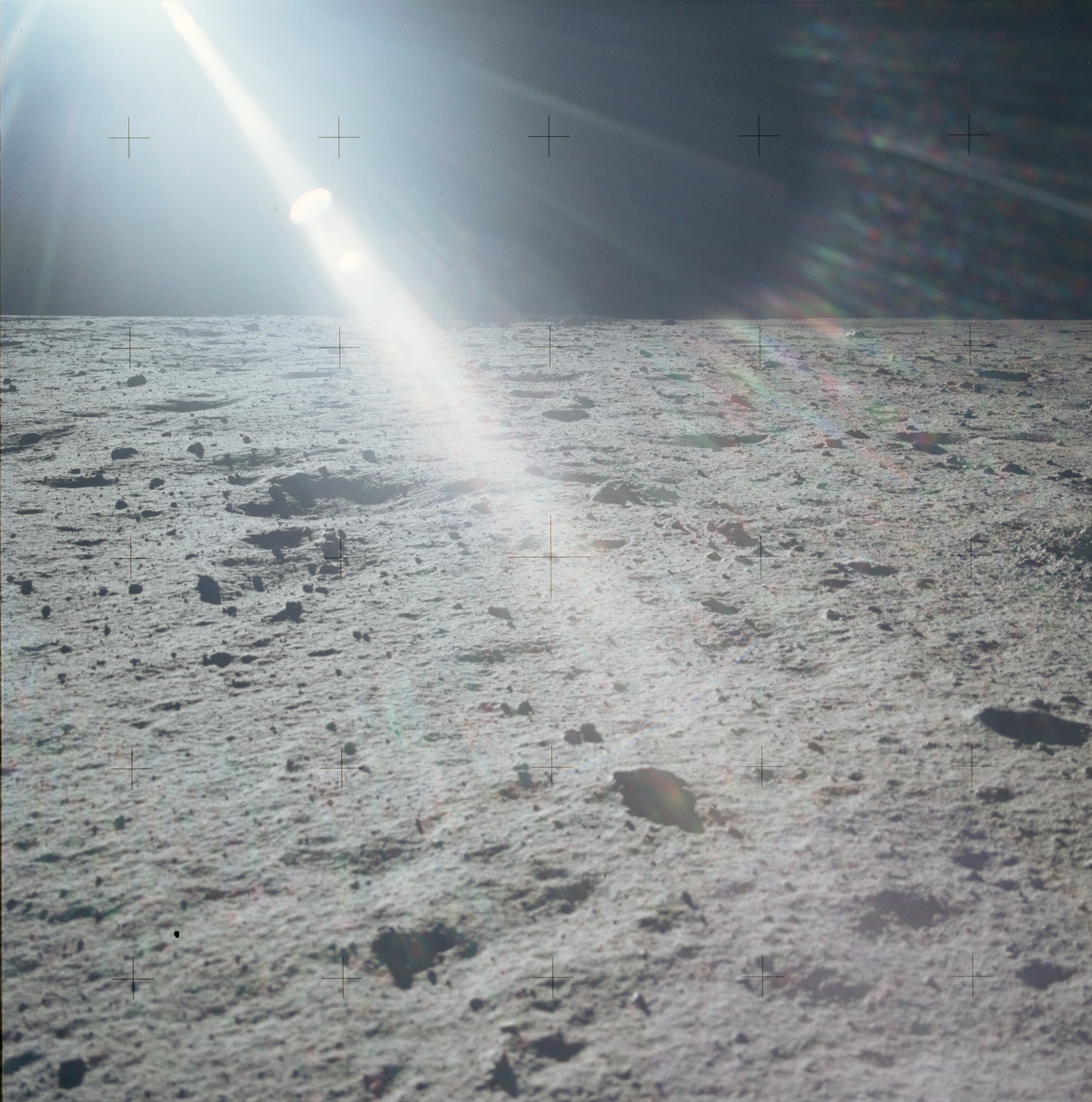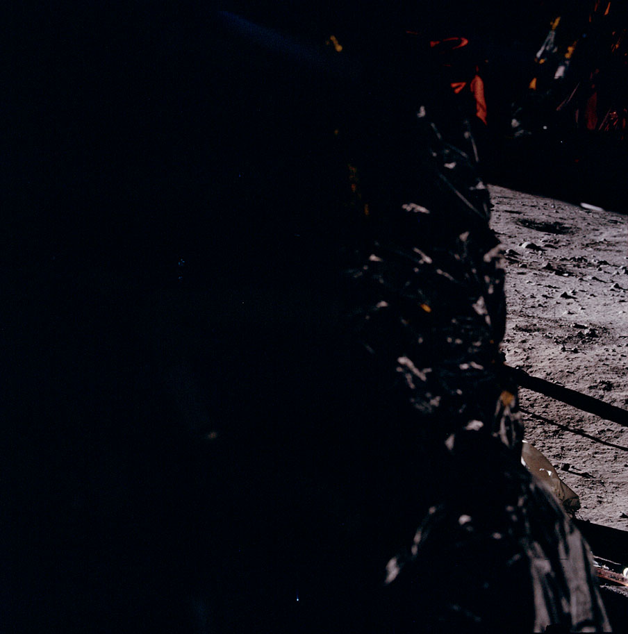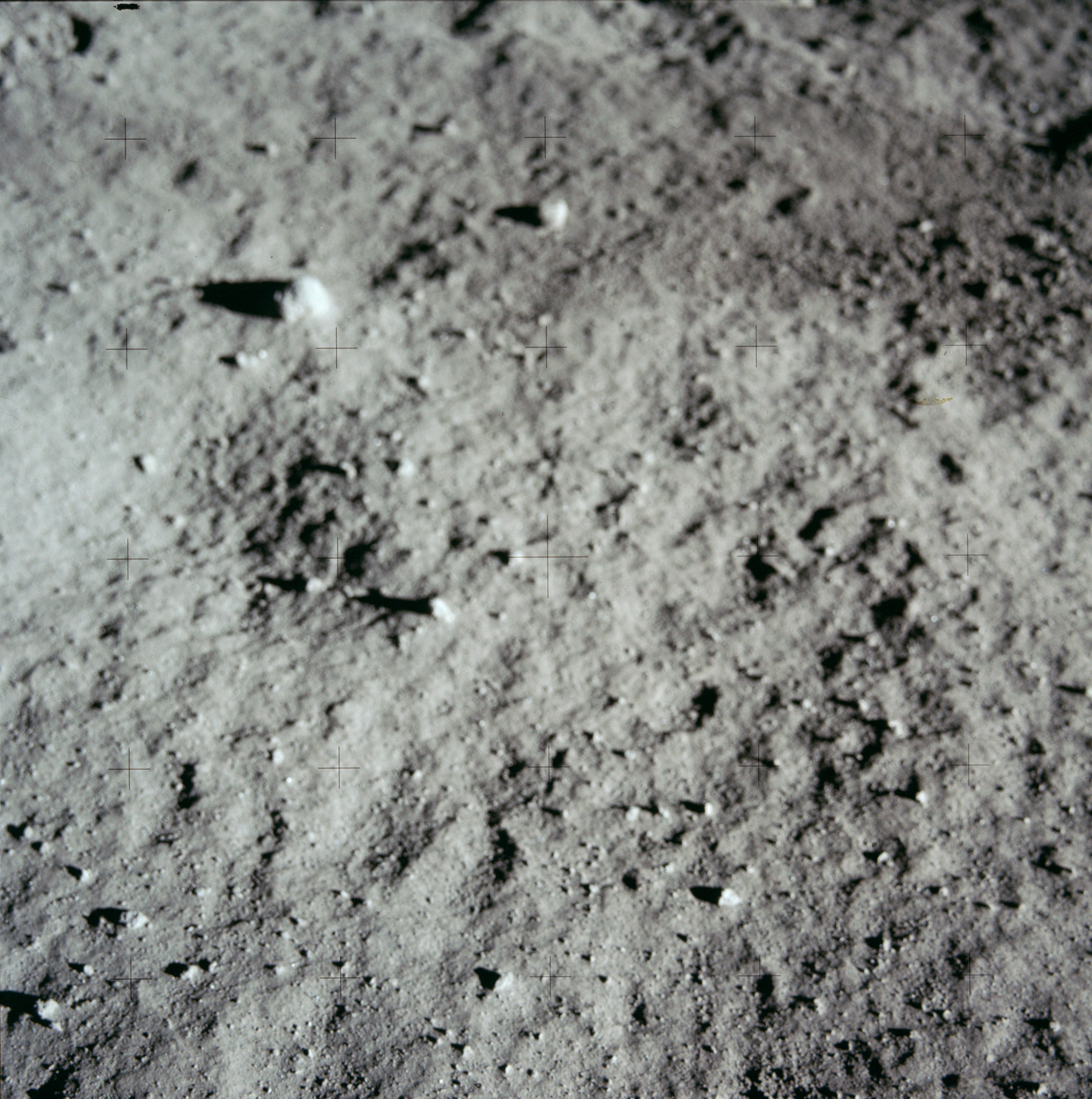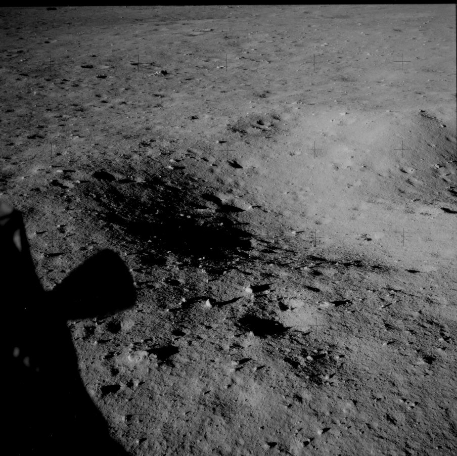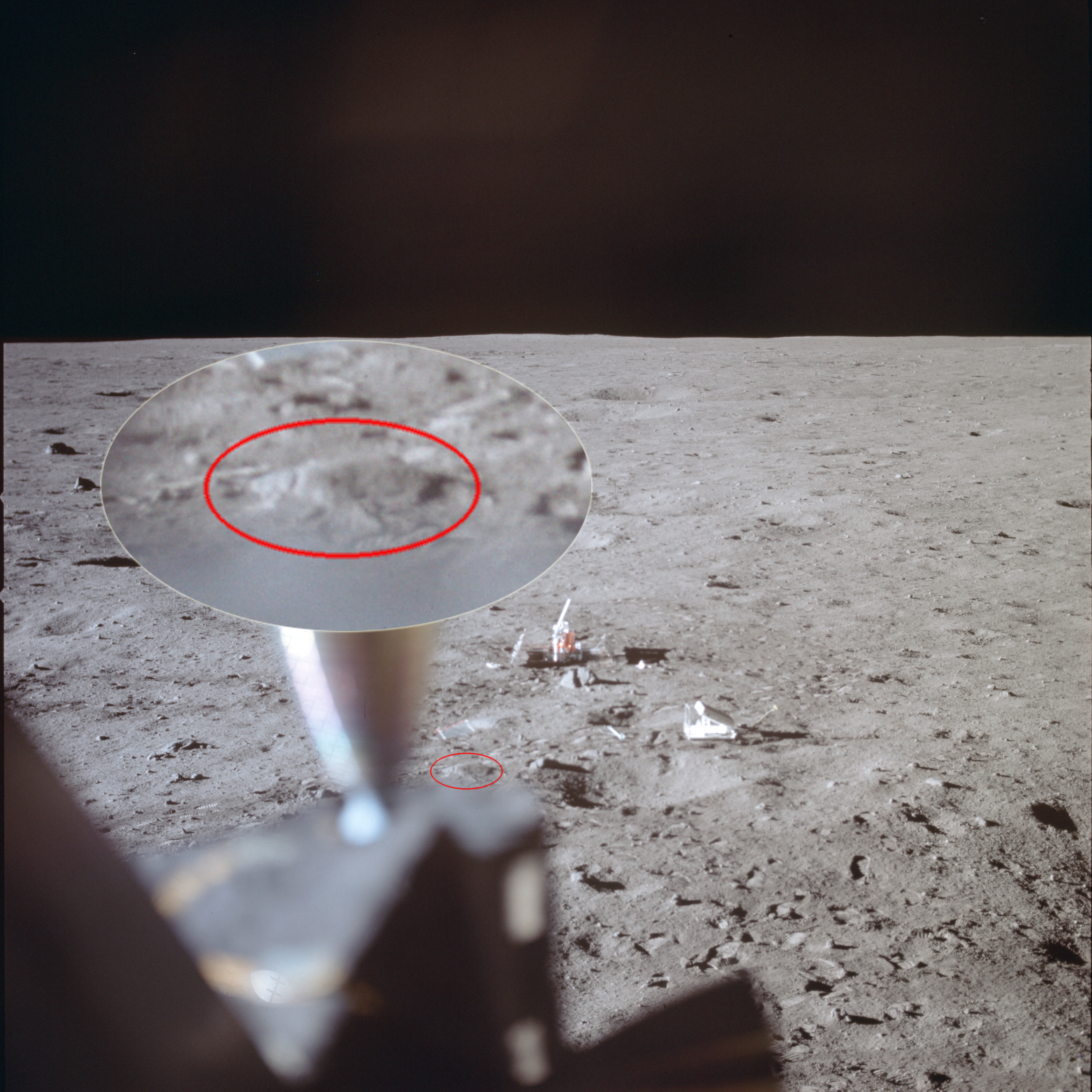 Note what appear to be soil clods at the bottom. Red-blue anaglyph created by Erwin D'Hoore.AS11-45-6705 Wiggle Stereo ( 0.2Mb )