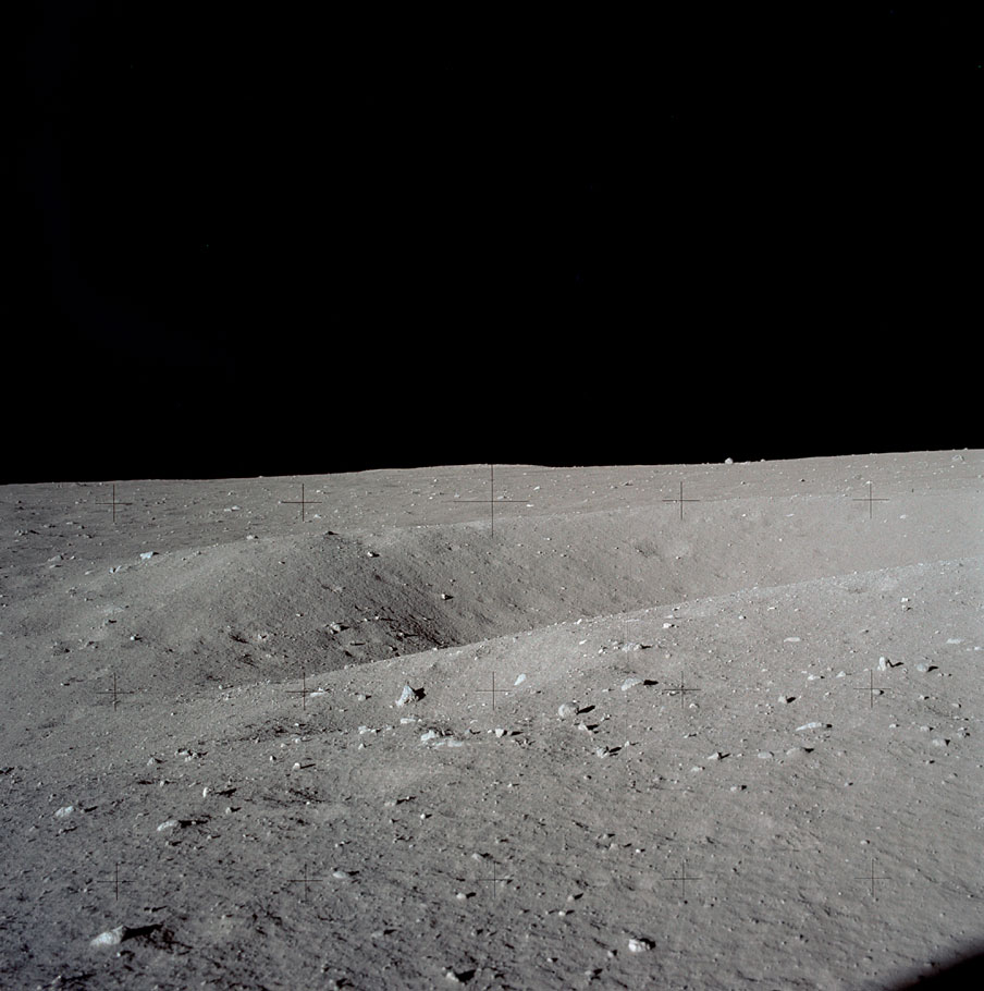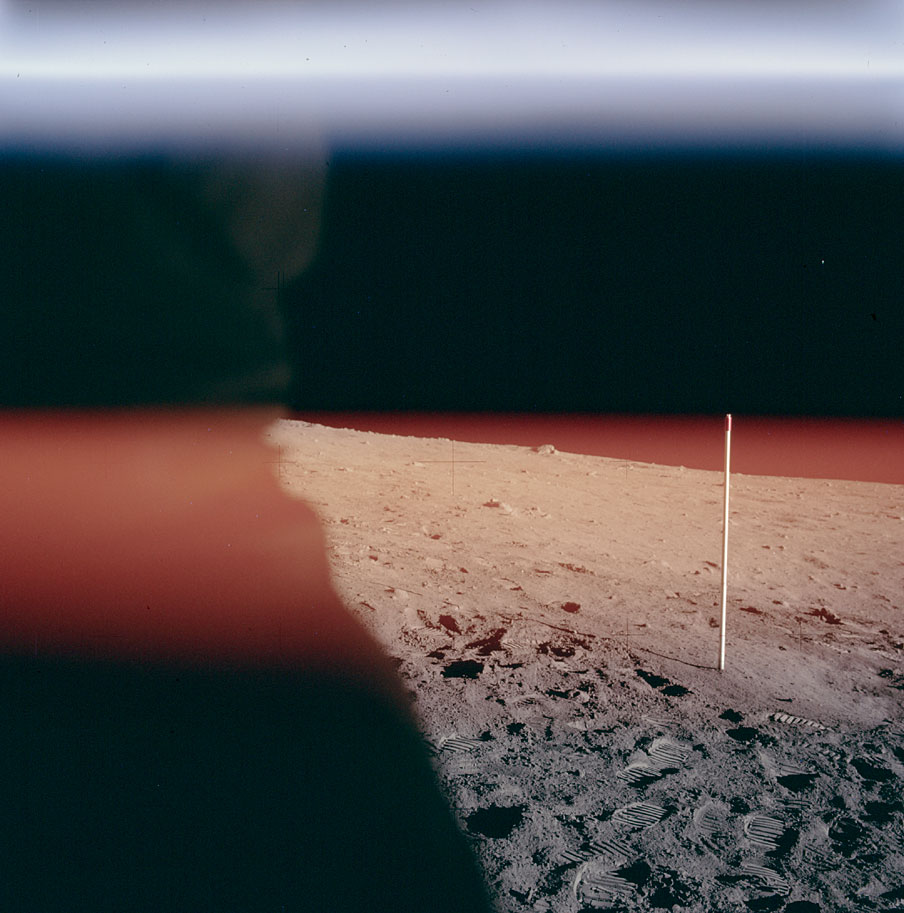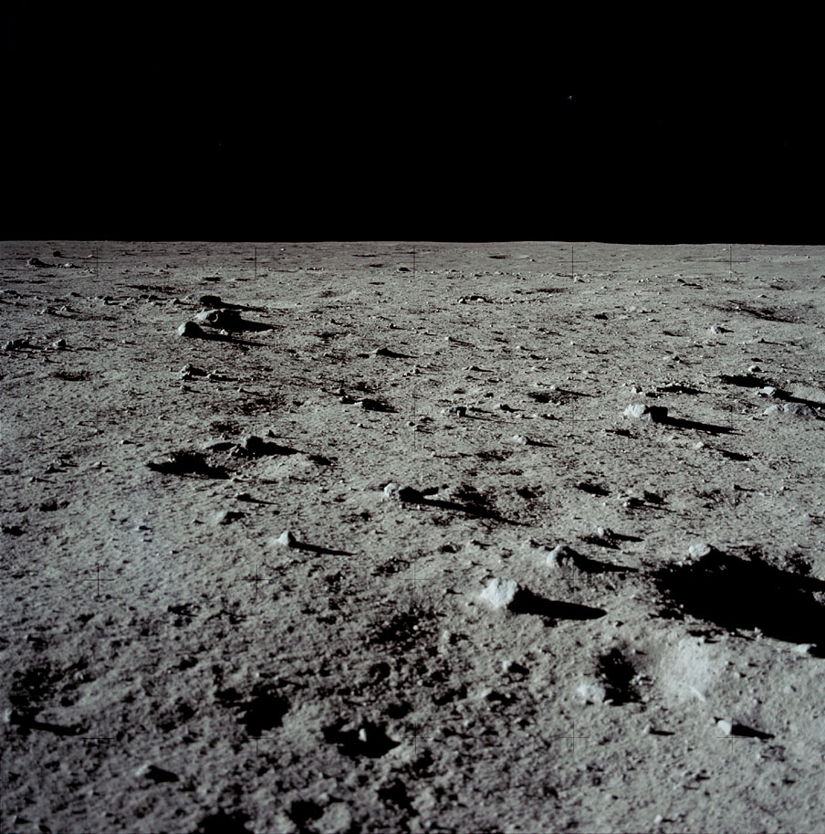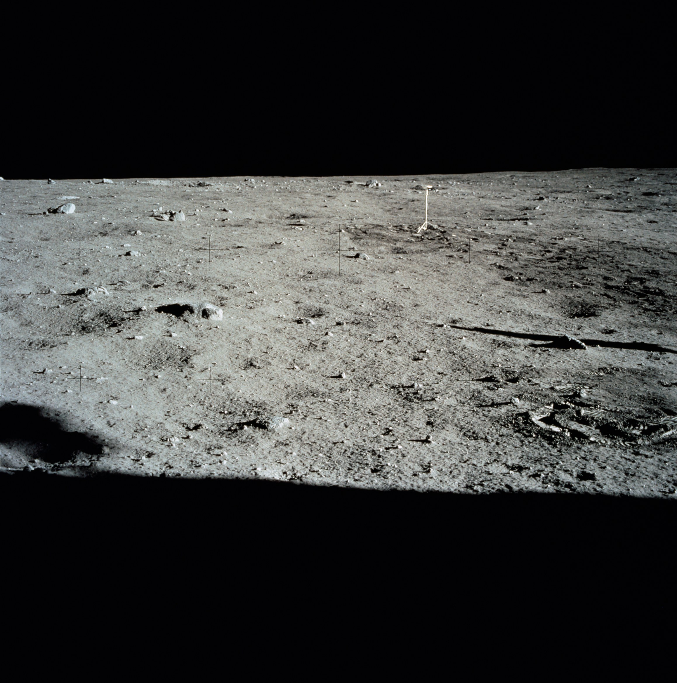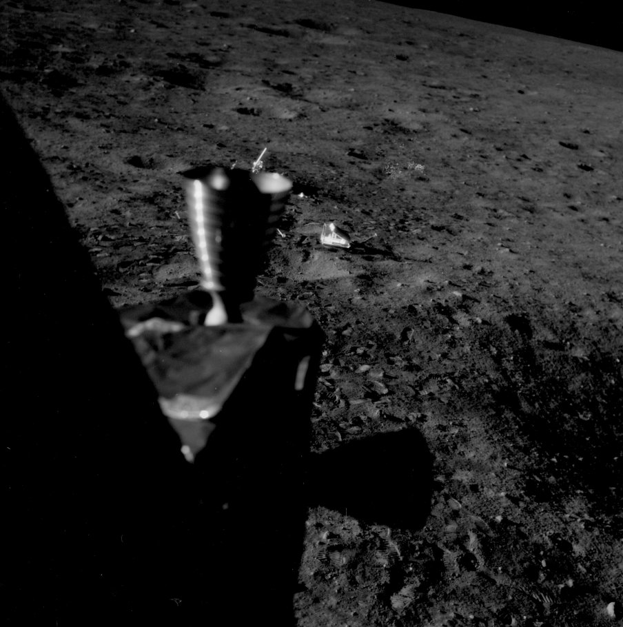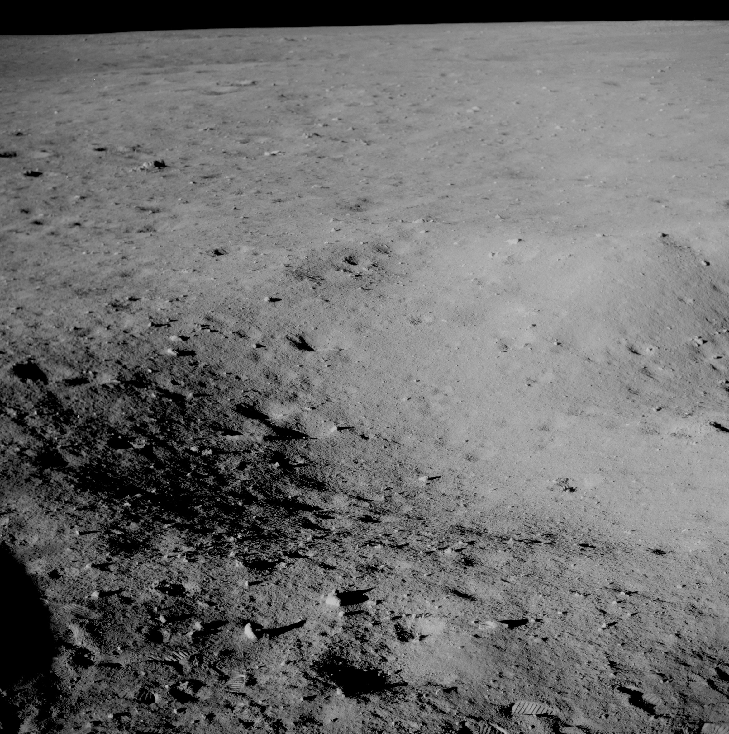 Note what appear to be soil clods at the bottom. Red-blue anaglyph created by Erwin D'Hoore.AS11-45-6705 Wiggle Stereo ( 0.2Mb )