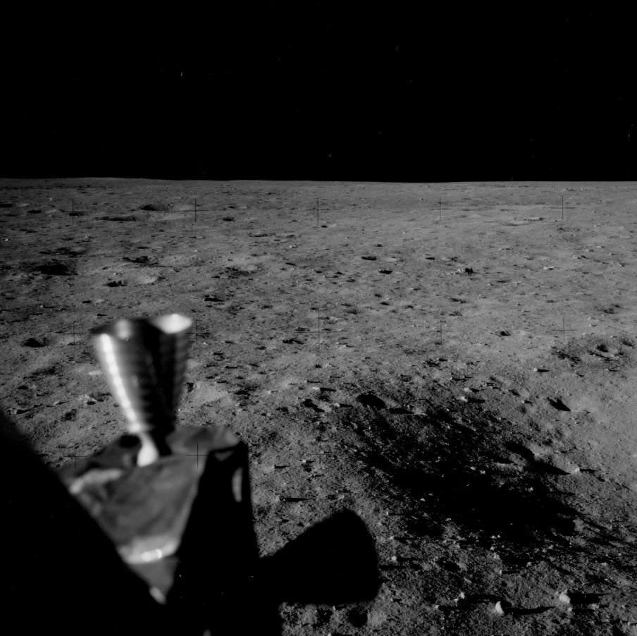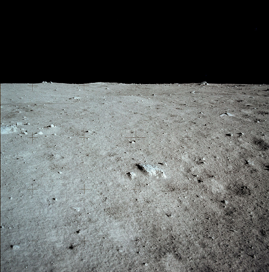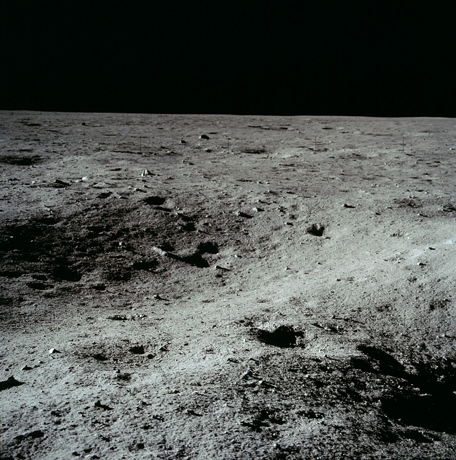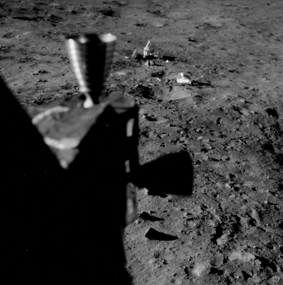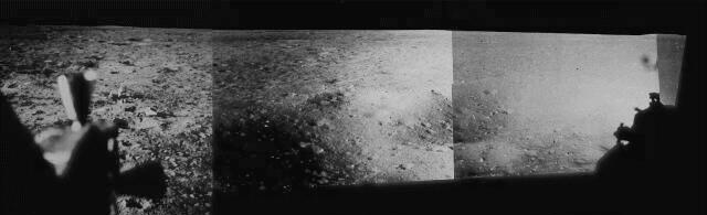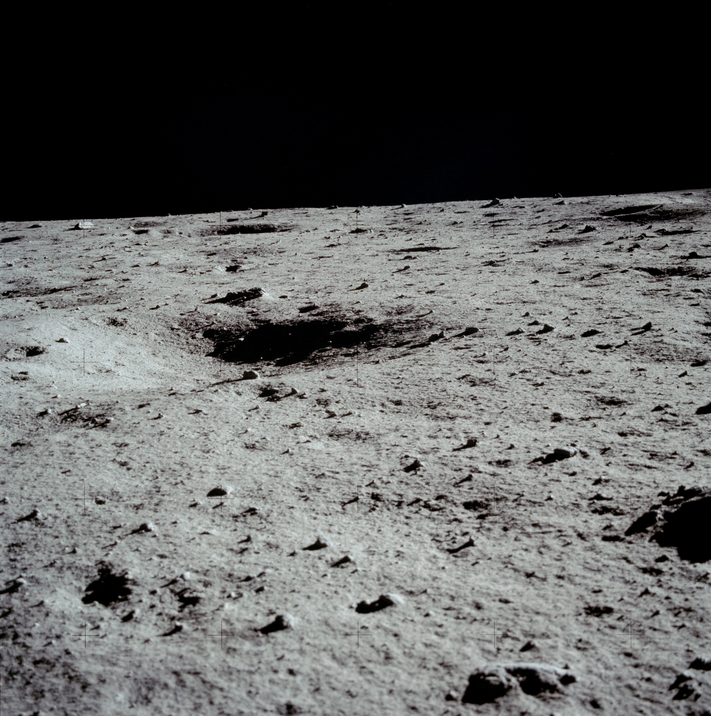 Note what appear to be soil clods at the bottom. Red-blue anaglyph created by Erwin D'Hoore.AS11-45-6705 Wiggle Stereo ( 0.2Mb )
