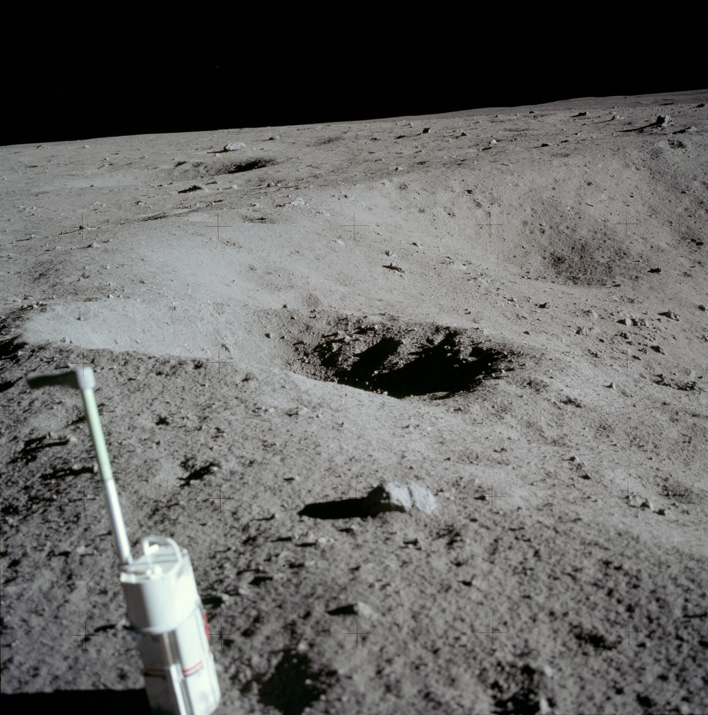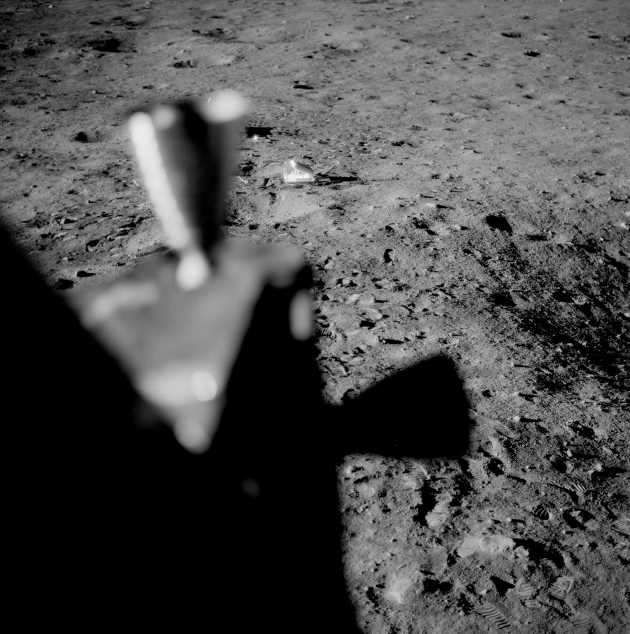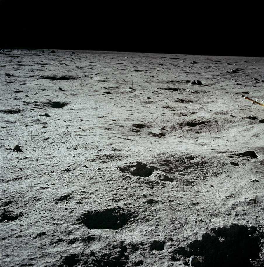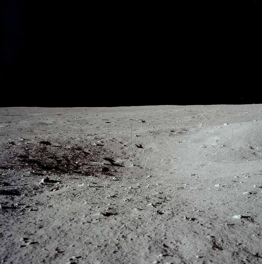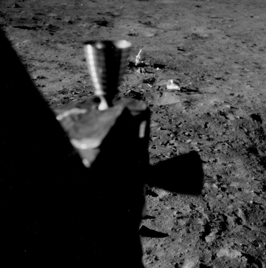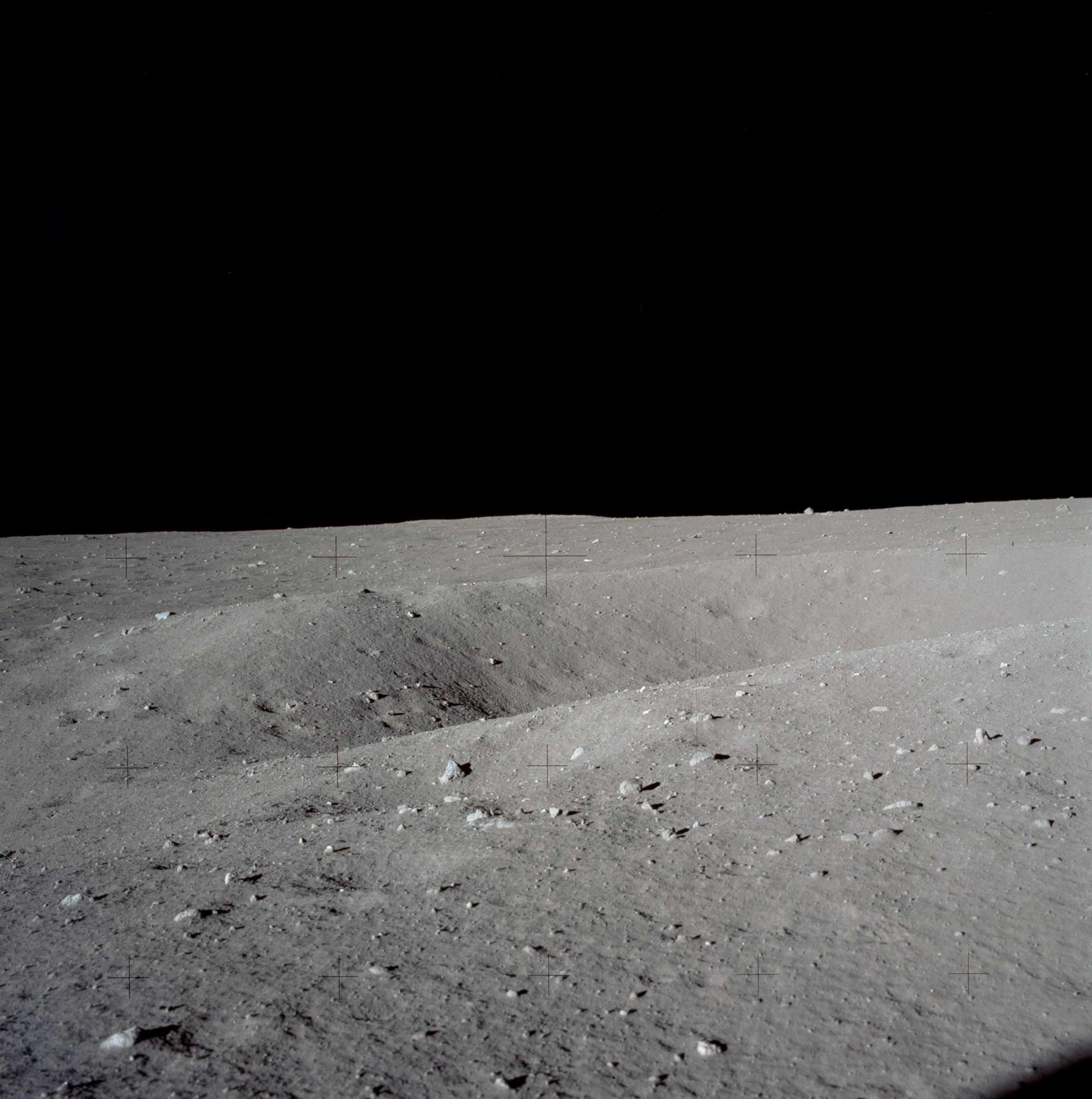 Note what appear to be soil clods at the bottom. Red-blue anaglyph created by Erwin D'Hoore.AS11-45-6705 Wiggle Stereo ( 0.2Mb )