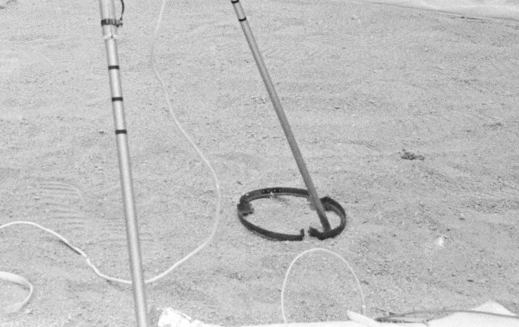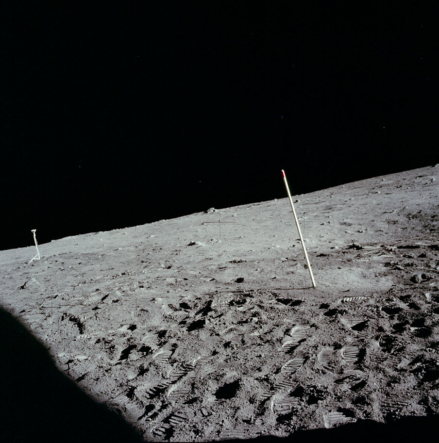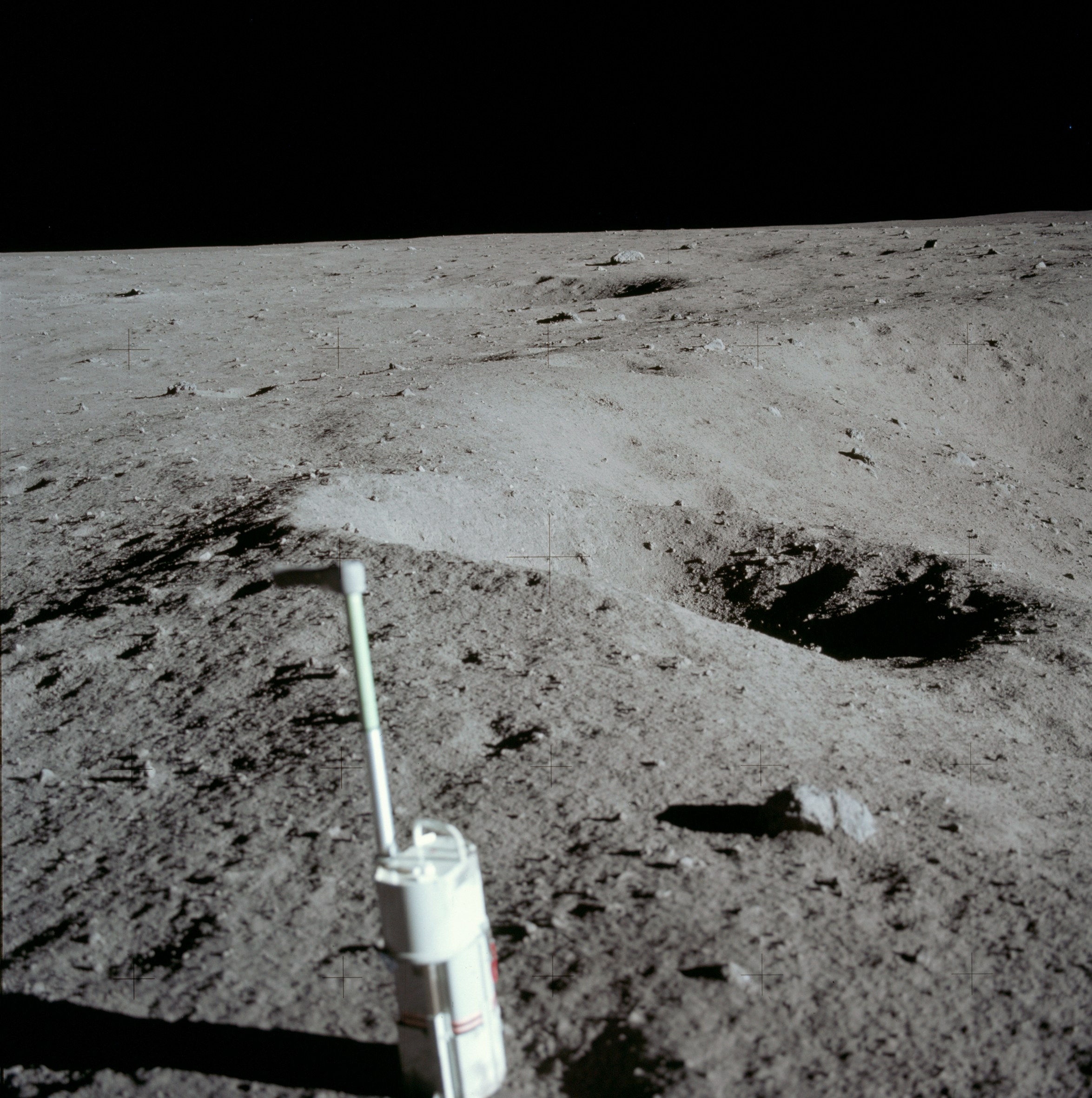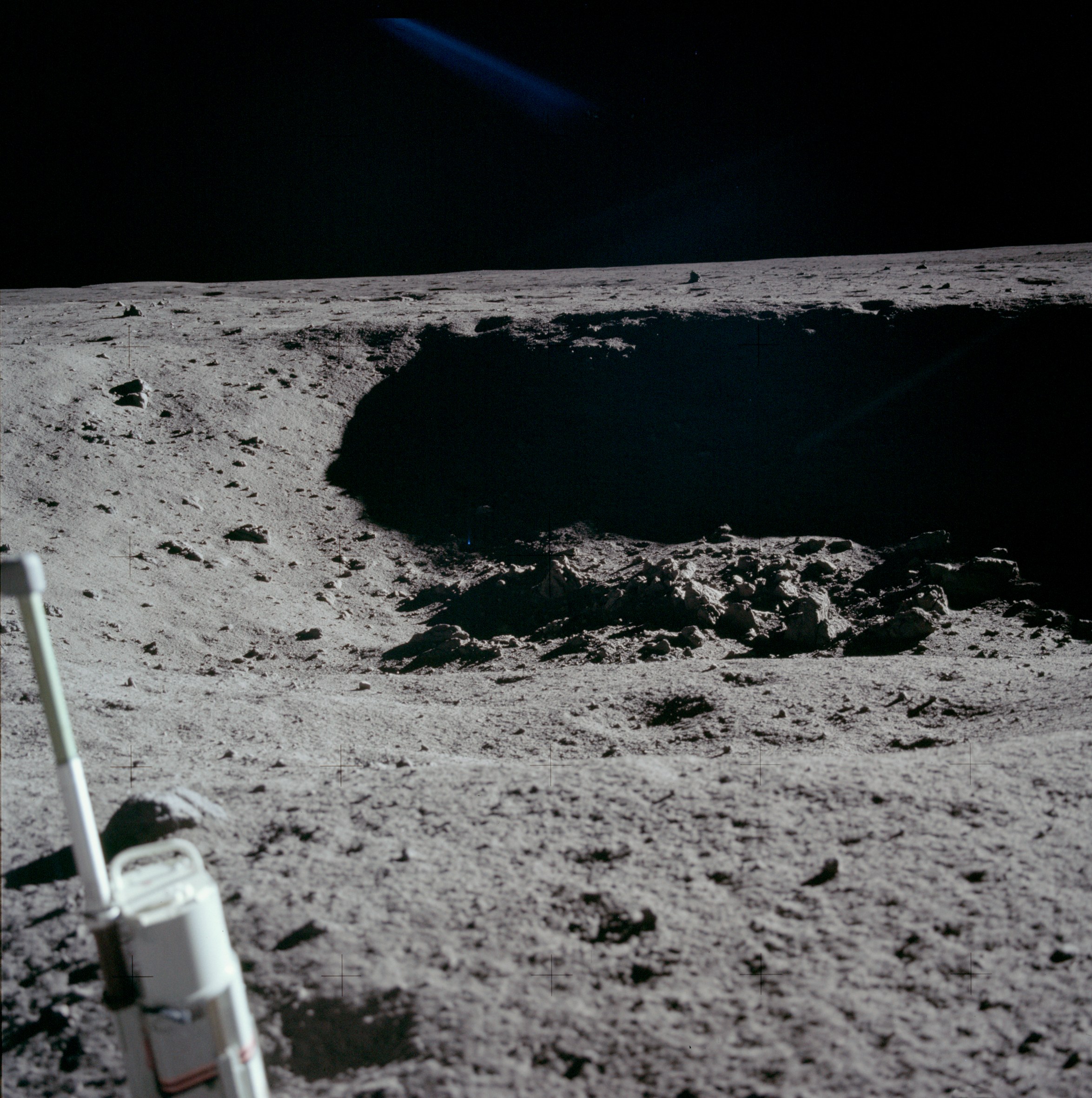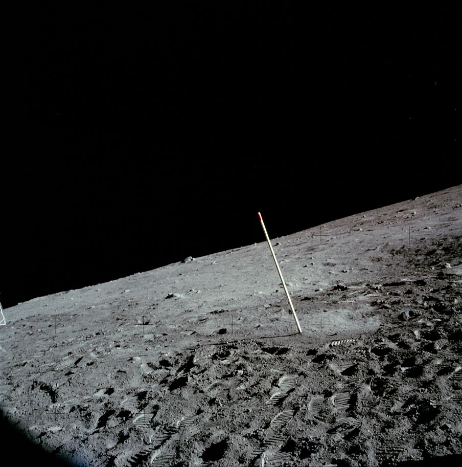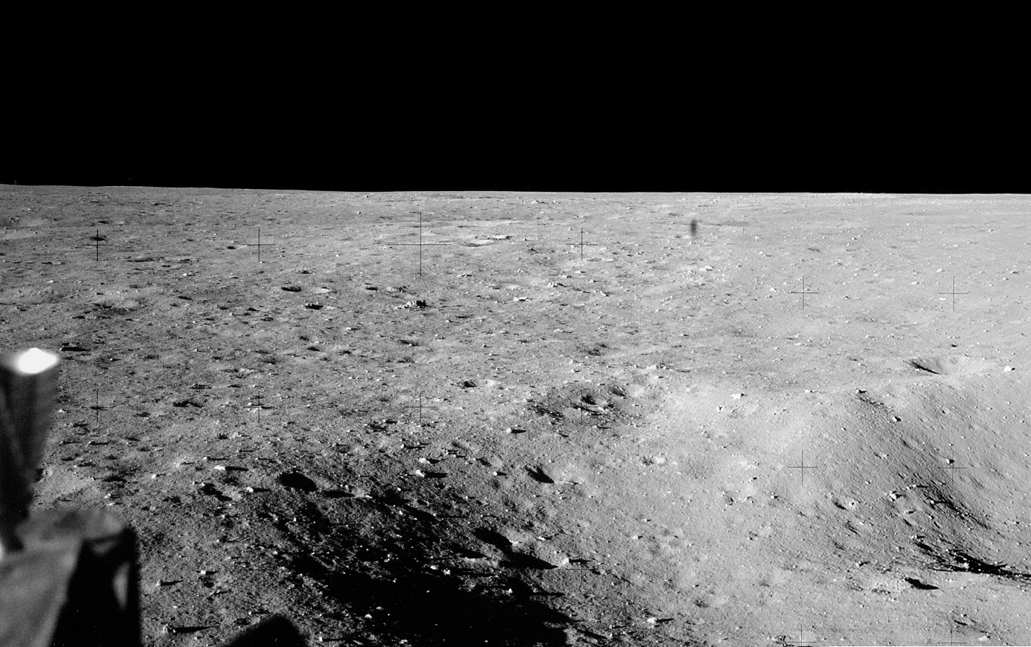 Note what appear to be soil clods at the bottom. Red-blue anaglyph created by Erwin D'Hoore.AS11-45-6705 Wiggle Stereo ( 0.2Mb )