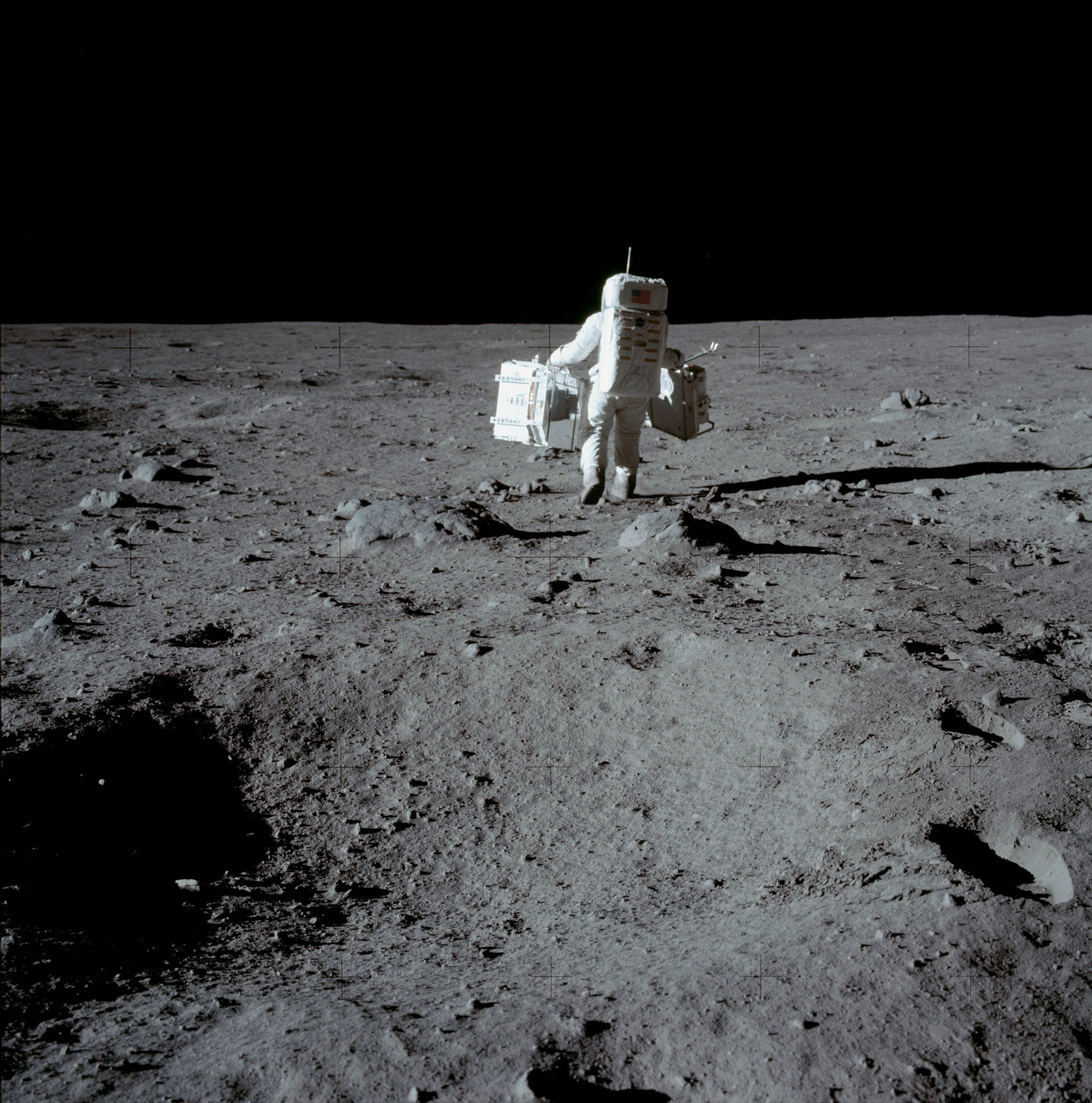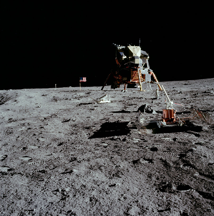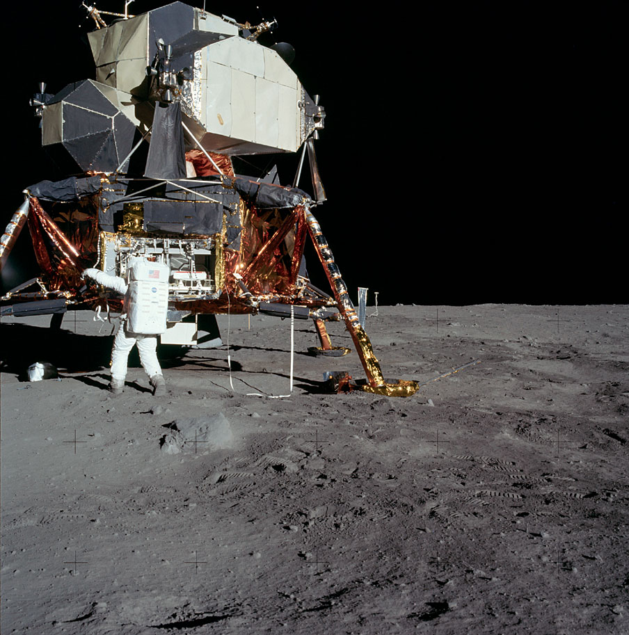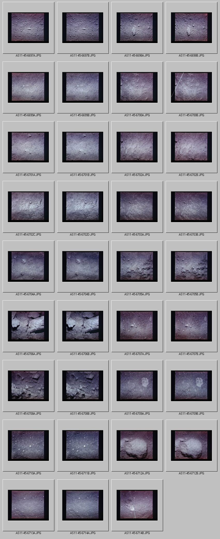This Apollo 11 Image Library contains all of the pictures taken on the lunar surface by the astronauts together with pictures from pre-flight training and pictures of equipment and the flight hardware. High-resolution version of all the lunar surface images are included. A source for both thumbnail and low -resolution versions of the lunar surface images is a website compiled by Paul Spudis and colleagues at the Lunar and Planetary Institute in Houston.