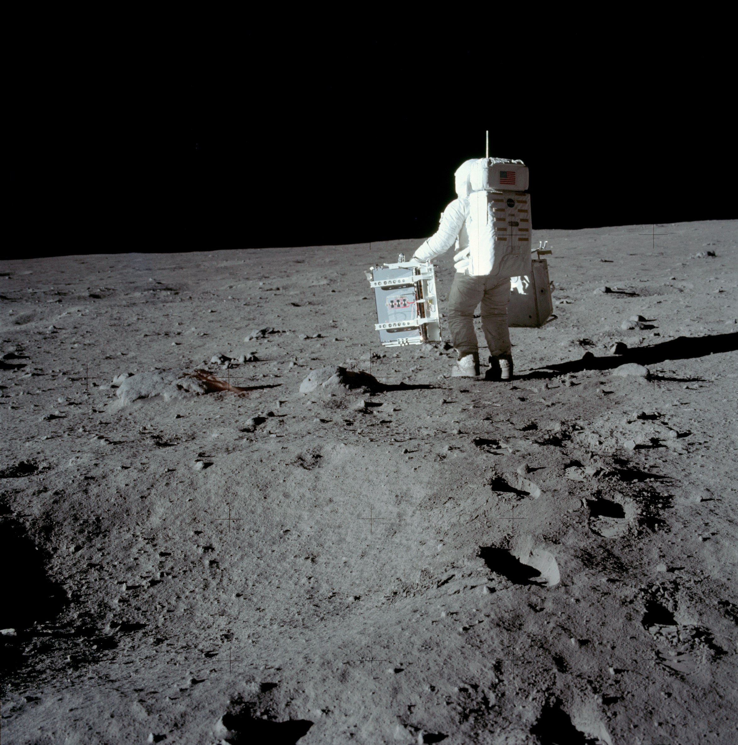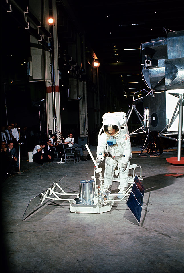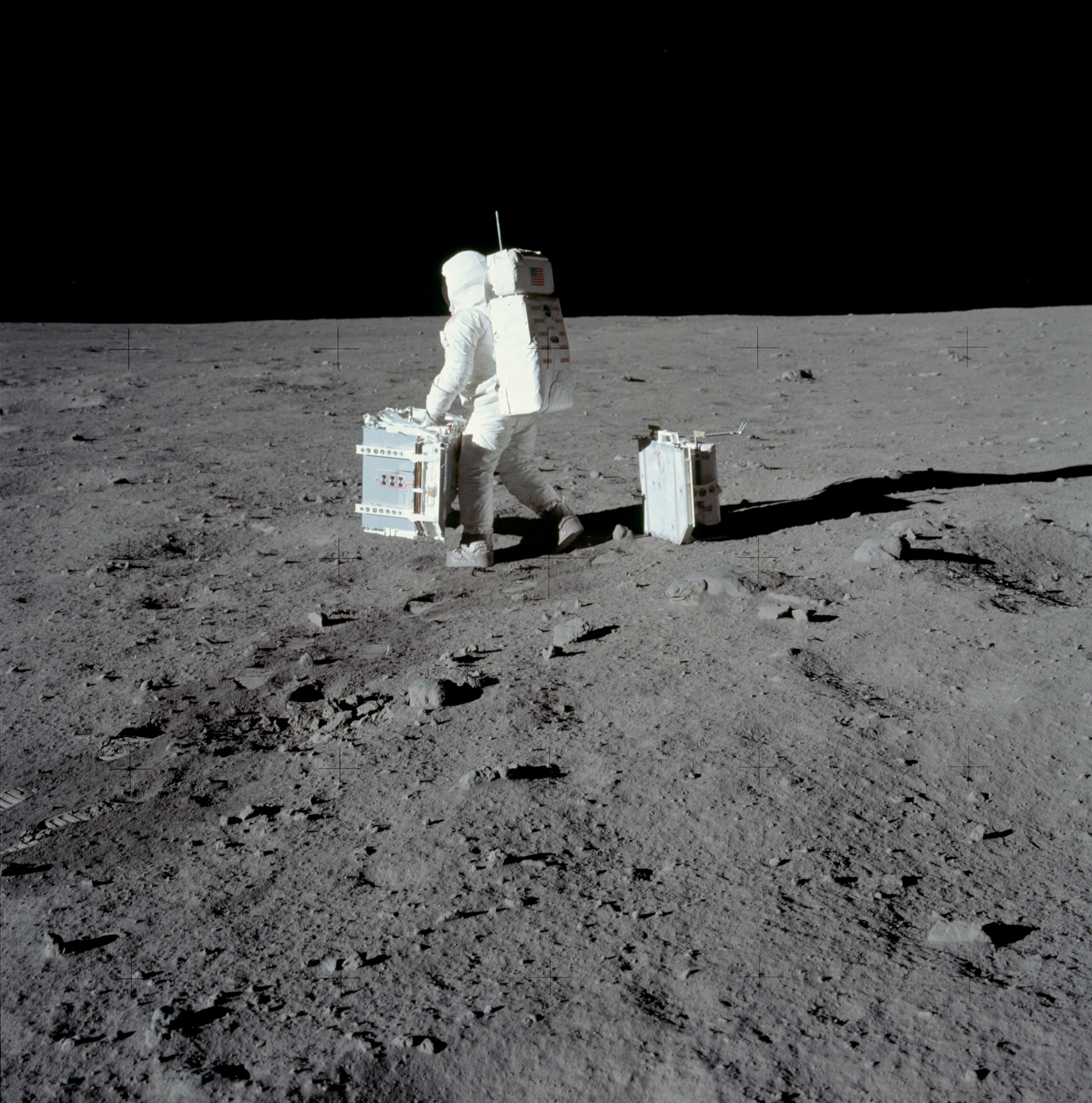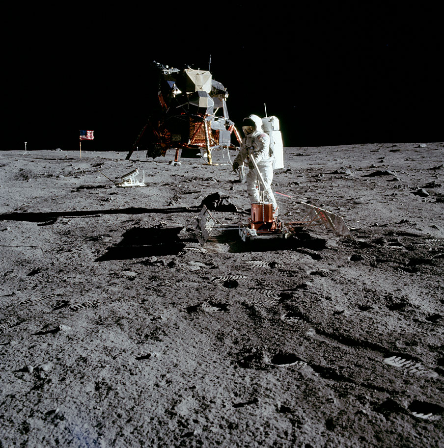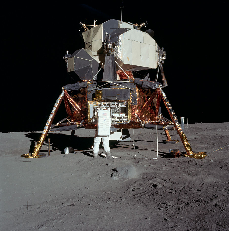 This Apollo 11 Image Library contains all of the pictures taken on the lunar surface by the astronauts together with pictures from pre-flight training and pictures of equipment and the flight hardware. High-resolution version of all the lunar surface images are included. A source for both thumbnail and low -resolution versions of the lunar surface images is a website compiled by Paul Spudis and colleagues at the Lunar and Planetary Institute in Houston.
