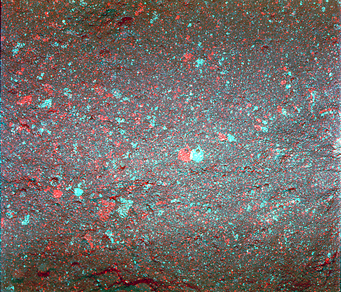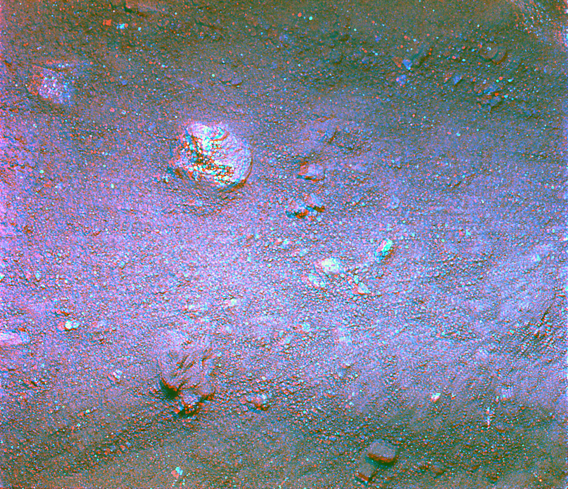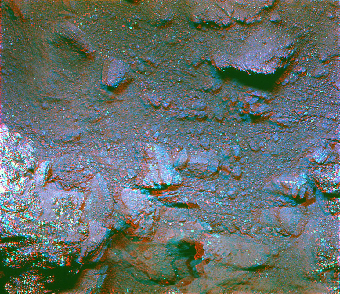 Possibly another spot on the same piece of basalt. Red-blue anaglyph created by Erwin D'Hoore.AS11-45-6712 RB anaglyph ( 2.1Mb )