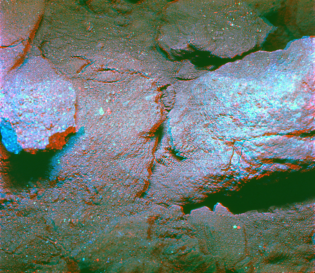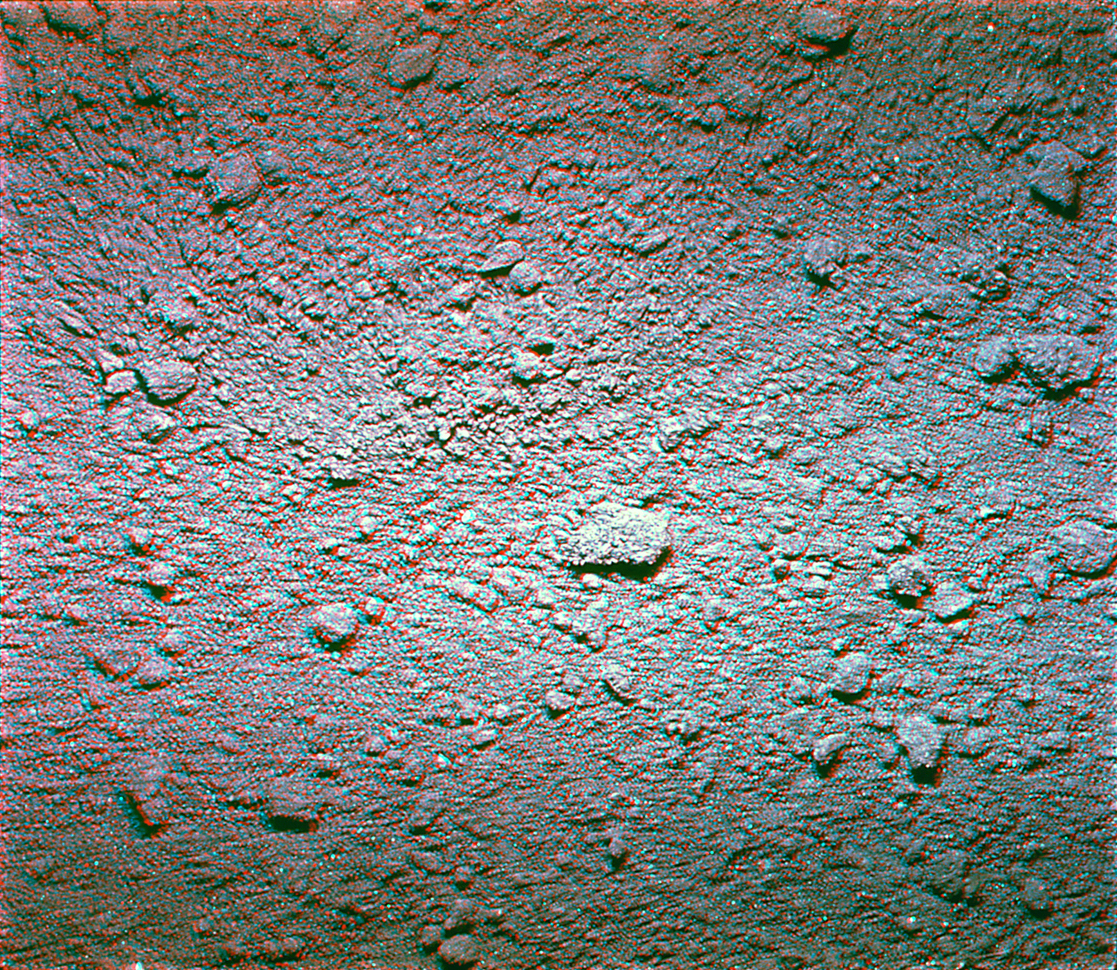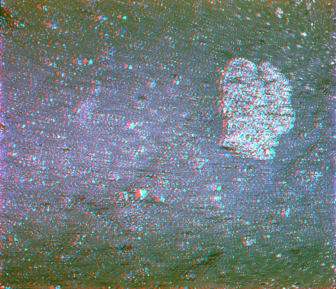 Possibly another spot on the same piece of basalt. Red-blue anaglyph created by Erwin D'Hoore.AS11-45-6712 RB anaglyph ( 2.1Mb )