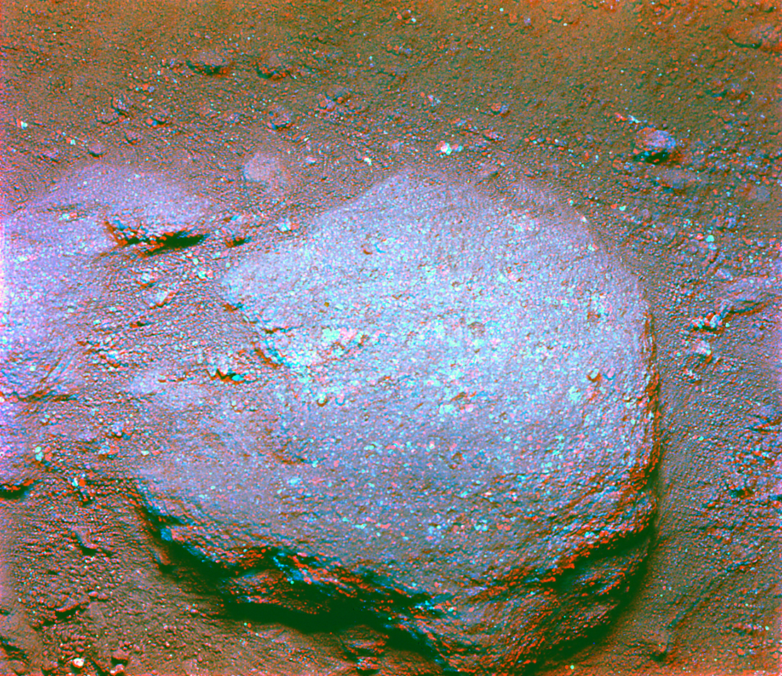 Rounded rock about 2 by 2.5 inches. Red-blue anaglyph created by Erwin D'Hoore.AS11-45-6712 Wiggle Stereo ( 0.2Mb )