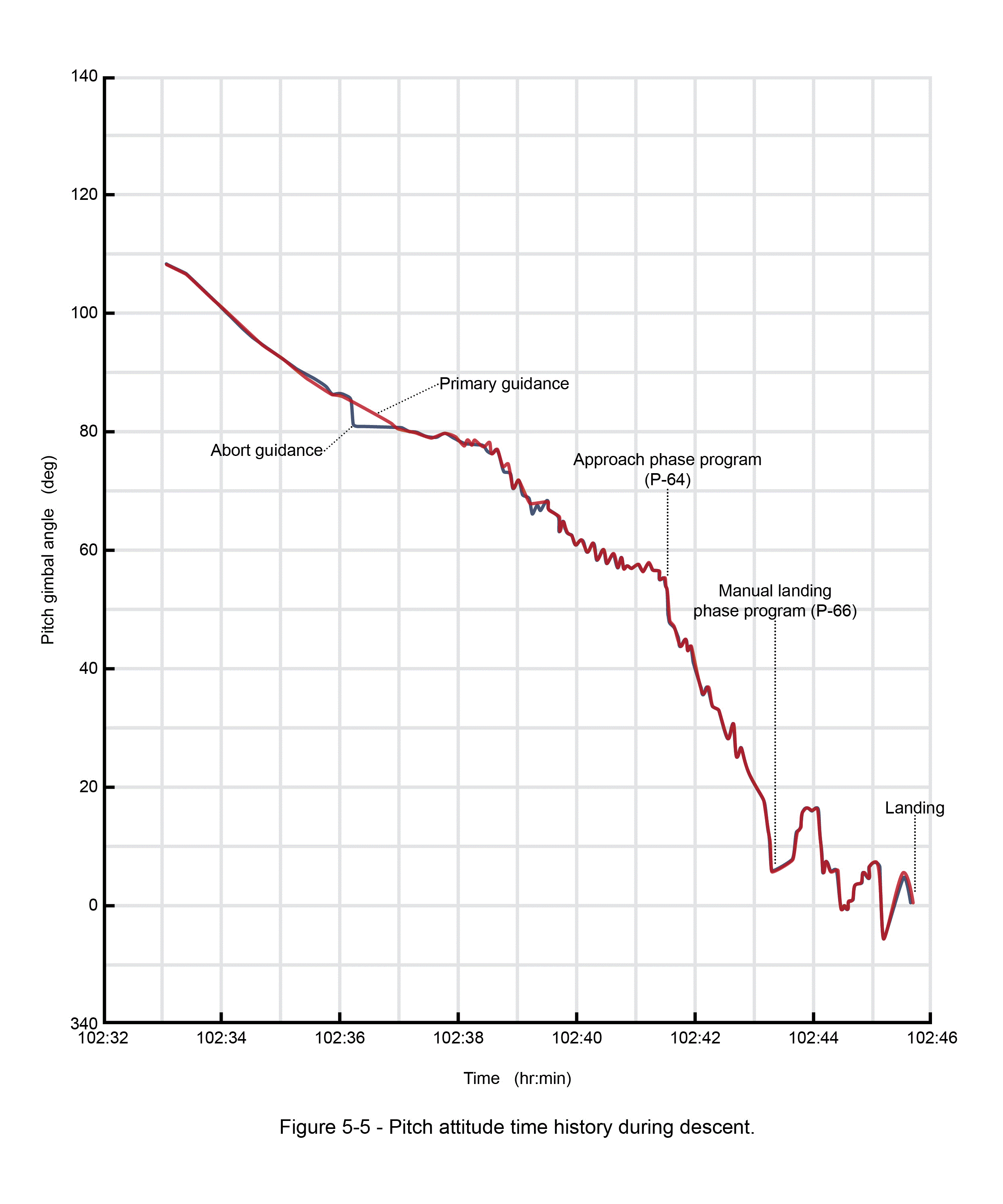 Pitch attitude time history during descent. Redrafted by Thomas SchwagmeierFigure 5-6 ( 42k )