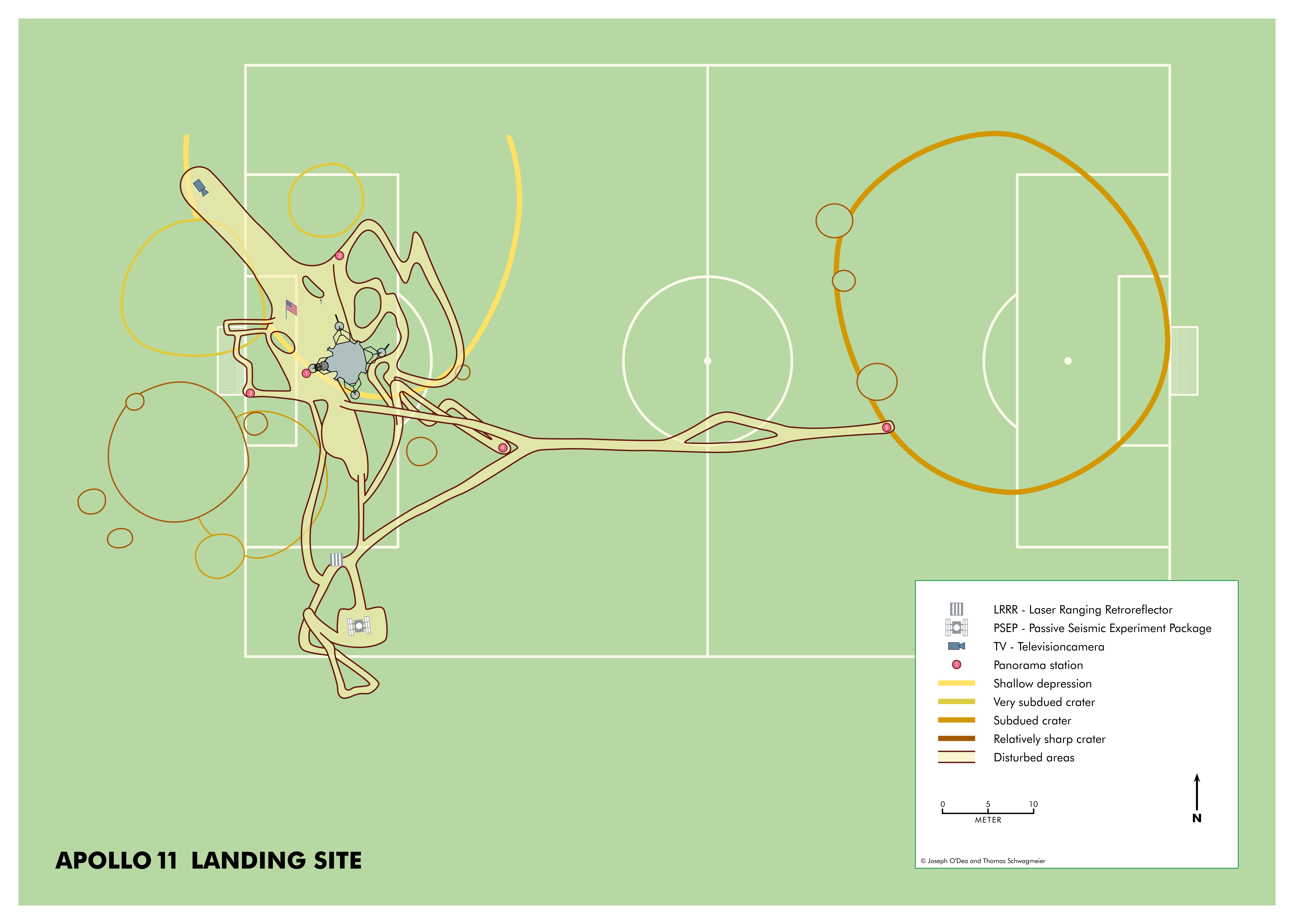 The photogrammetric analysis and its results, including detailed comparisons with LROC images are discussed in a dedicated page.Apollo 11 Planimetric Map (2015) (6.3 Mb