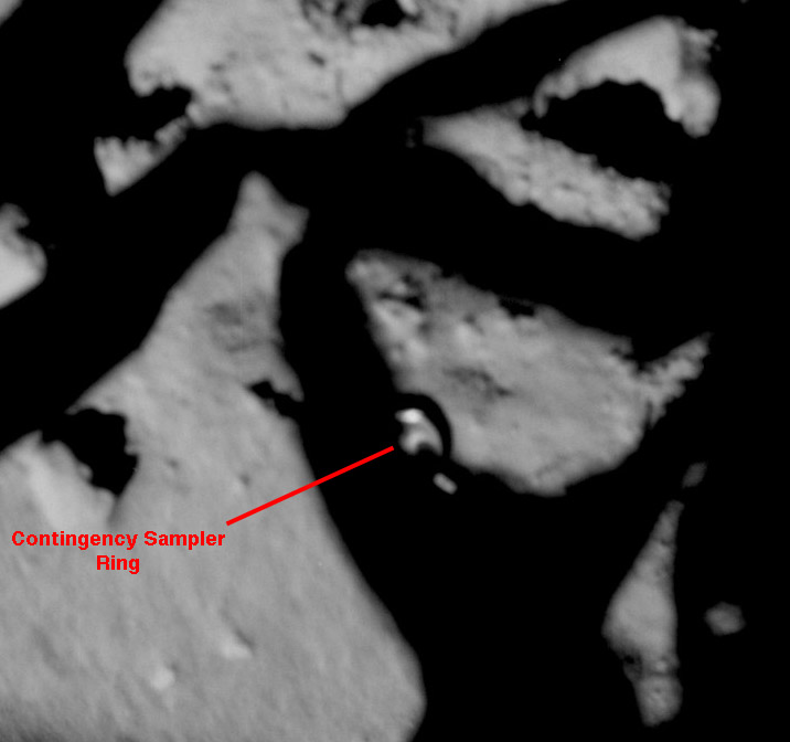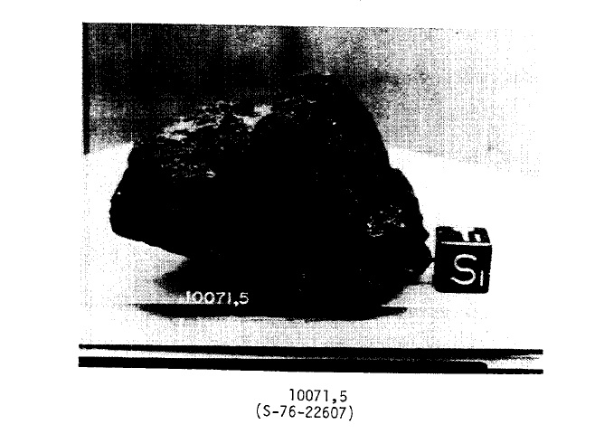 View of sample 10071 from the end that was on the righthand side in 47292. Scan courtesy Susan Erskin and Mike Gentry, NASA Johnson.S69-47305 ( 48k or 6.1Mb )