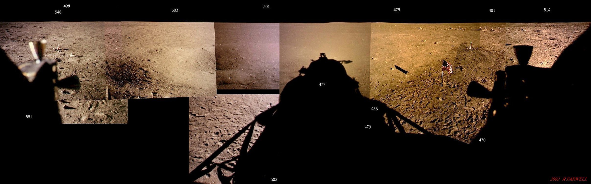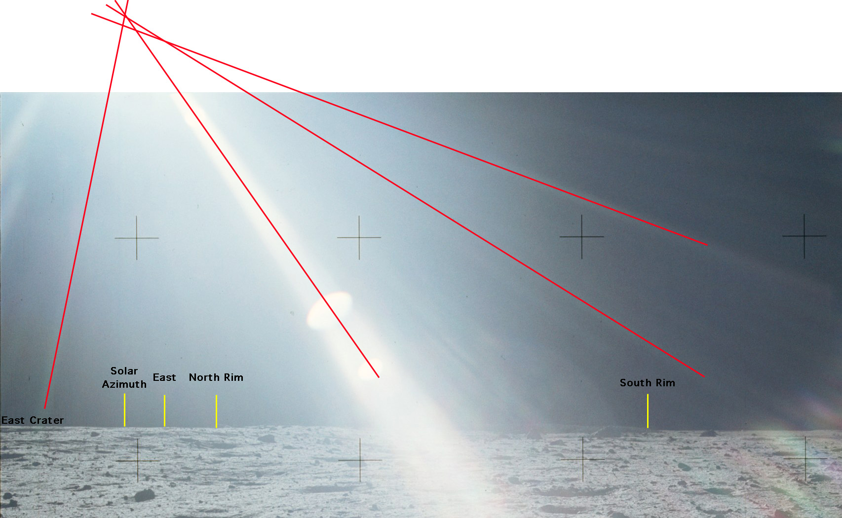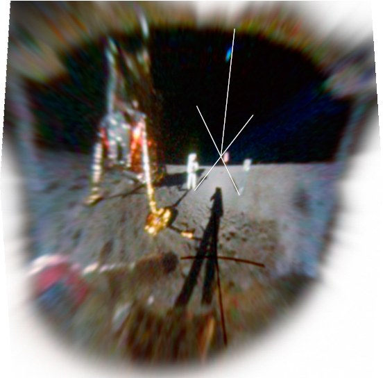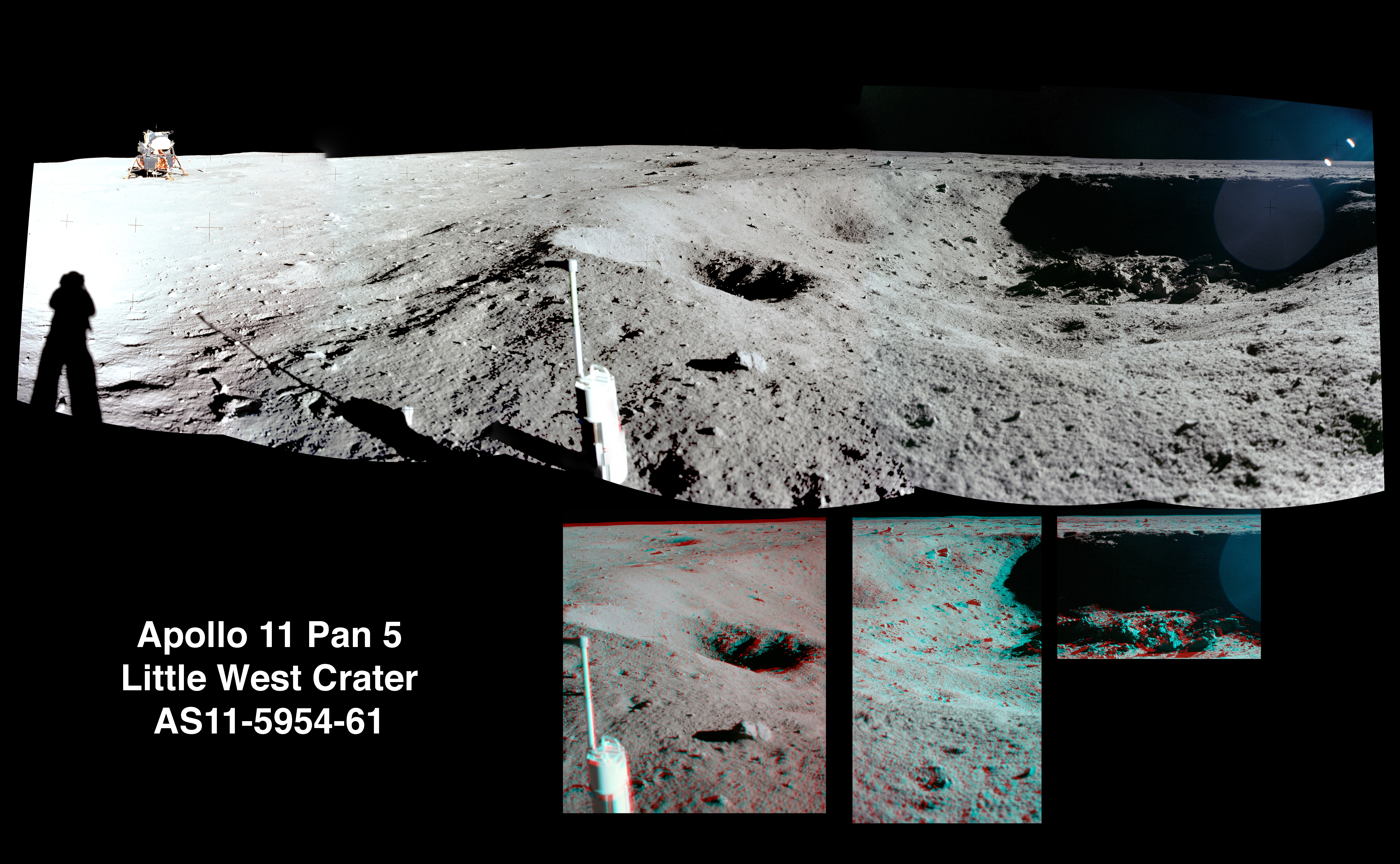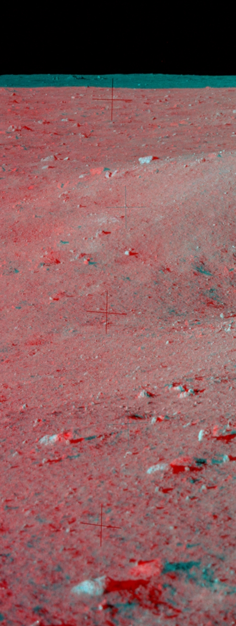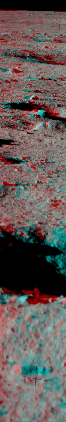 Anaglyphs in the image libraries created from sequential panorama frames by the ALSJ editor exist only because of Yuri Krasilnikov's willingness to teach me the art. Whatever value the anaglyphs have is due to Yuri's insights and guidance. Flaws are my doing. Briefly, panorama stitching freeware Hugin is used to create both non-stereo pan assemblies and remapped versions of the images. The latter are then made into anaglyphs using GIMP. The individual remapped images are linked from the corresponding Library entries for the original frames. The remapped images can be used to create stereo views using other methods.