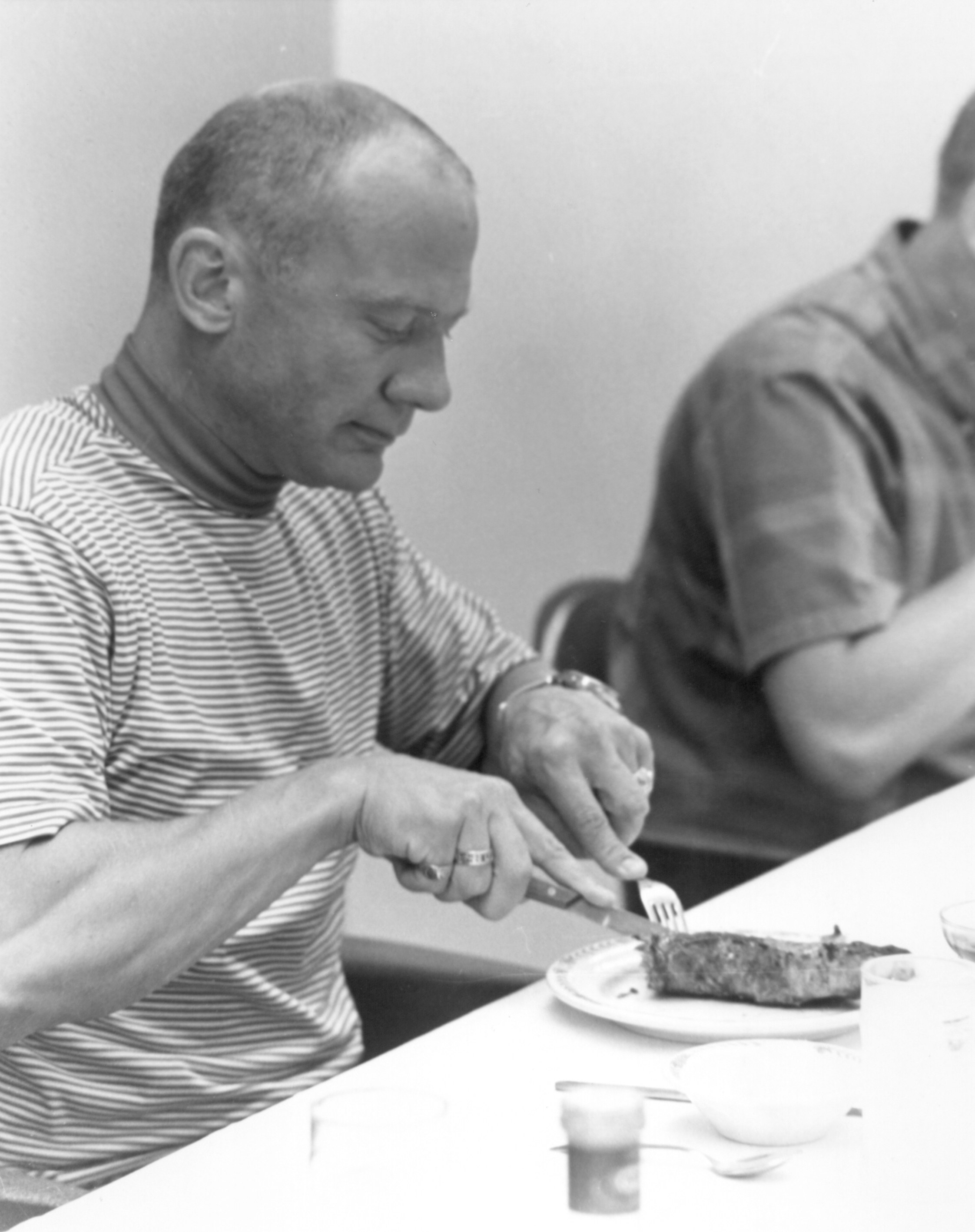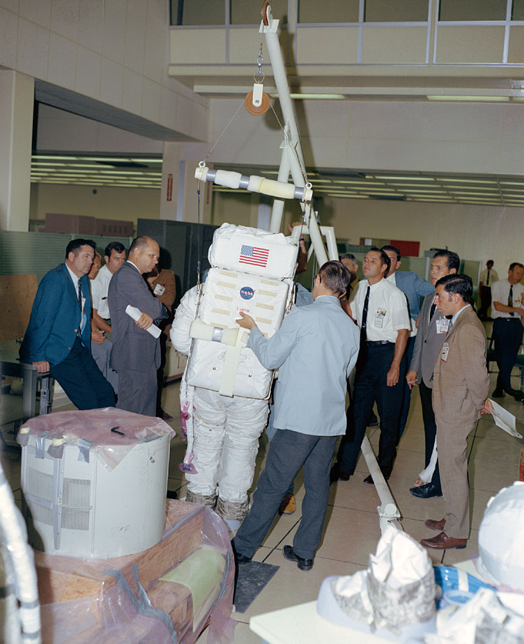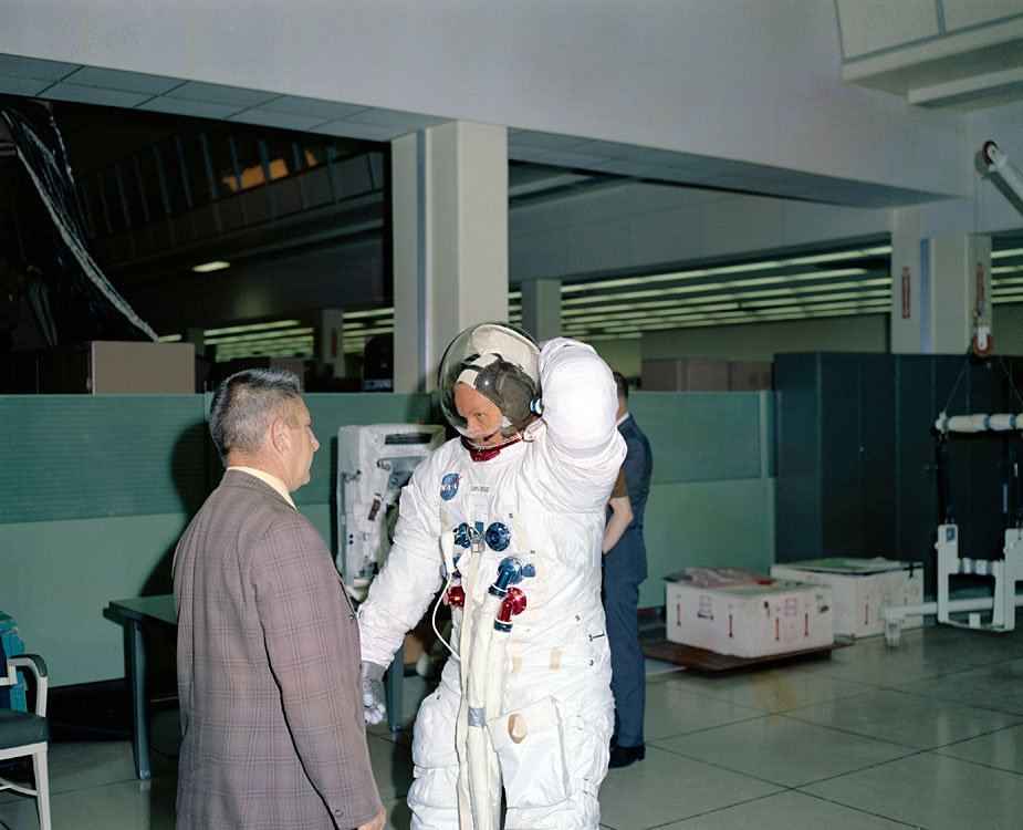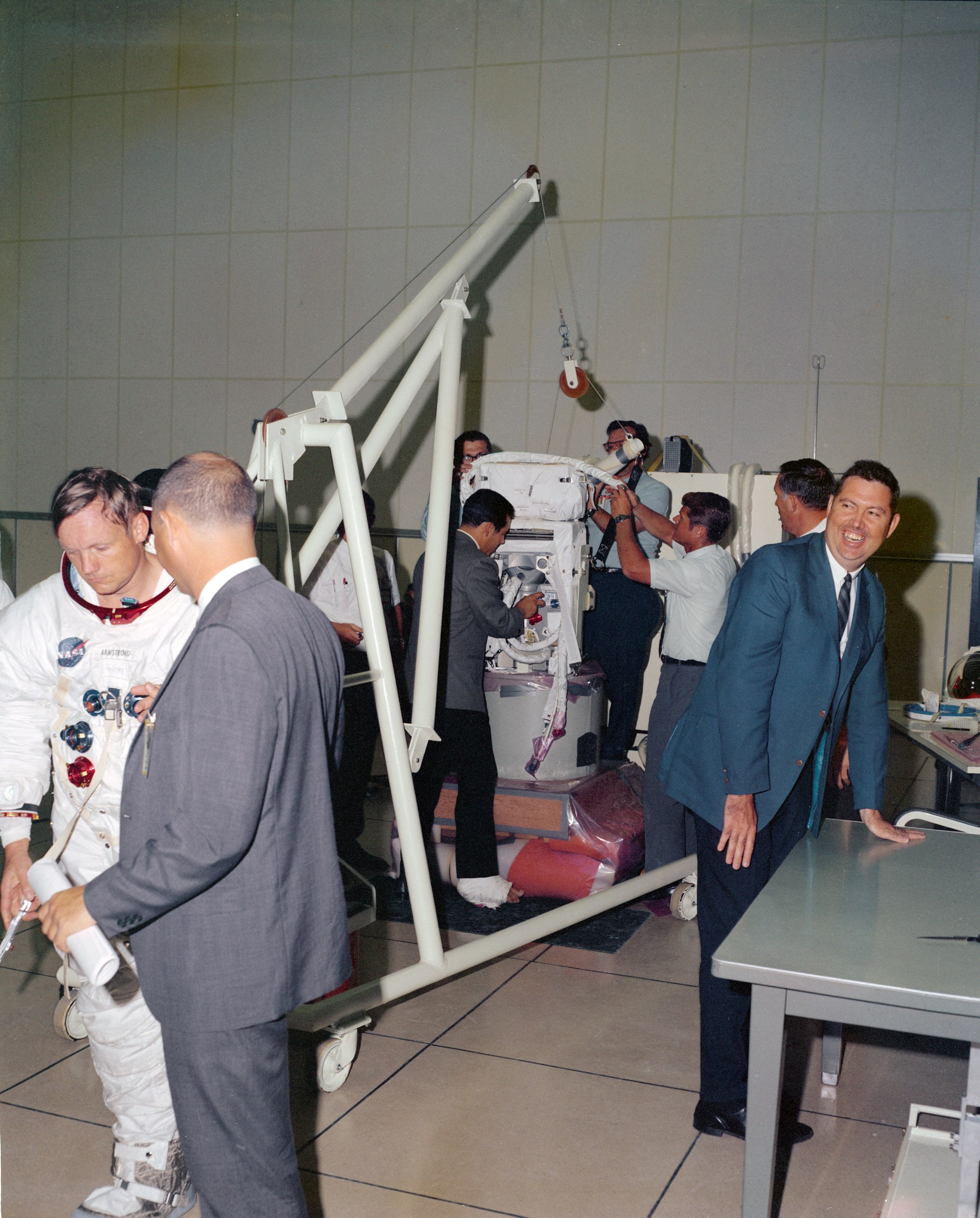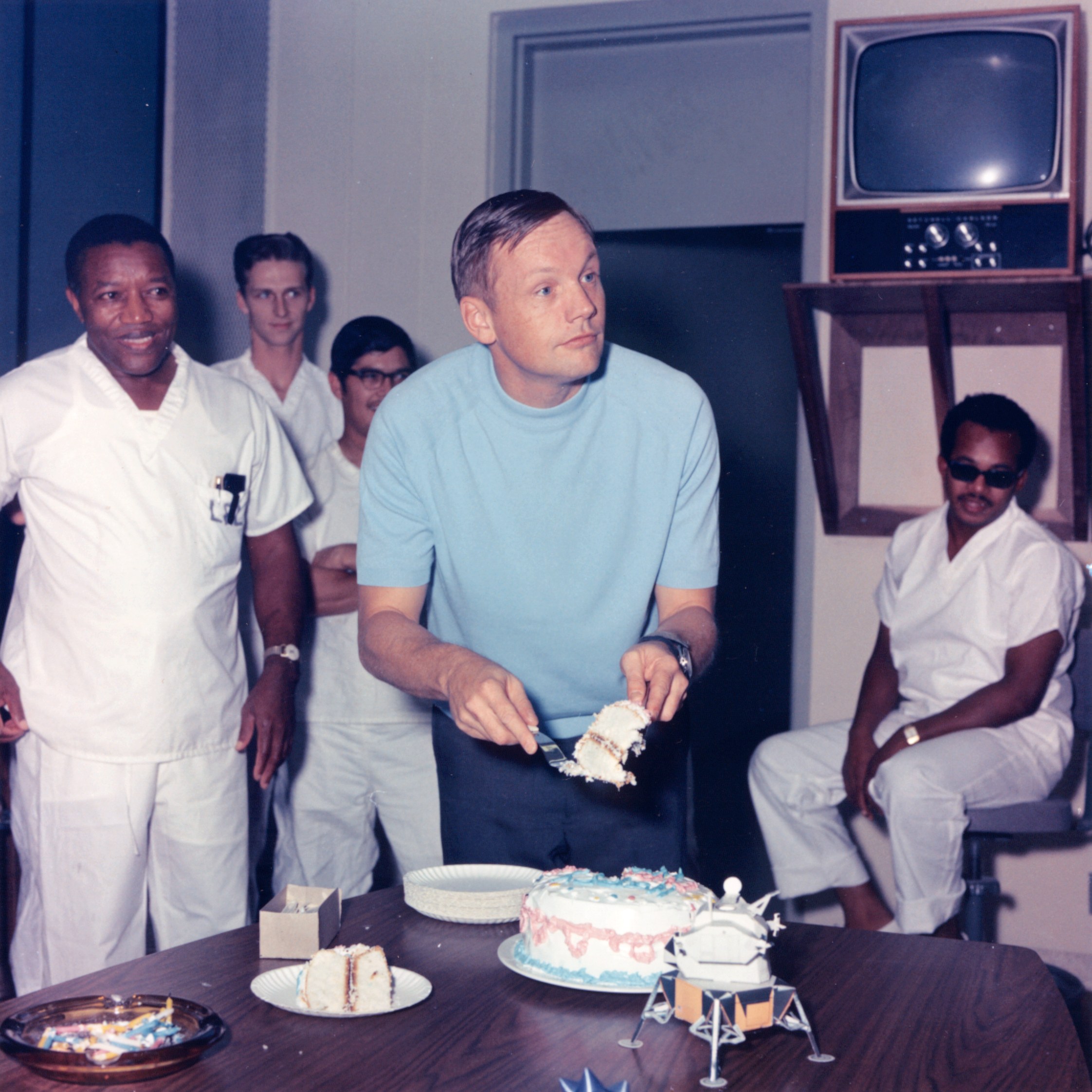 Neil Armstrong celebrates his 39th birthday inside the Lunar Receiving Laboratory. Scan by Ed Hengeveld.S69-41360 ( 121k )