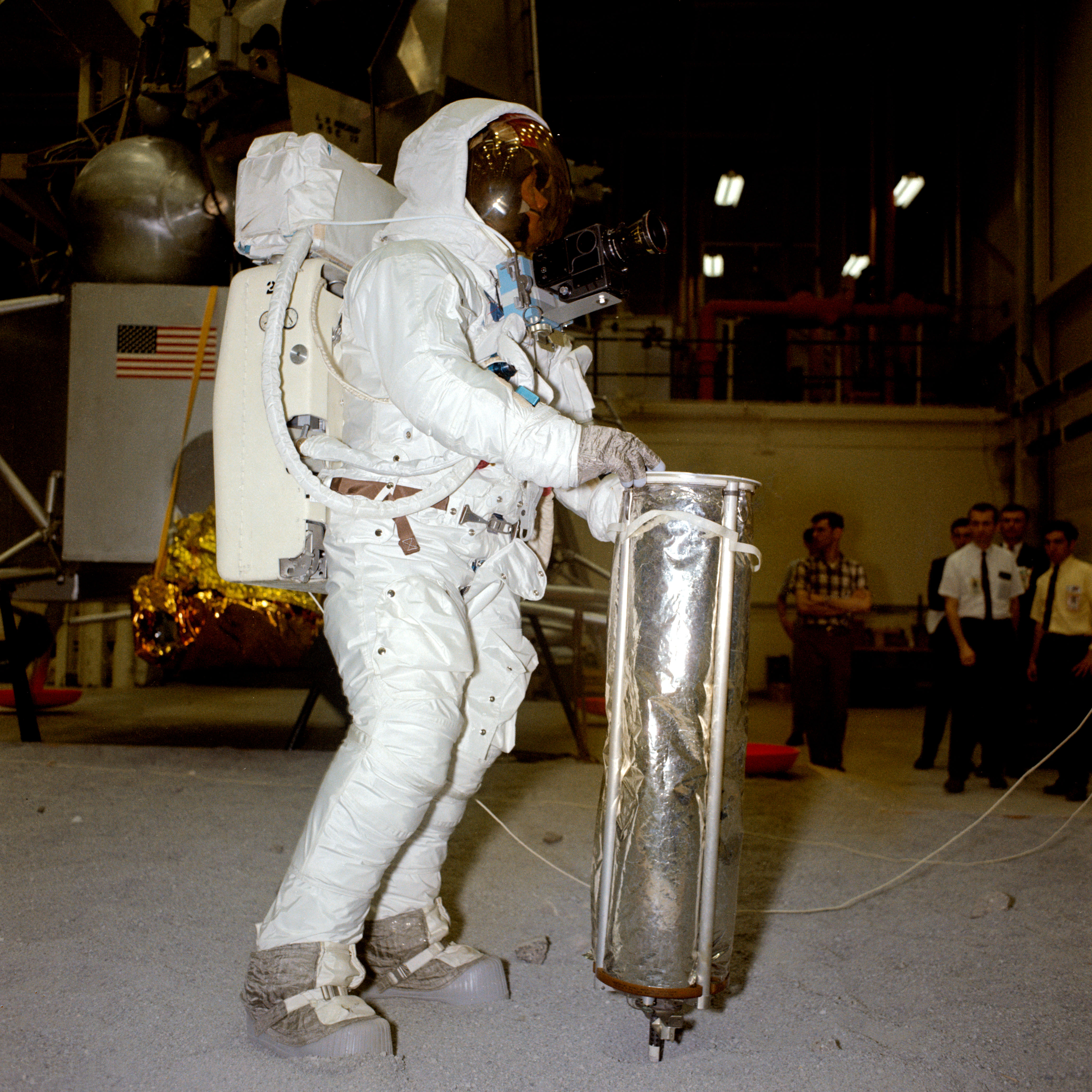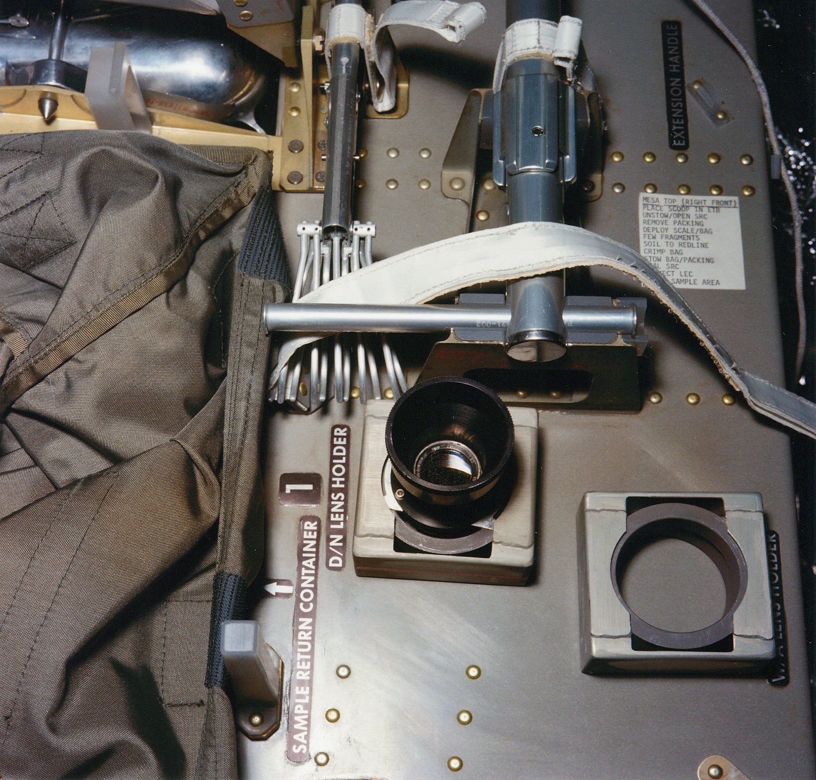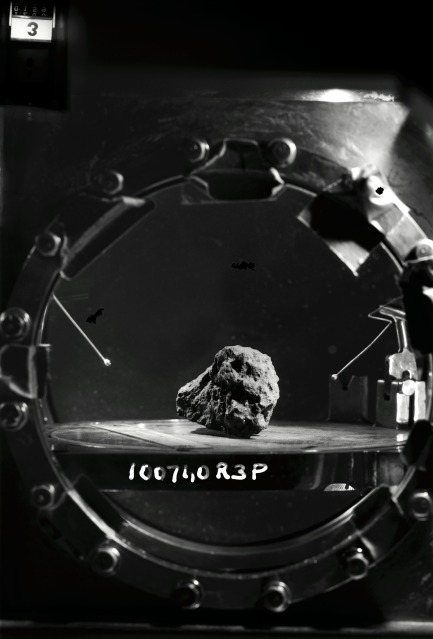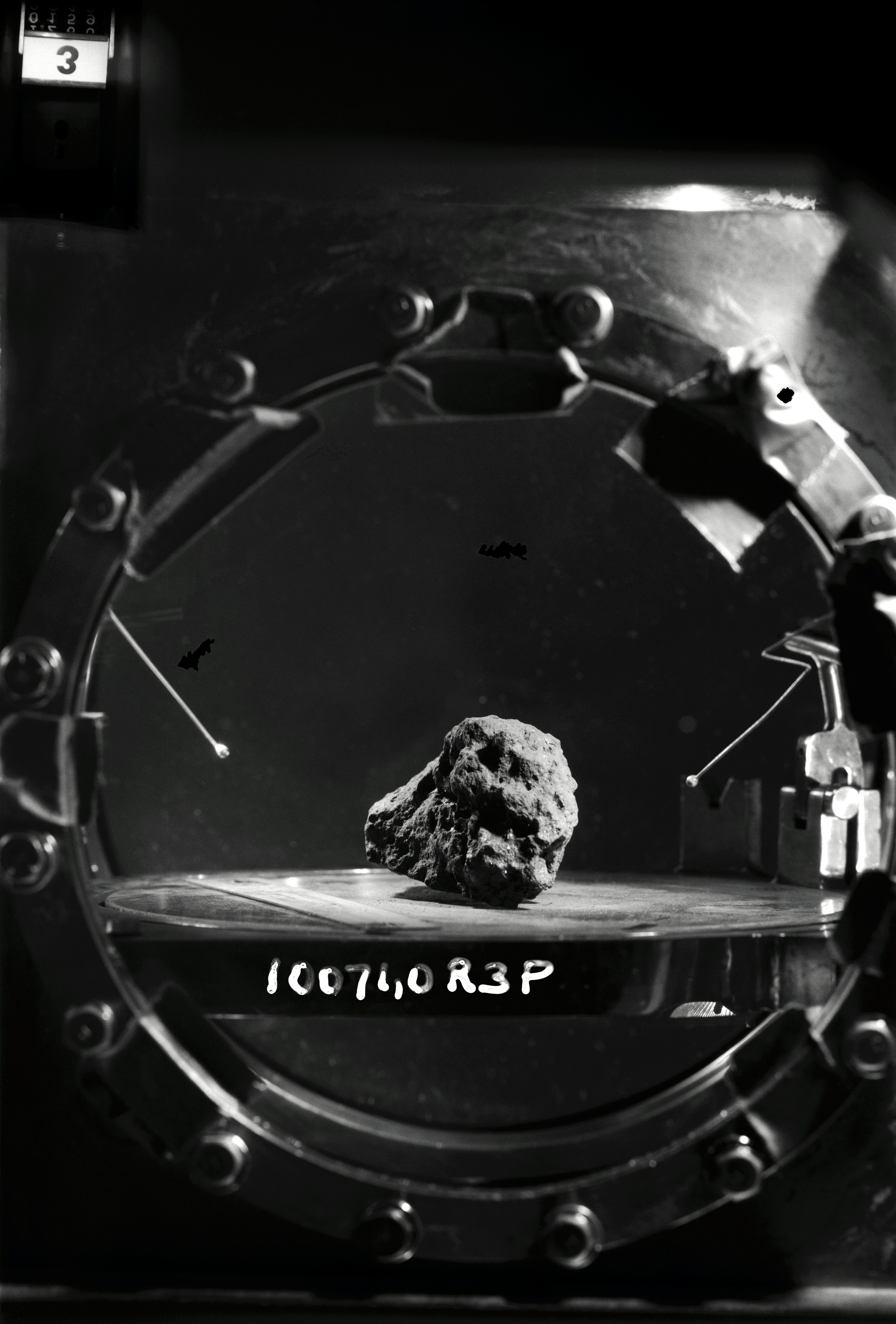 Apollo 11 sample 10071,0 is a 190-gram piece of angular, medium-light-grey, fine-grained basalt collected by Neil after 1112009 and returned to Earth in ALSRC No. 1004 (Documented Sample Container. In 2006, a portion of the sample was presented in Neil's honor to the Cincinnati Museum Center on the occasion of his receipt of NASA's Ambassador of Exploration Award. Scan courtesy Susan Erskin and Mike Gentry, NASA Johnson.S69-47297 ( 56k or 7.3Mb )
