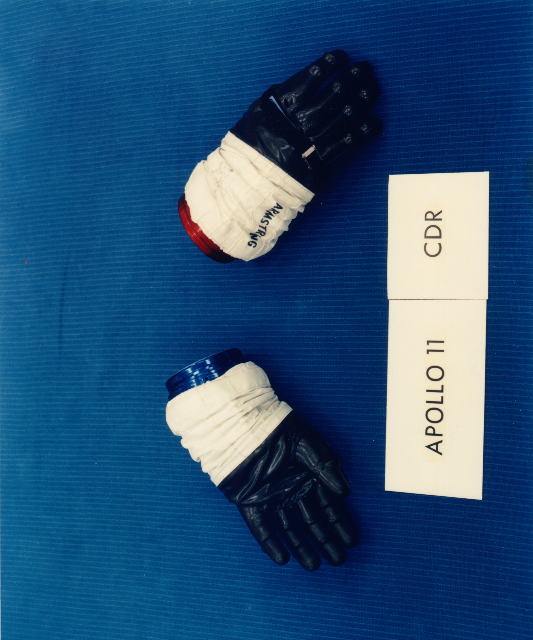 These IVA ('IntraVehicular Activity') gloves were worn by Neil and Buzz during both descent and ascent. Photo and scan by Mike Poliszuk.Apollo 11 Sample 10072,80 at Tidbinbilla ( 780k )
