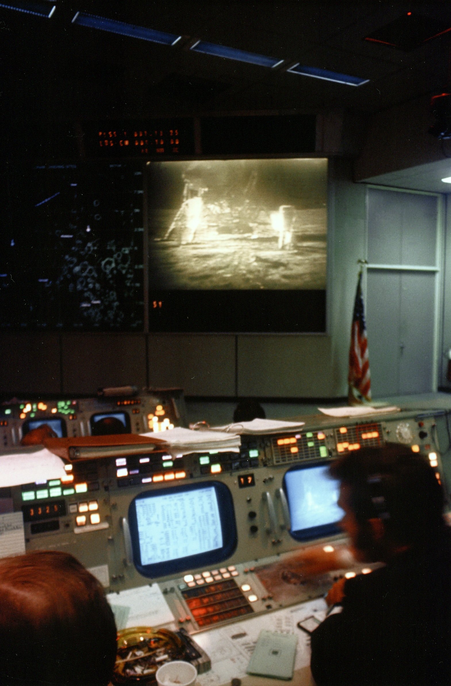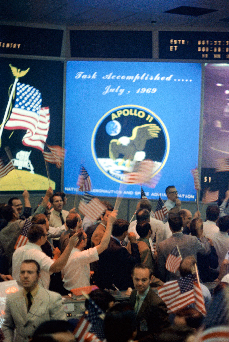 Mission Control in Houston celebrates after splashdown. 24 July 1969. Scan by Kipp Teague.S69-40299 ( 328k or 878k )