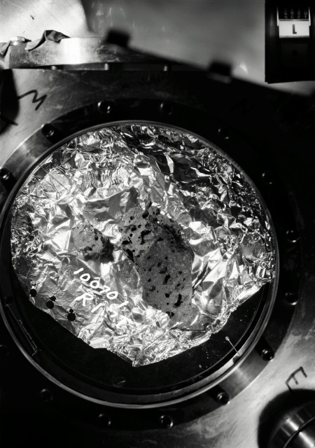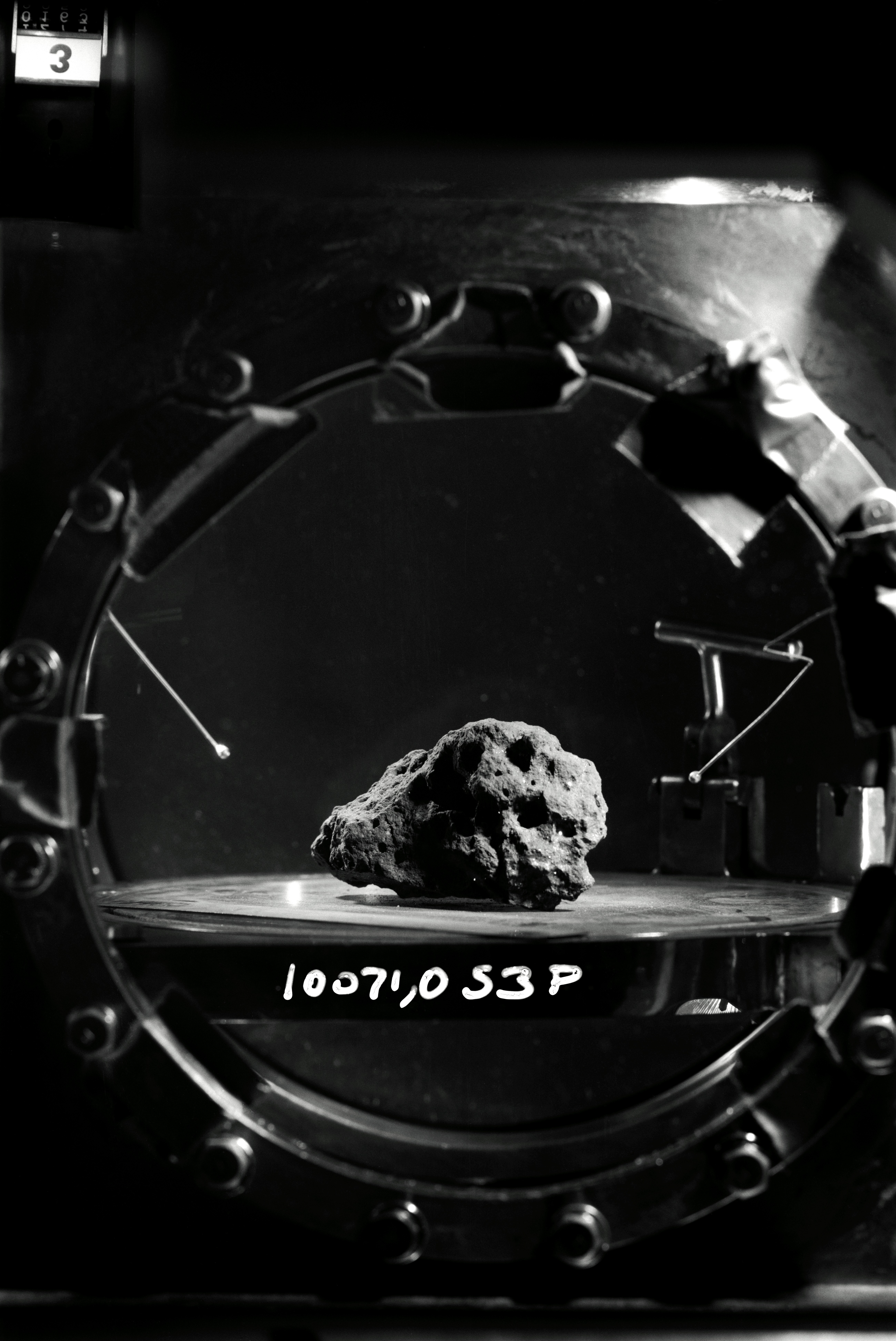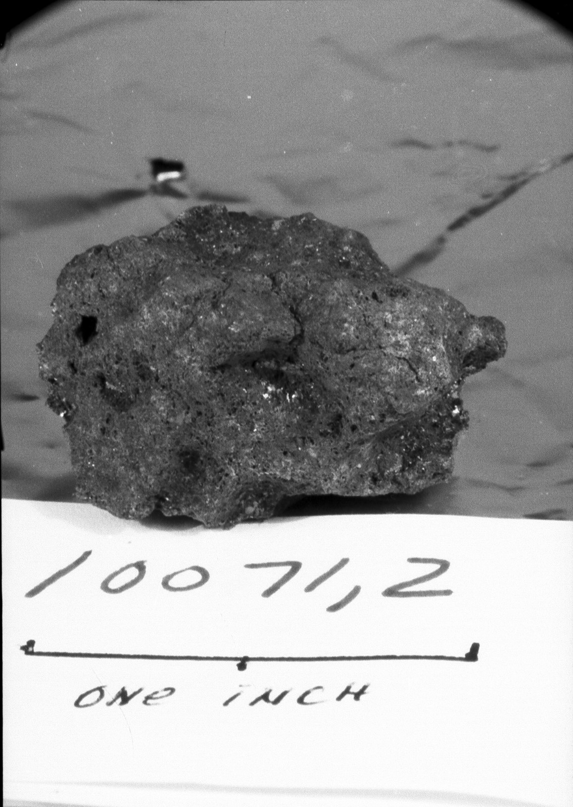 Apollo 11 sample 10072,0 is a 447-gram piece of highly vesicular basalt collected by Neil after 1112009. NASA scan courtesy Gary Lofgren and Terrie Bevill.S69-40958 ( 156k or 677k )