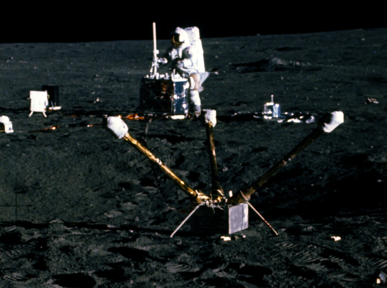 [John Saxon, who served as Operations Supervisor at NASA Honeysuckle Creek Tracking Station, Australia, during Apollo writes, "I should share one of my best ALSEP tracking stories. One of the nice things about the Manned Spaceflight Network ground equipment was that we could decommutate the Telemetry, and display spacecraft - and astronaut - parameters on strip chart recorders and other devices. After the excitement of the manned sections of the Apollo missions, supporting the ALSEP packages could seem rather routine - so we often checked temperatures, seismic activity, etc. One quiet evening we noticed that one of the usually fairly dull seismometers was outputting apparently random, short, sine-wave activity superimposed on the background activity. These were obviously artificial artifacts, but no one on site could work out what might be causing them. So I checked with the on-duty ALSEP controller at Houston, who came up with the answer immediately. 'Oh - what you are seeing is the Mylar heat insulation which is spread around the seismometer. The sun is just rising in the lunar dawn at the site and the insulation is warming up and pinging as it changes shape'. A bit like a biscuit tin lid when you flex it. So that was an unintended temperature change sensor."]