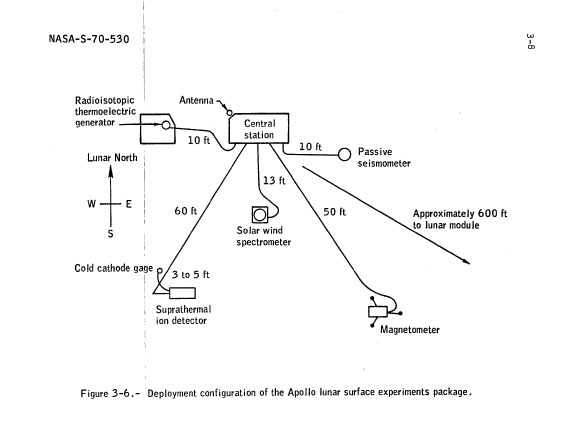 [Figure 3-1 from the Preliminary Science Report is a schematic diagram of the PSE experiment.]117:02:29 Bean: I'm going to try to do that. This ground, you know, it doesn't get hard as you move down a couple of inches. If you tamp it, and that's what I'm planning to do...But I don't know. We'll just have to see what happens. I'm worried about it getting a thermal short myself.